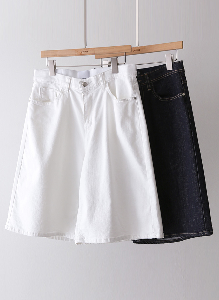 [Theonme] 메르벤 히든밴딩 세미 와이드 5부 면 데님 반바지 팬츠