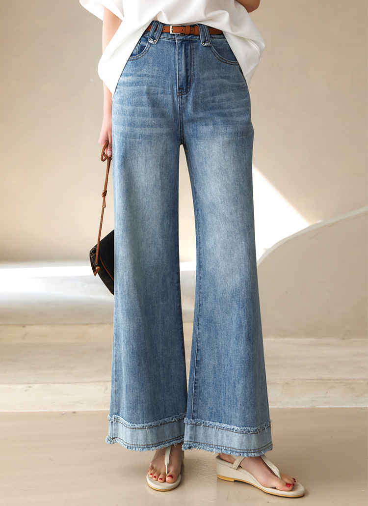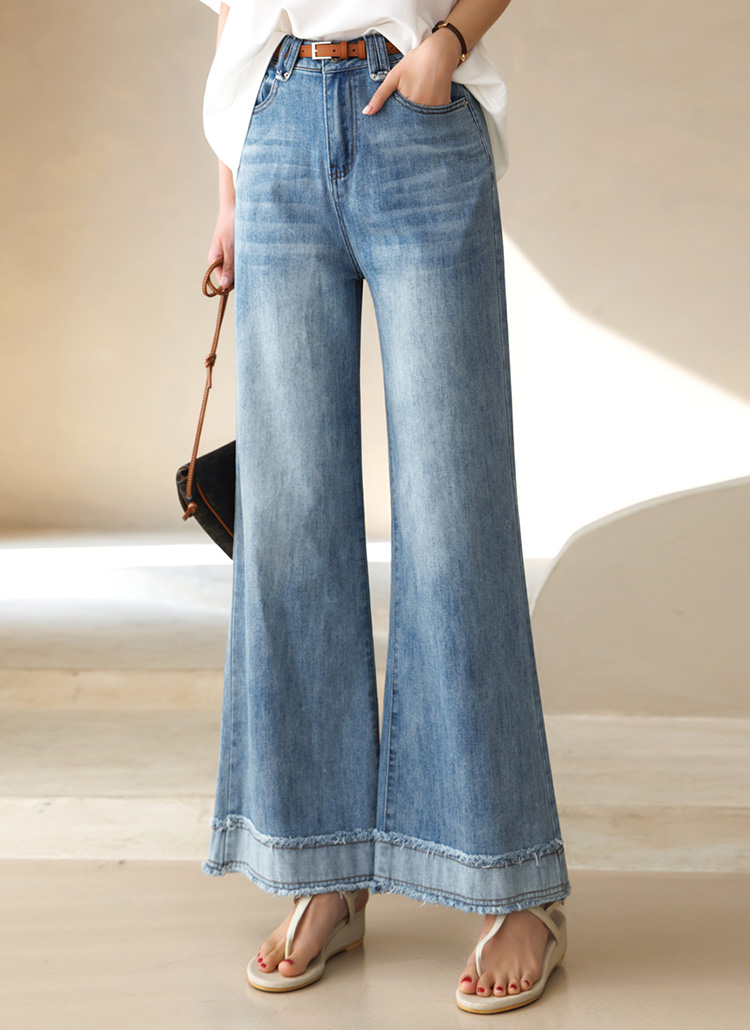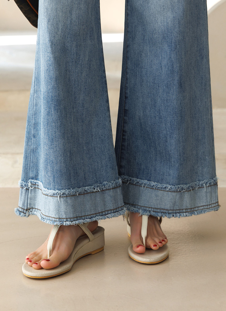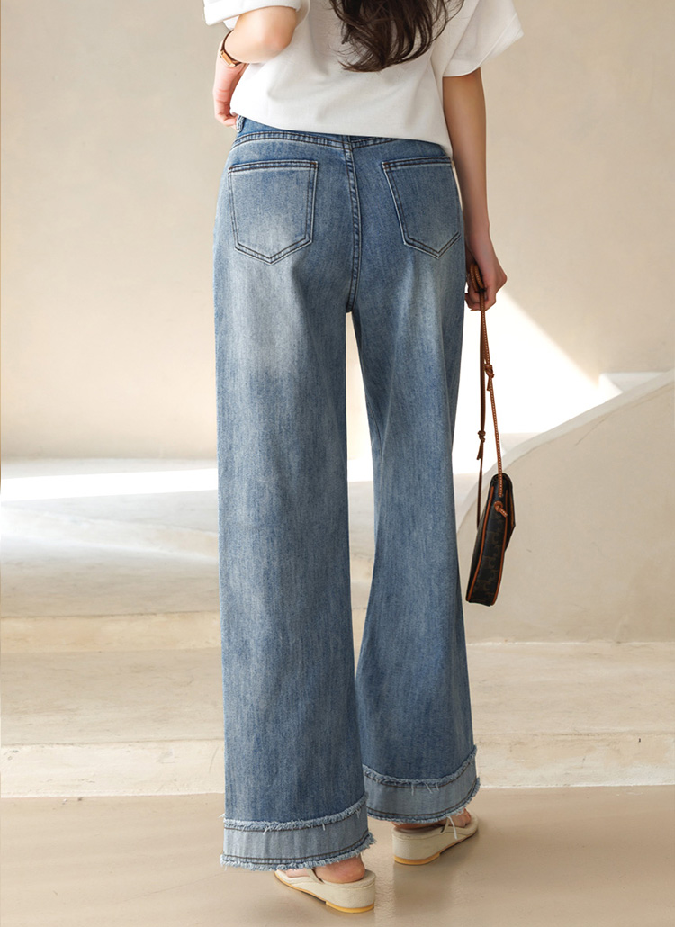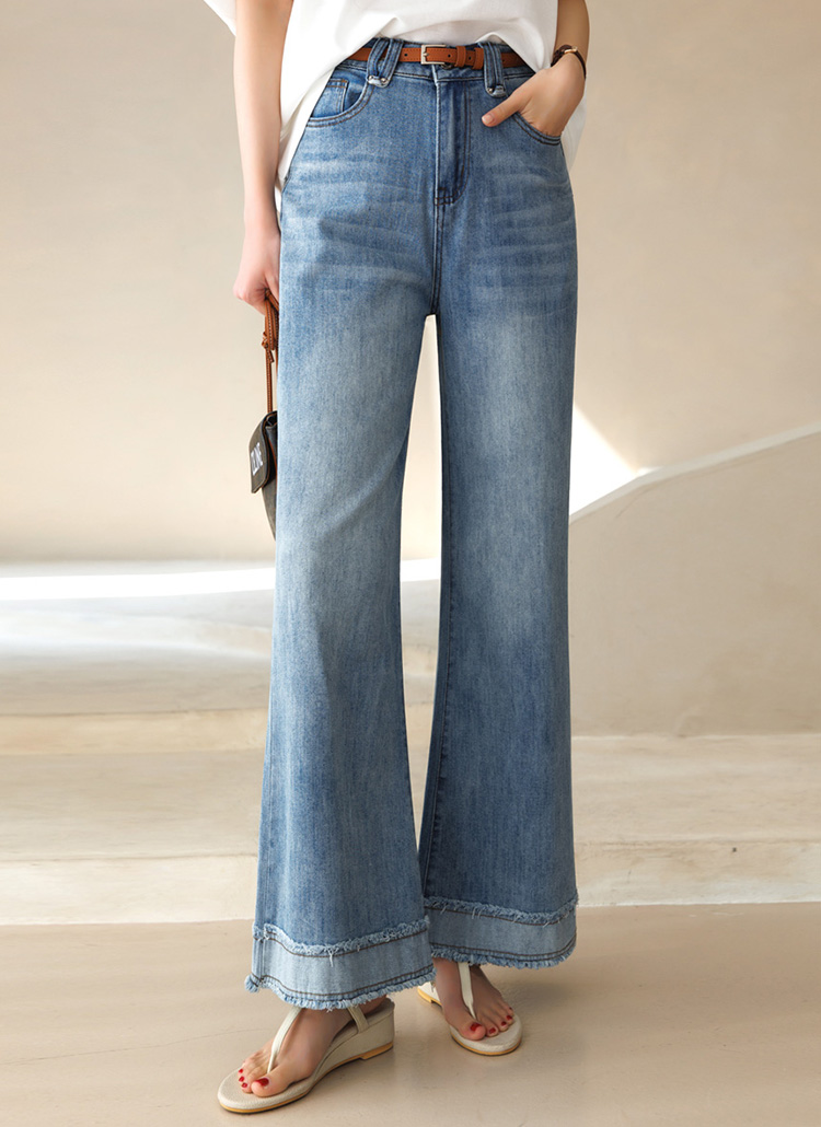 한층 더 시원하고 캐주얼한 무드를 완성해주는 세미 와이드 데님 팬츠에요