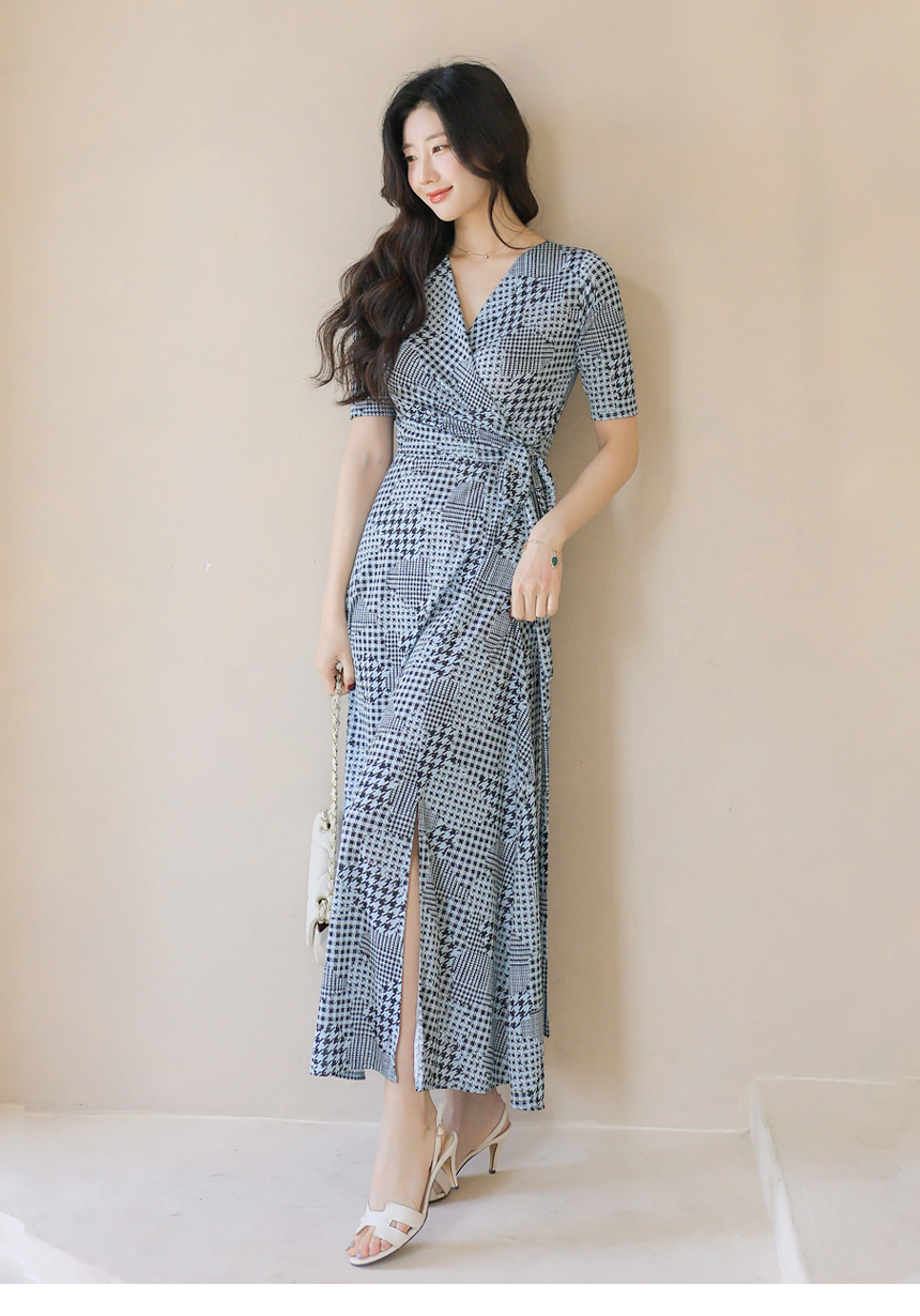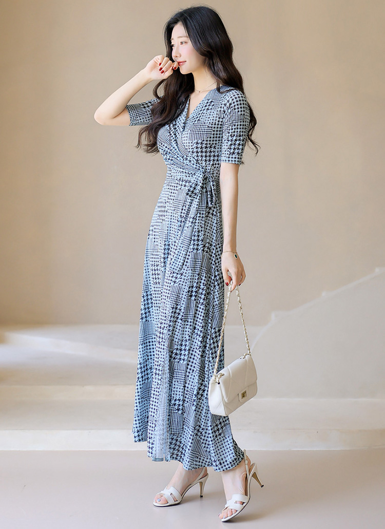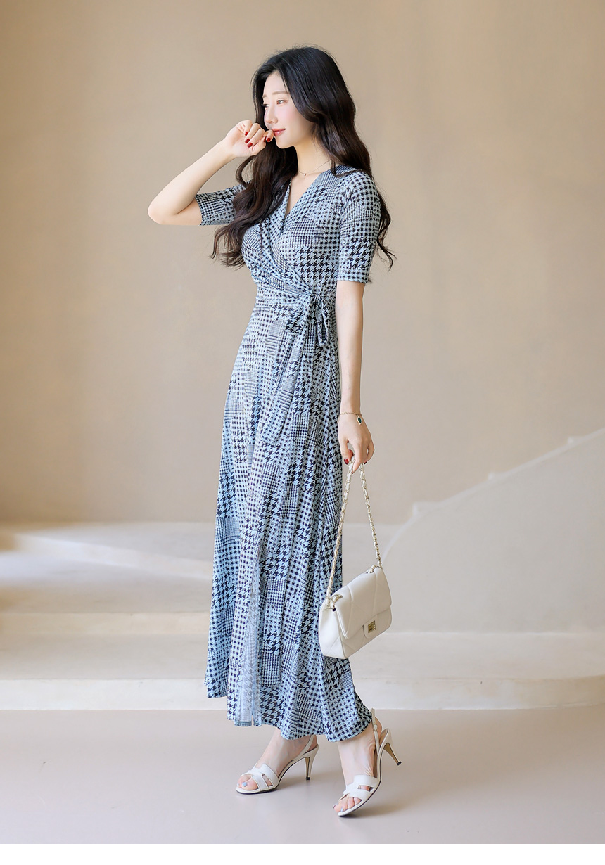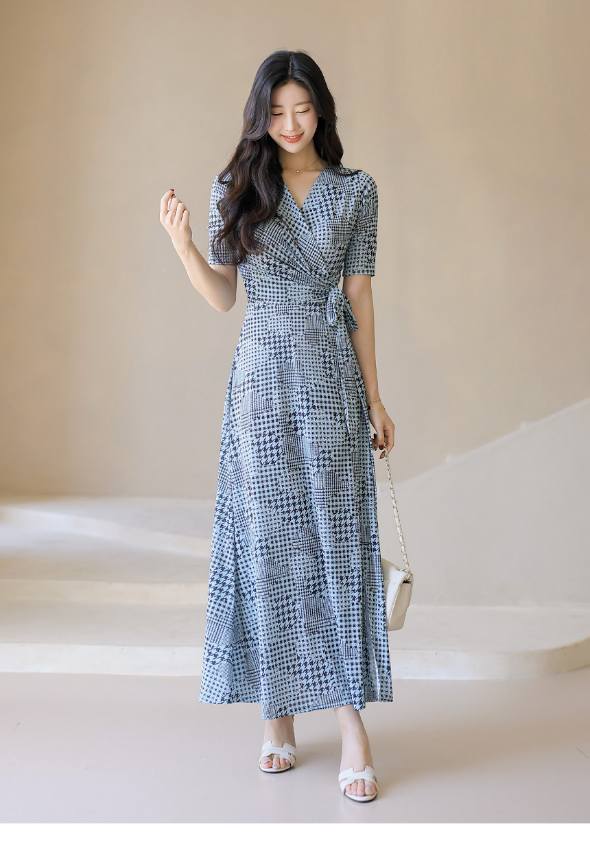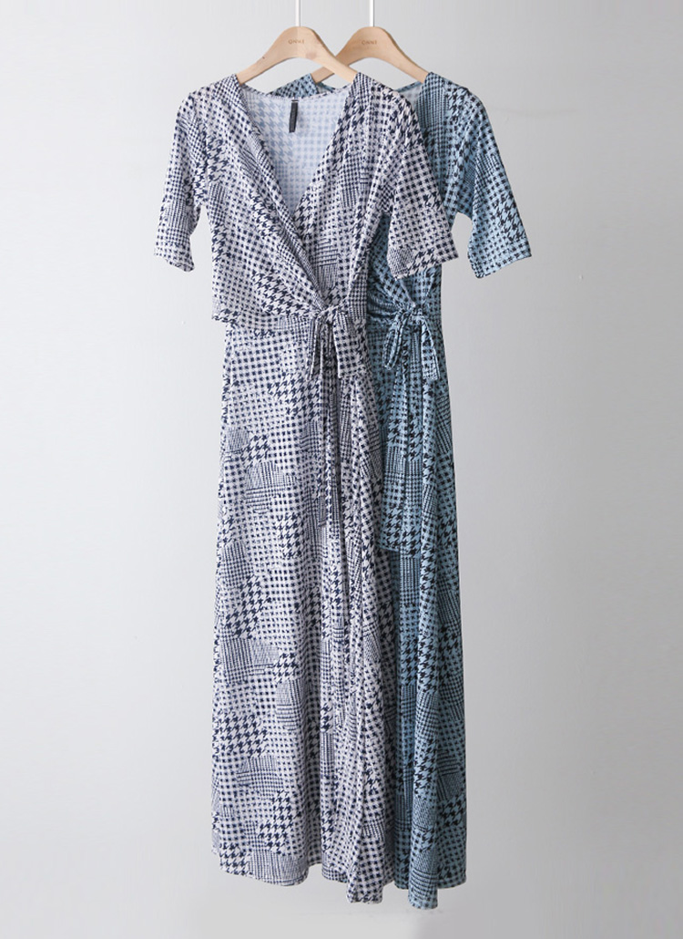 千鳥プリント カシュクールロングワンピース op45089