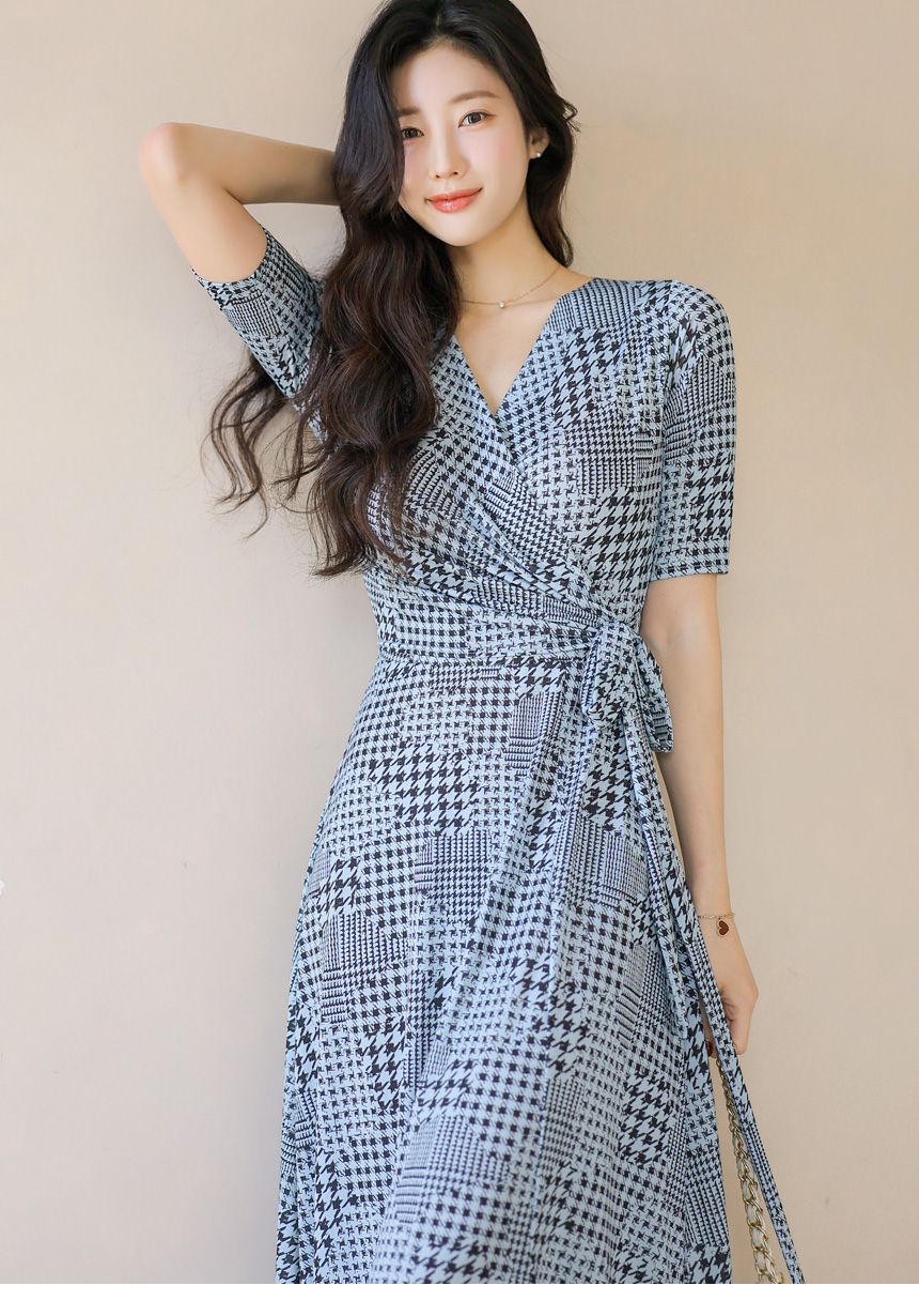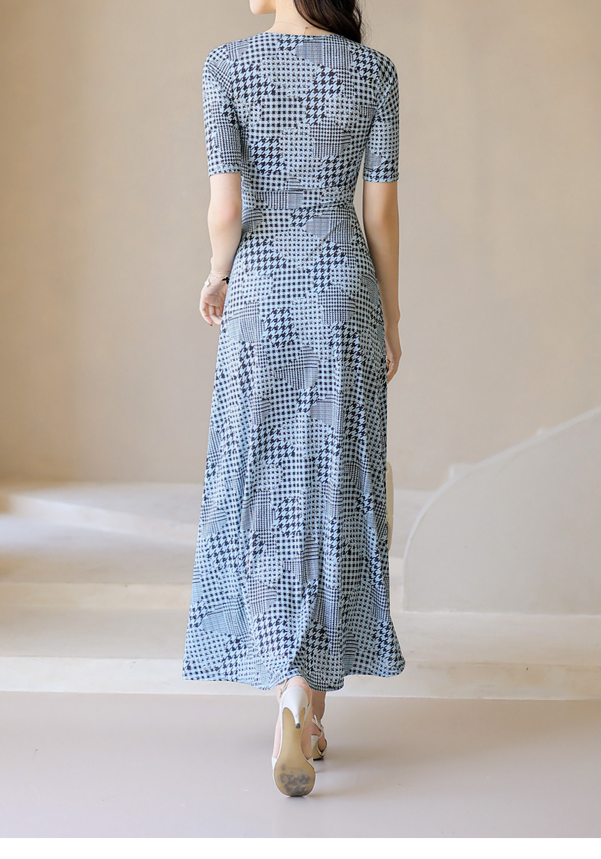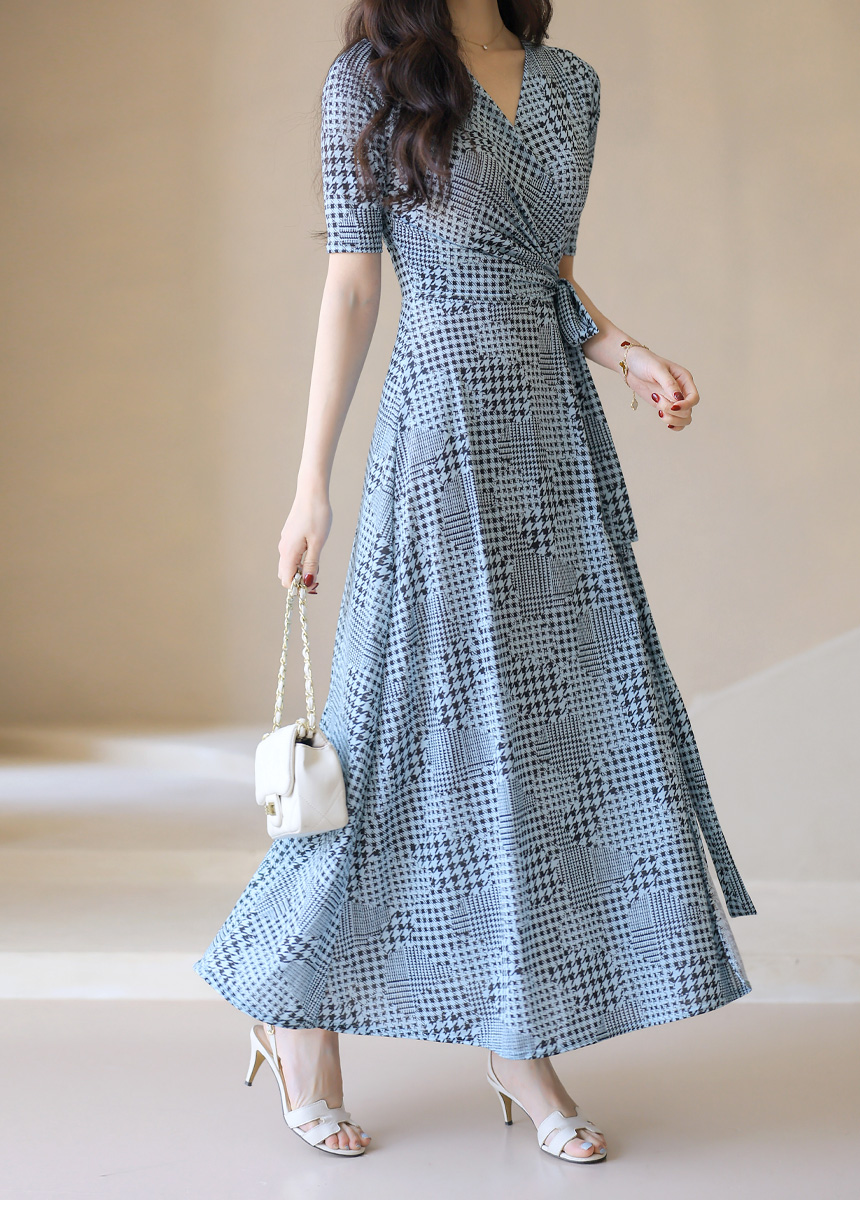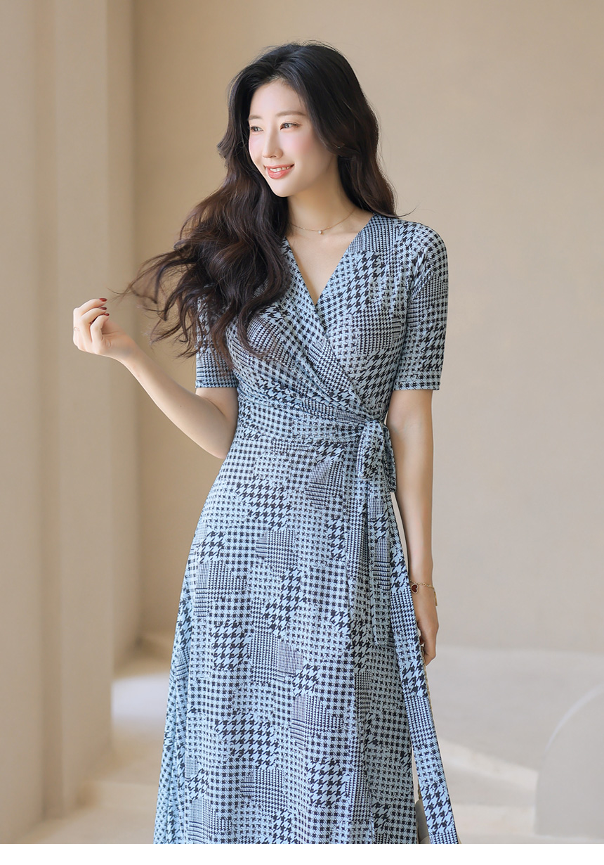 千鳥プリント カシュクールロングワンピース op45089