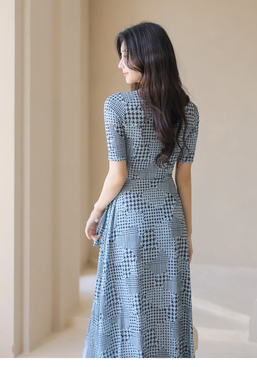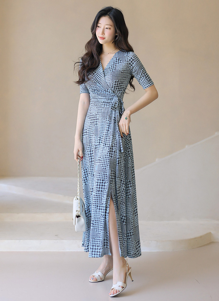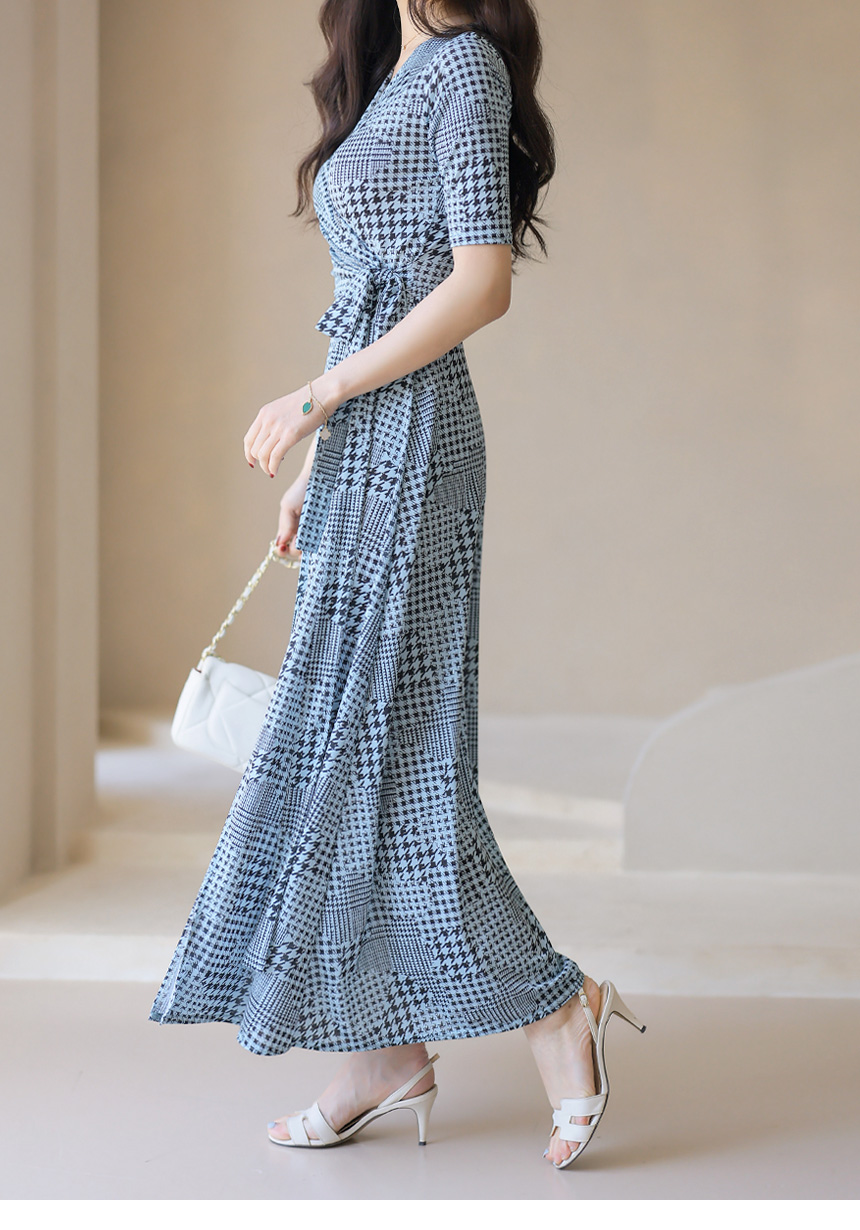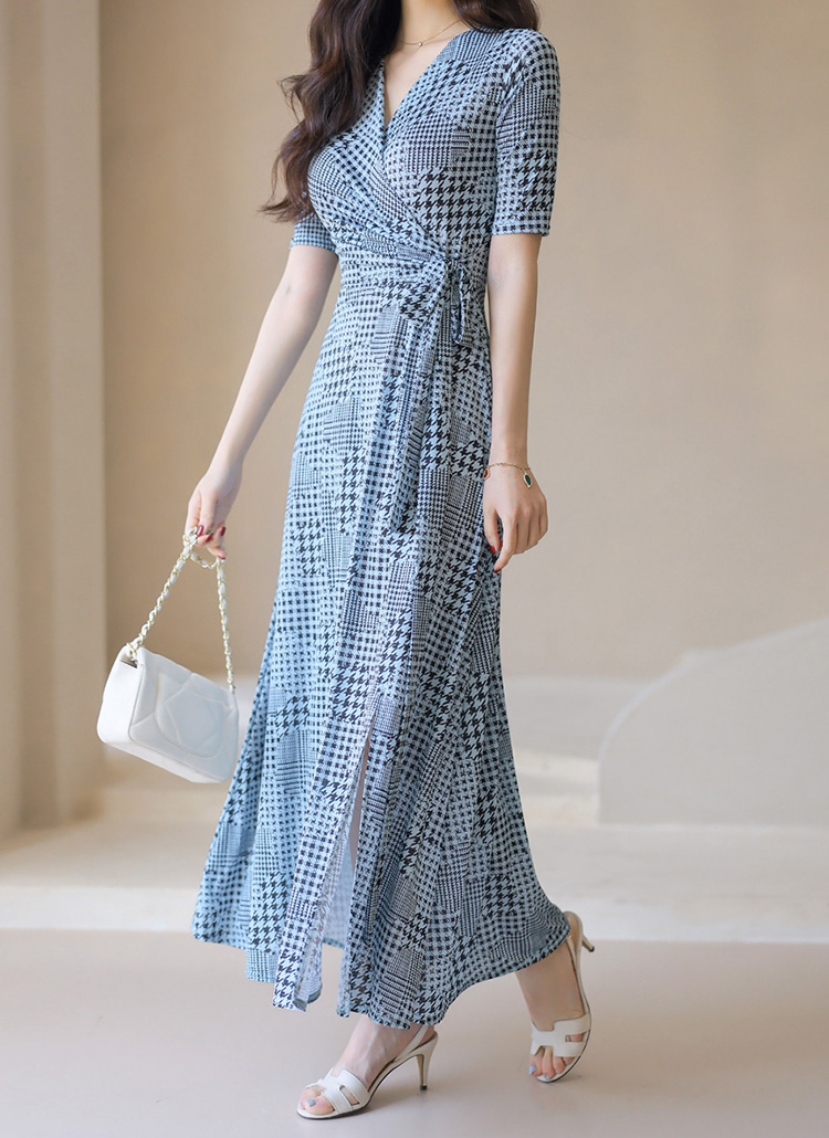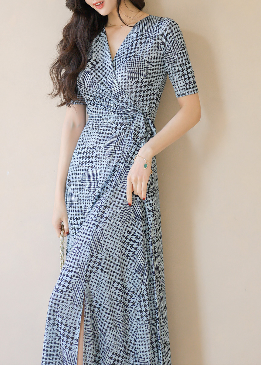 千鳥プリント カシュクールロングワンピース op45089