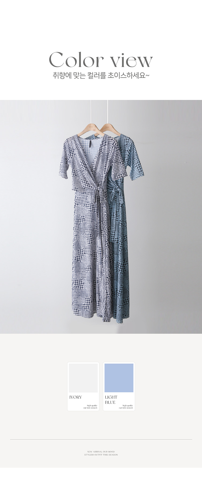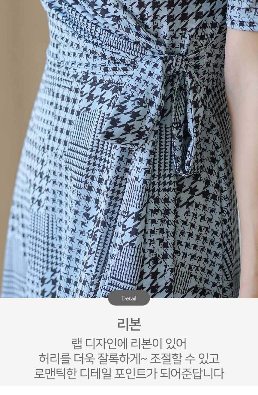허리 라인에는 리본 디테일이 더해져 체형에 맞게 조절이 가능하며