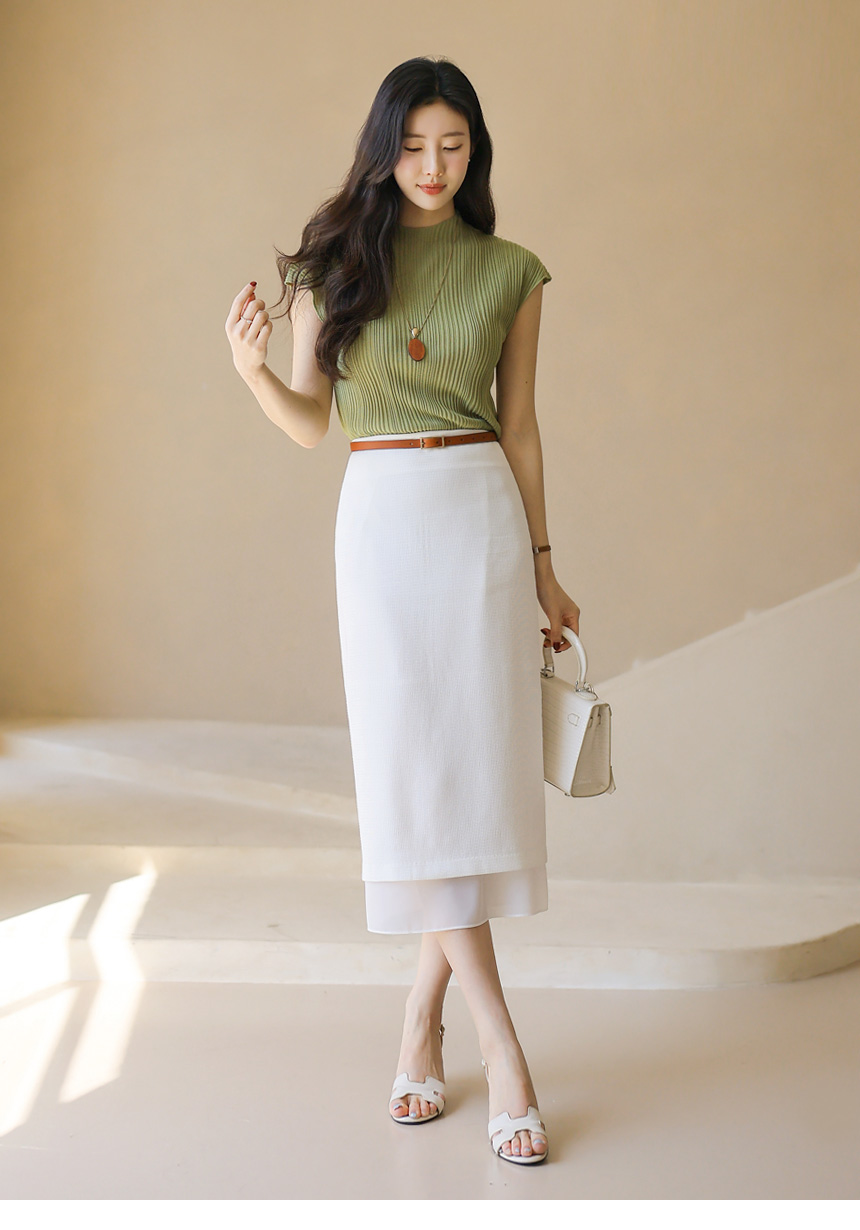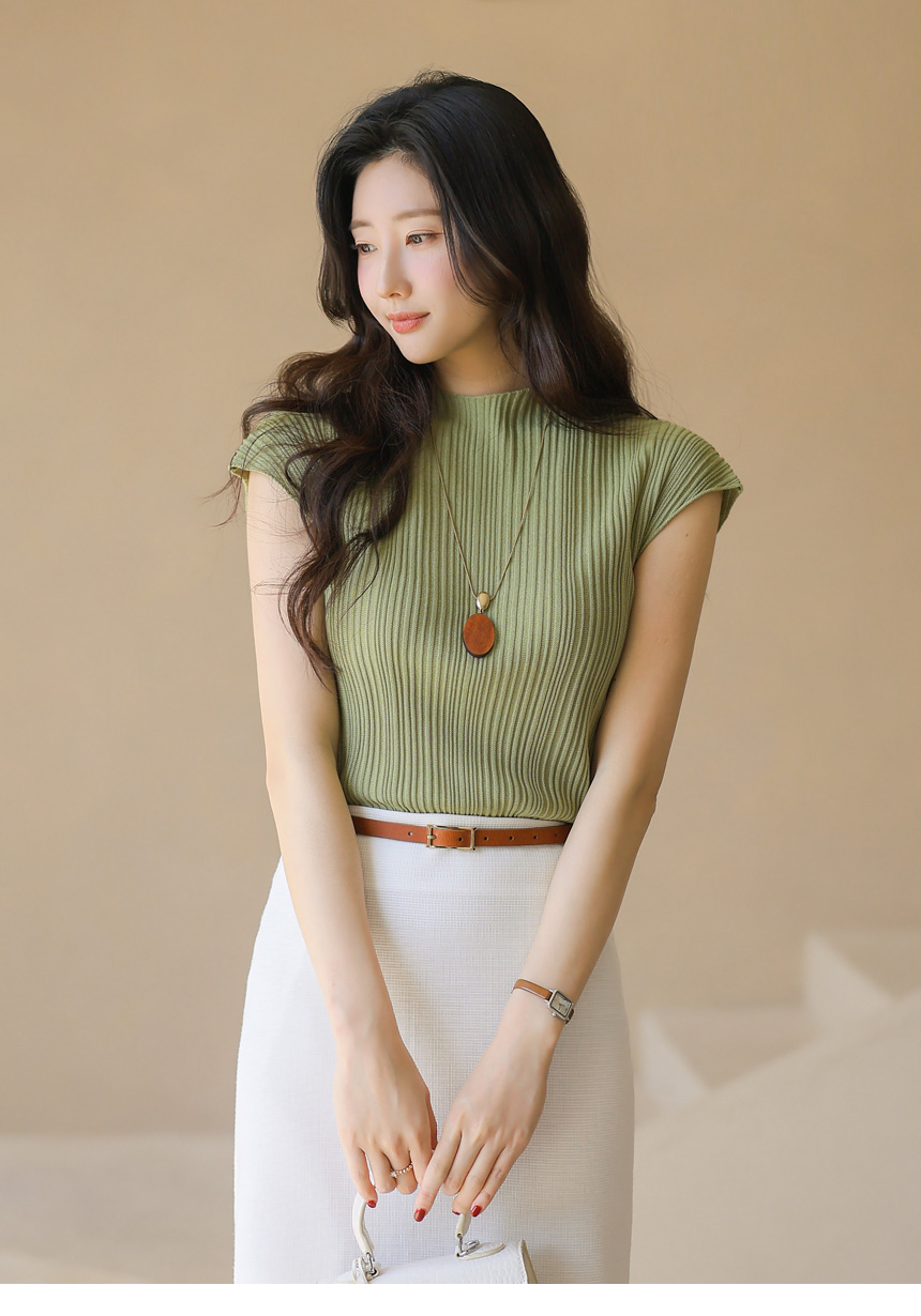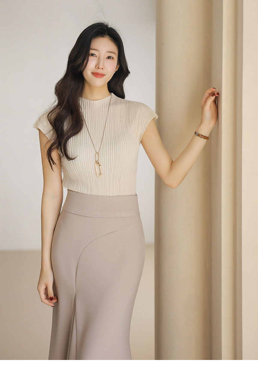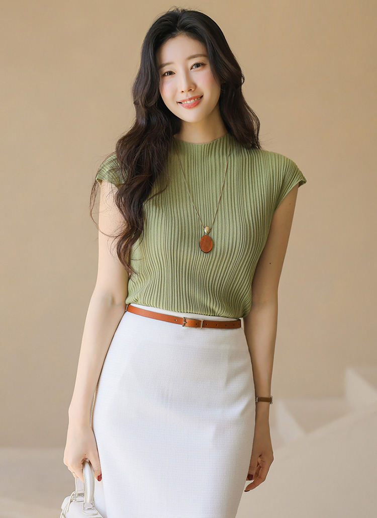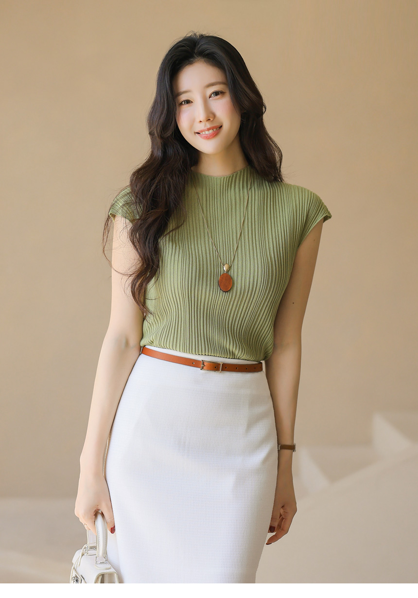 단정하면서도 여리한 분위기를 담아낸 활용도 높은 니트 나시예요