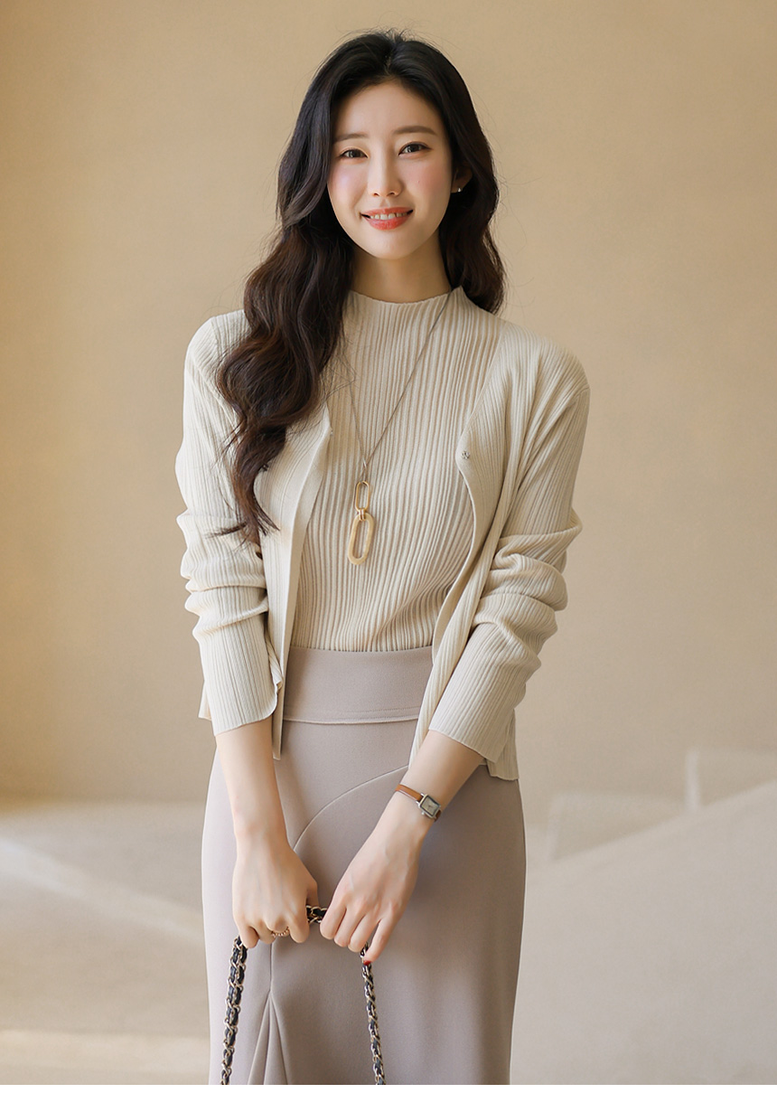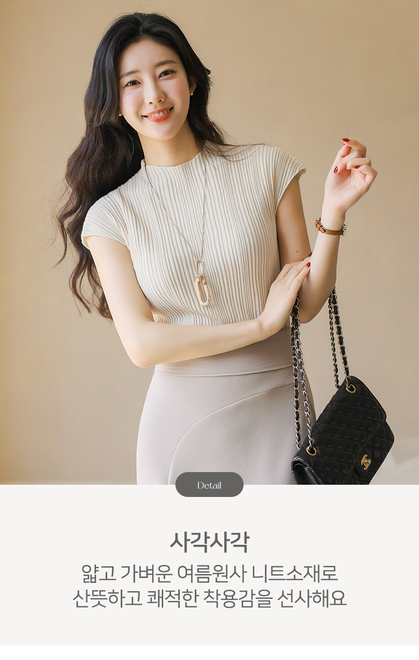 자연스럽게 팔 라인을 커버해 주어 한층 더 여성스럽고 단정한 실루엣을 완성해요