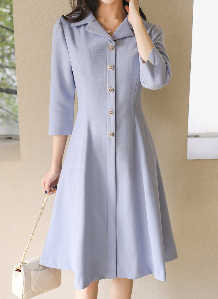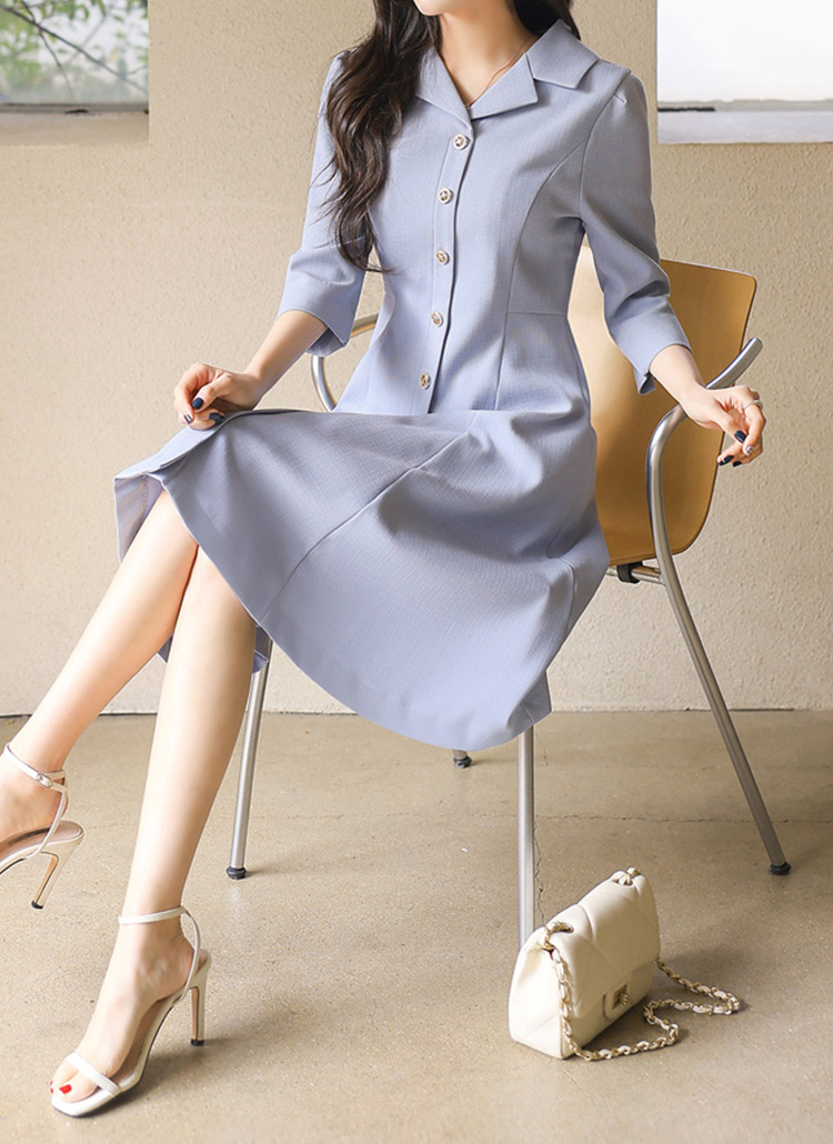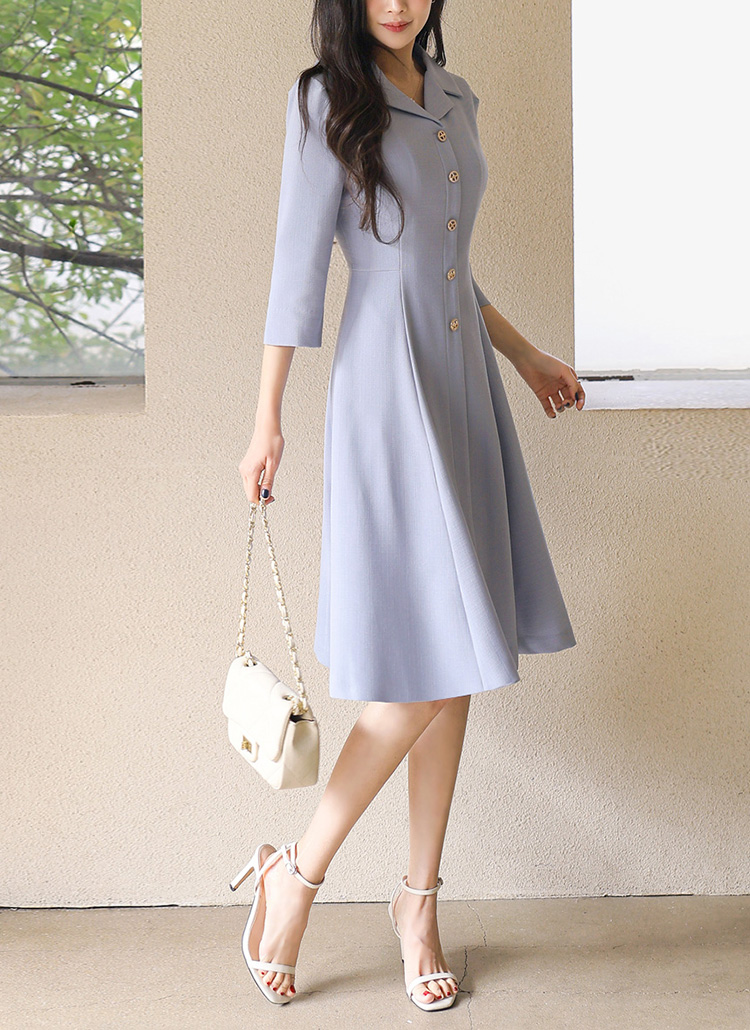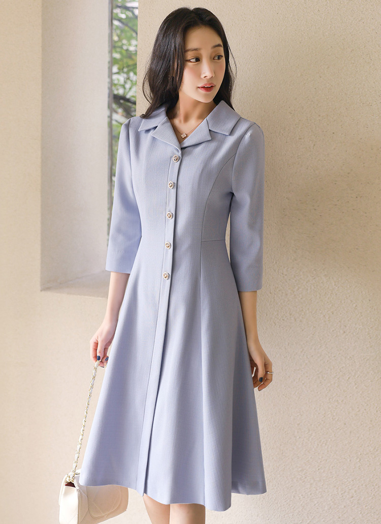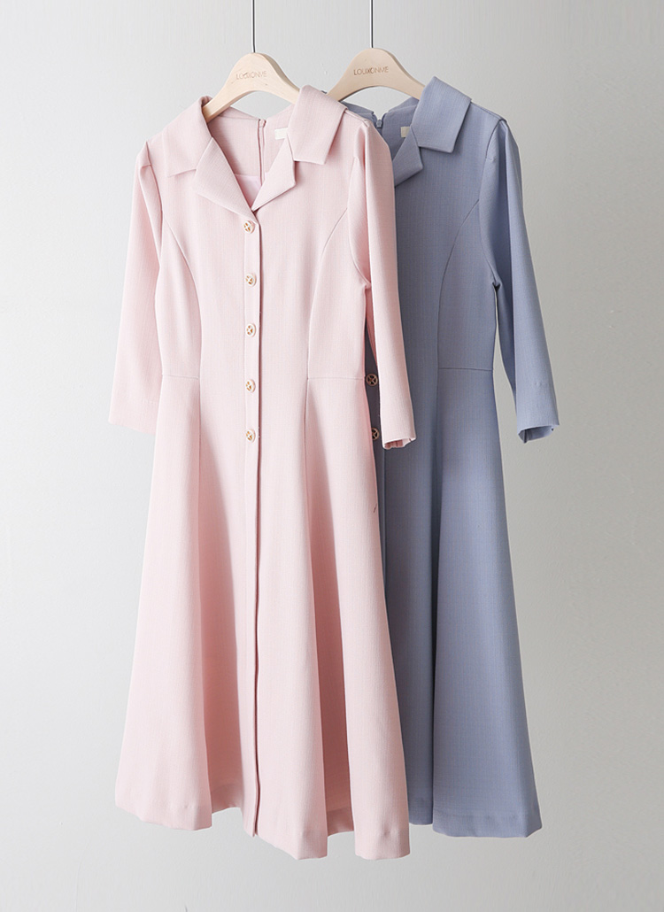 テーラードカラー7分袖スリムフレアワンピース op45134