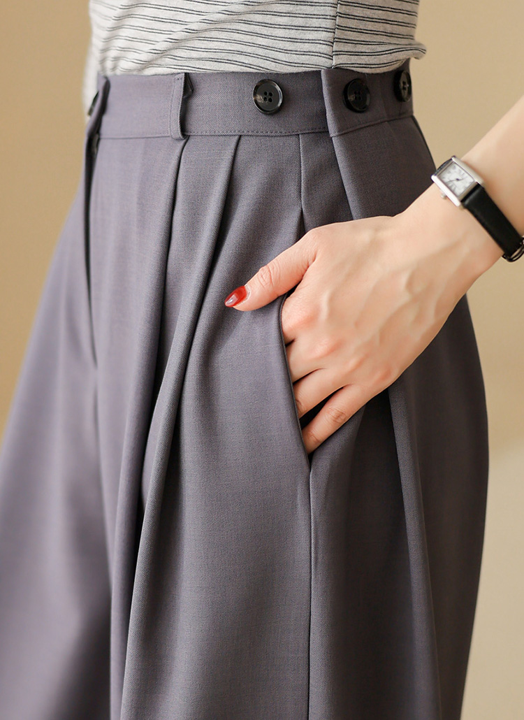 [ウエストボタン調節可能] タックワイドスラックスパンツ pt45158