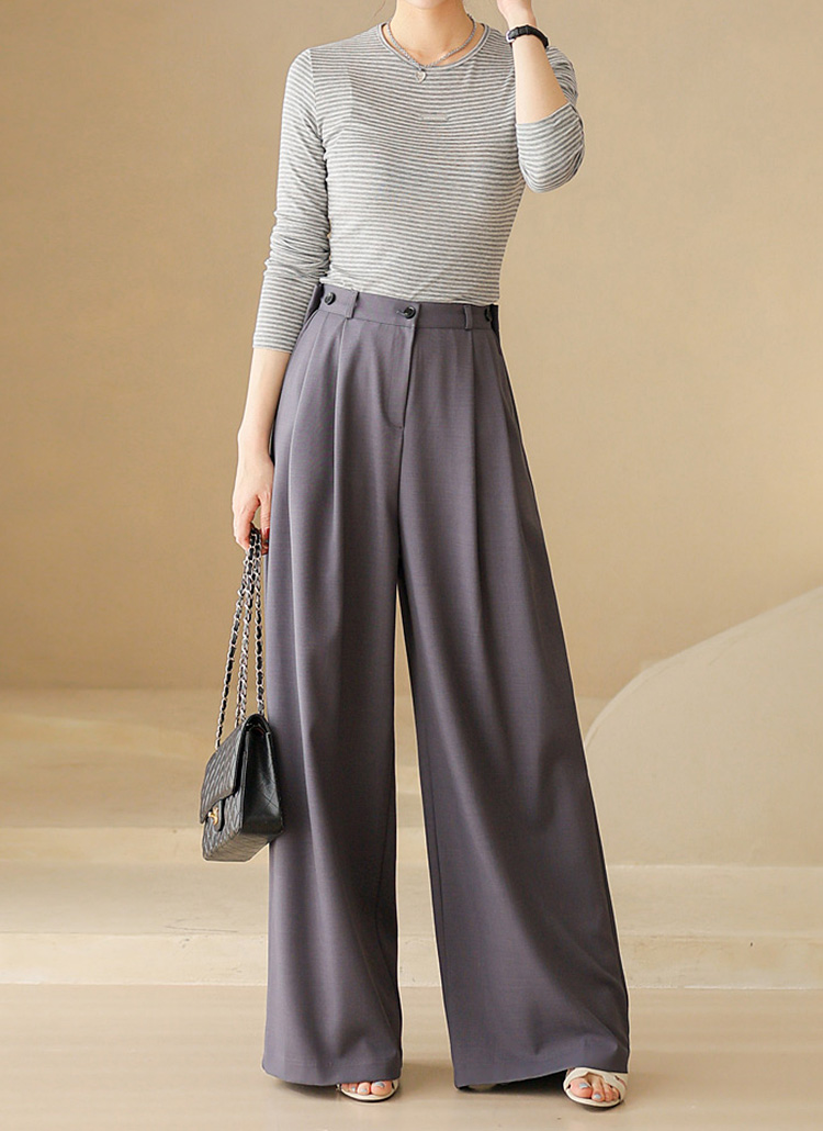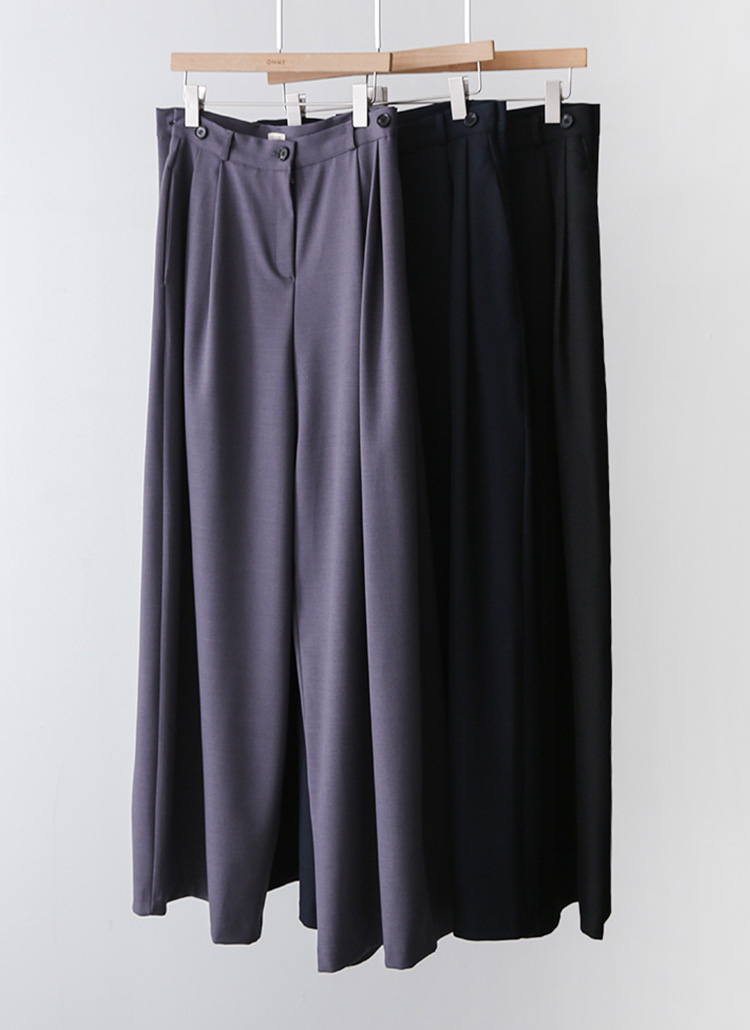 드레시한 무드의 투핀턱 와이드 슬랙스예요