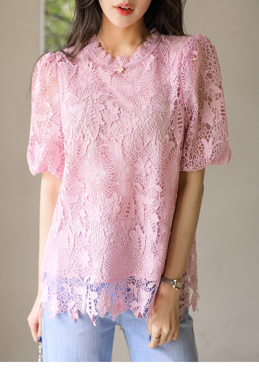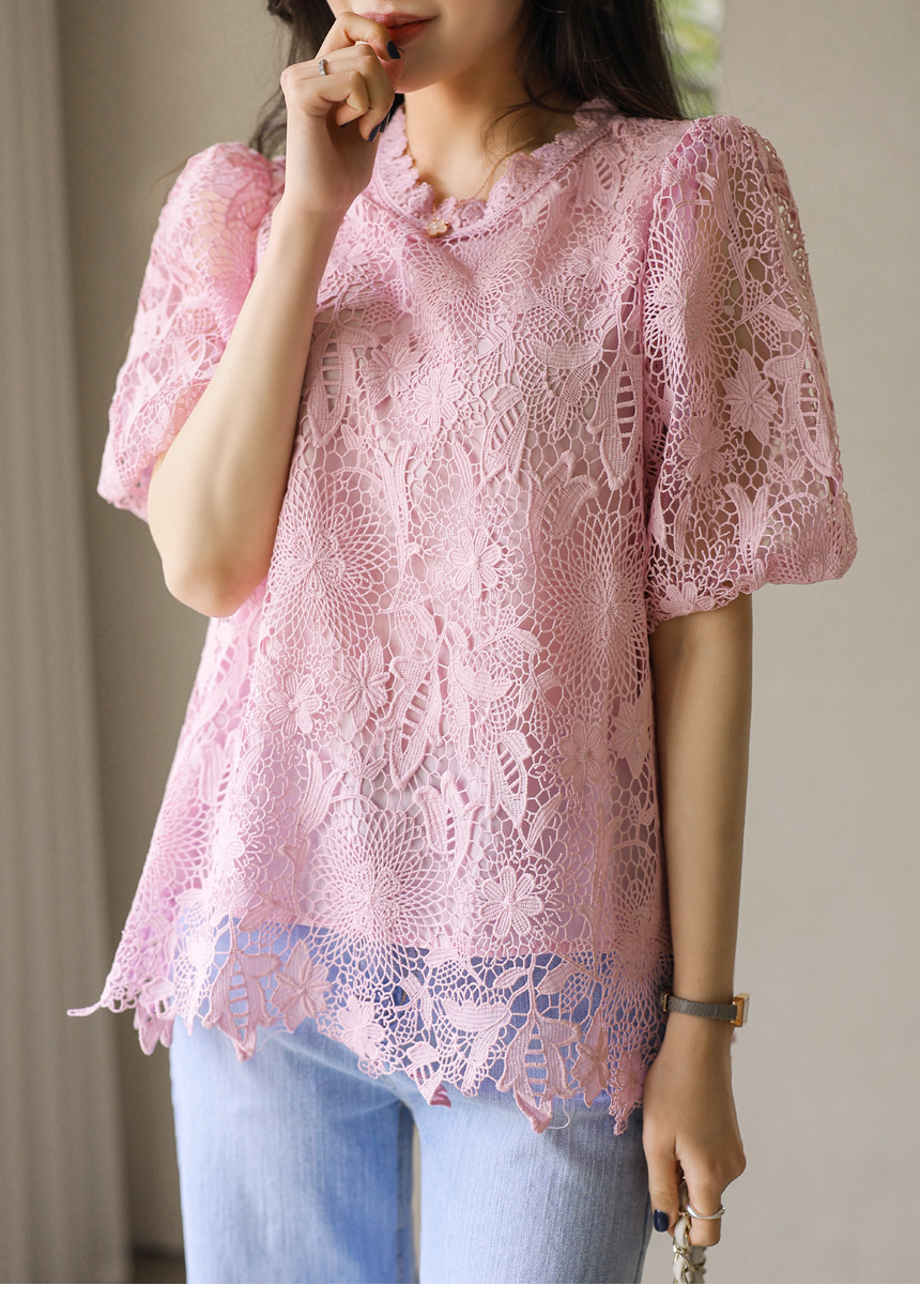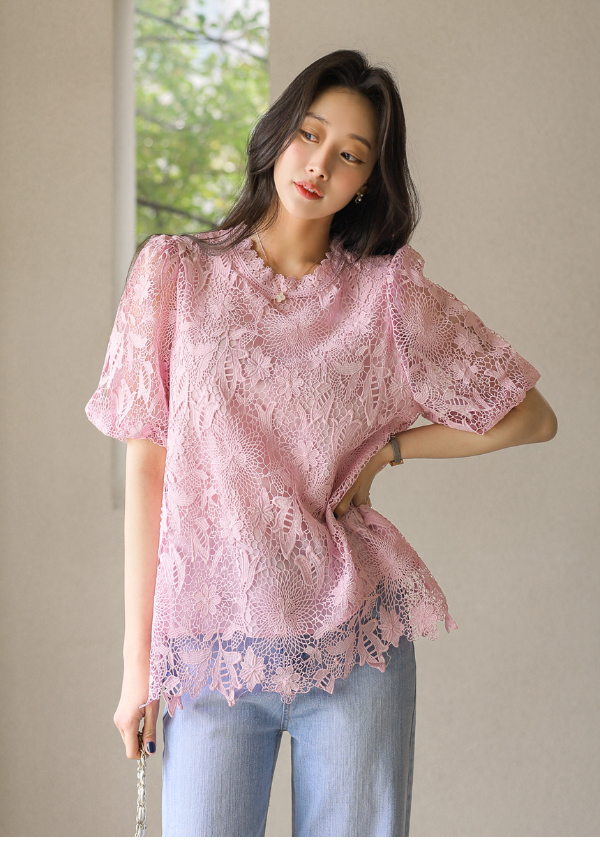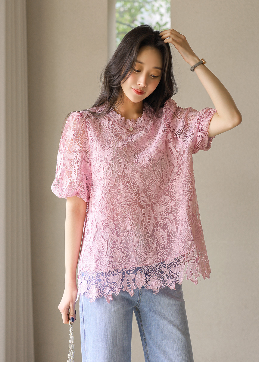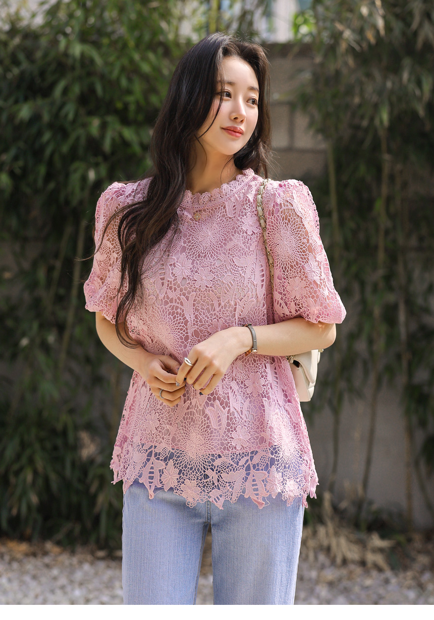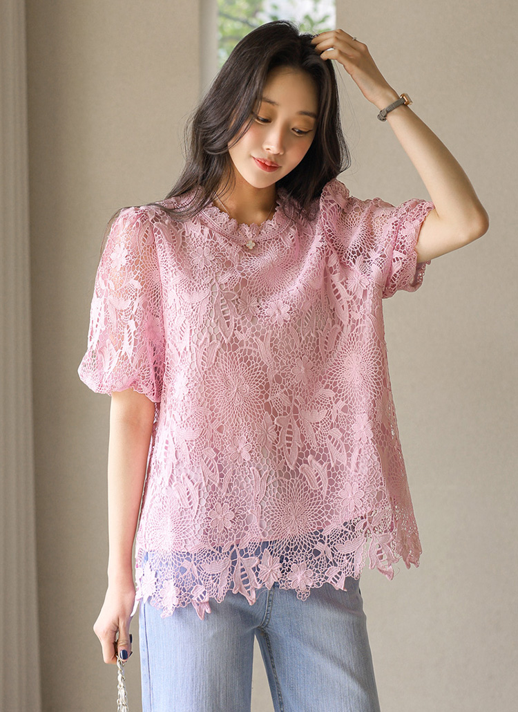 バルーンスリーブフラワーレースブラウス bl45161