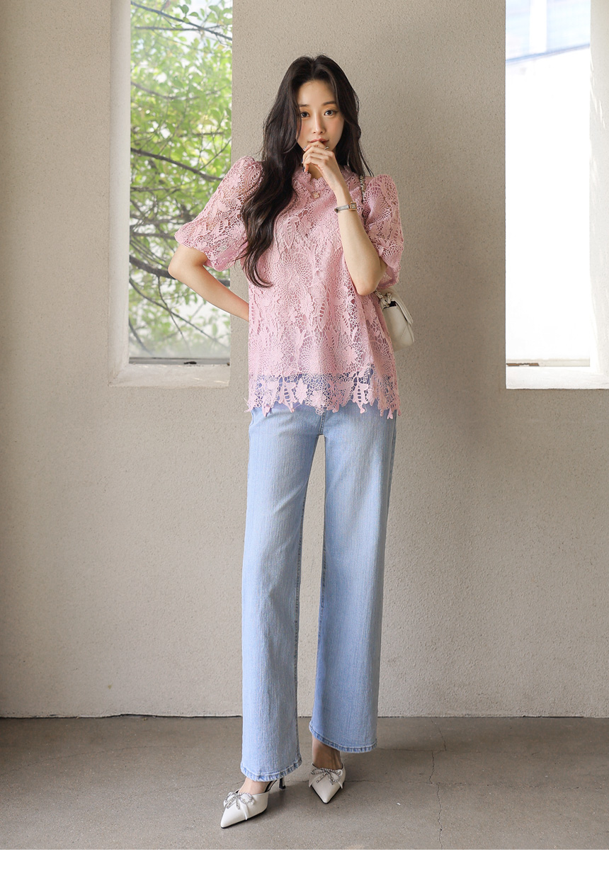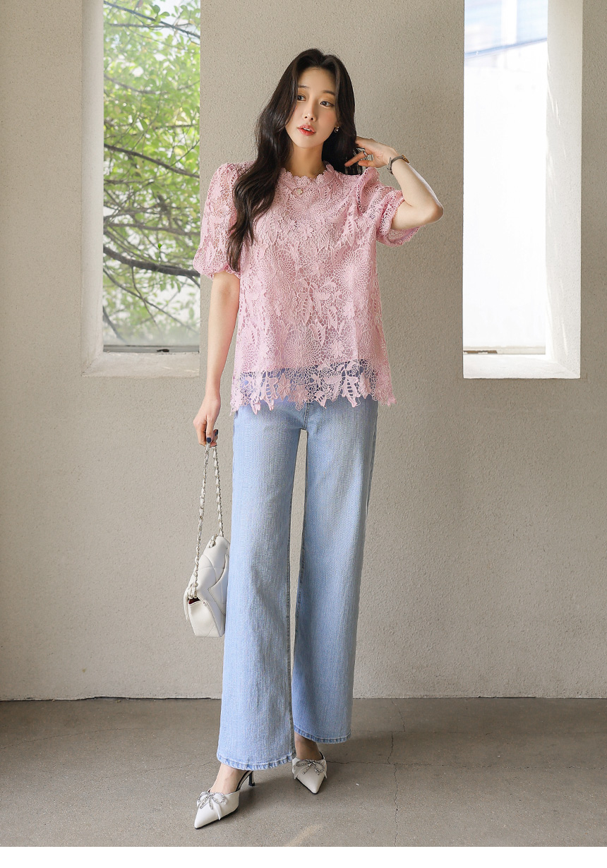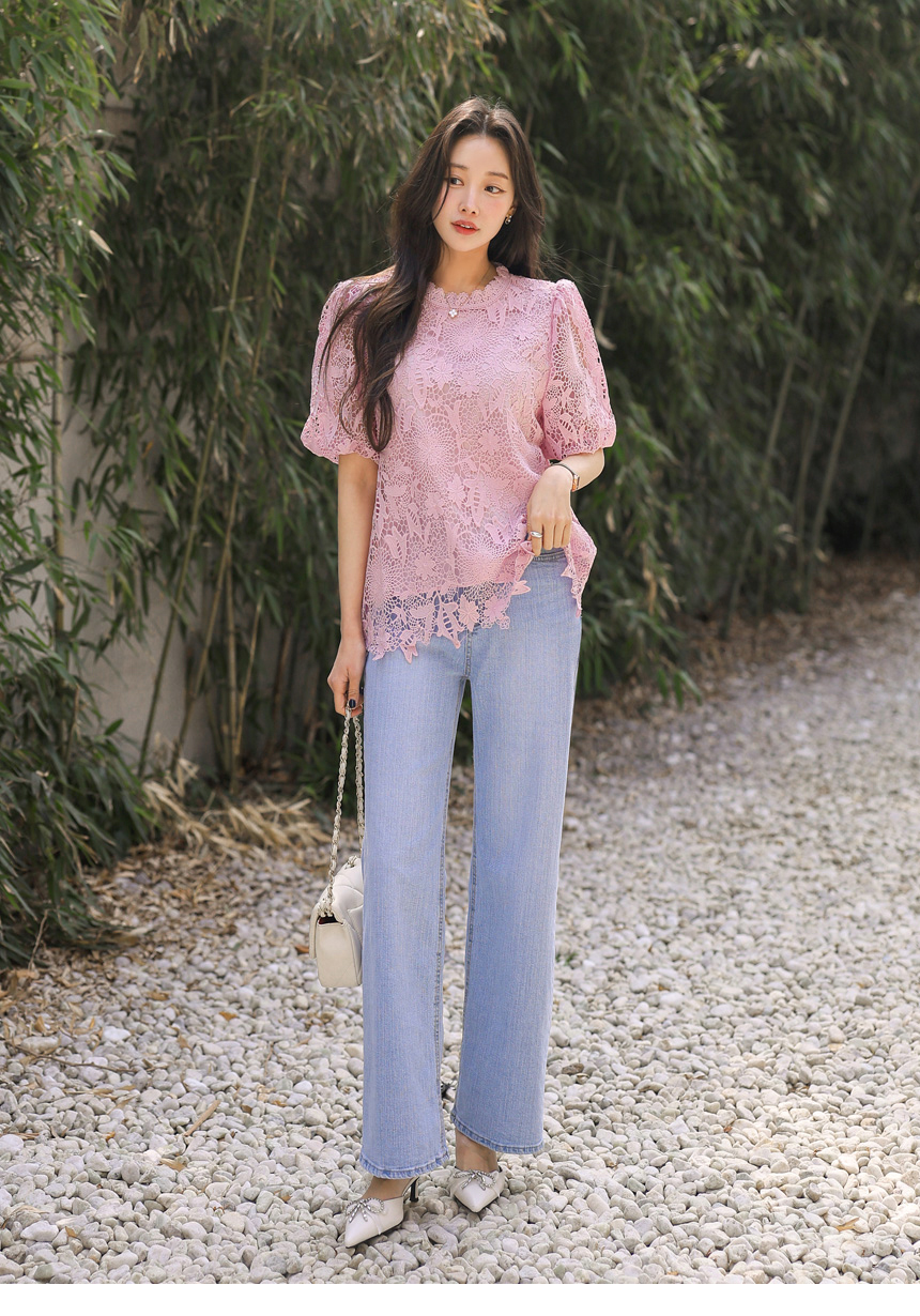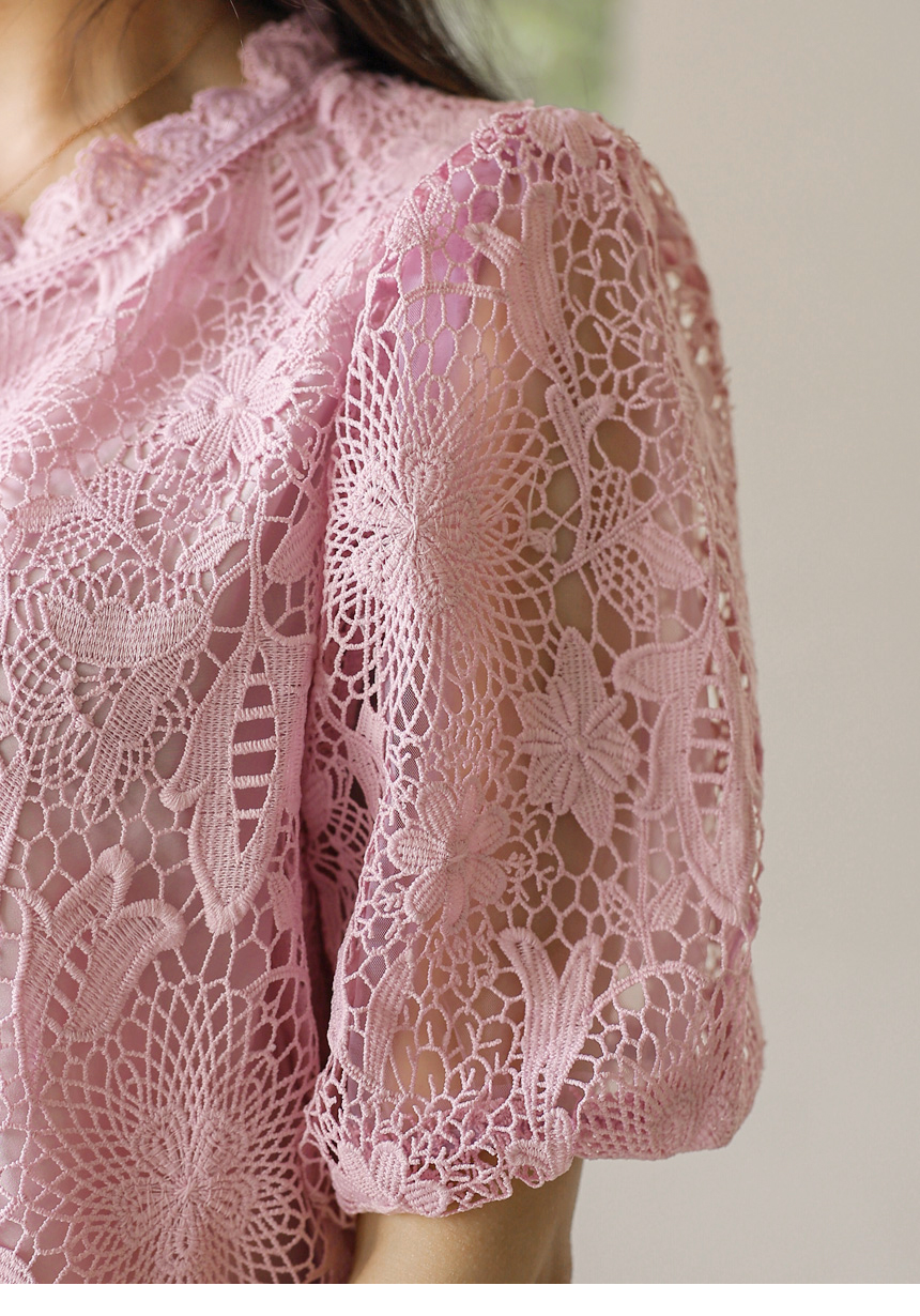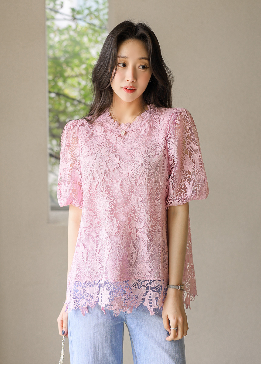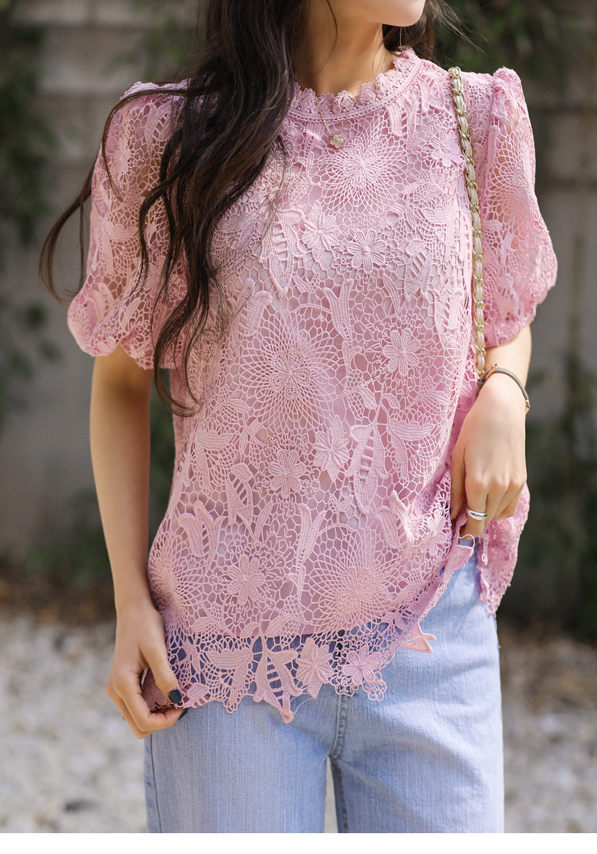 バルーンスリーブフラワーレースブラウス bl45161