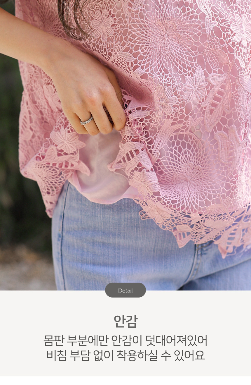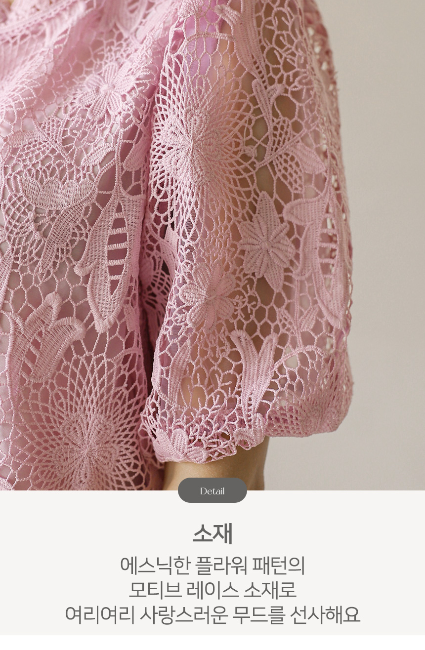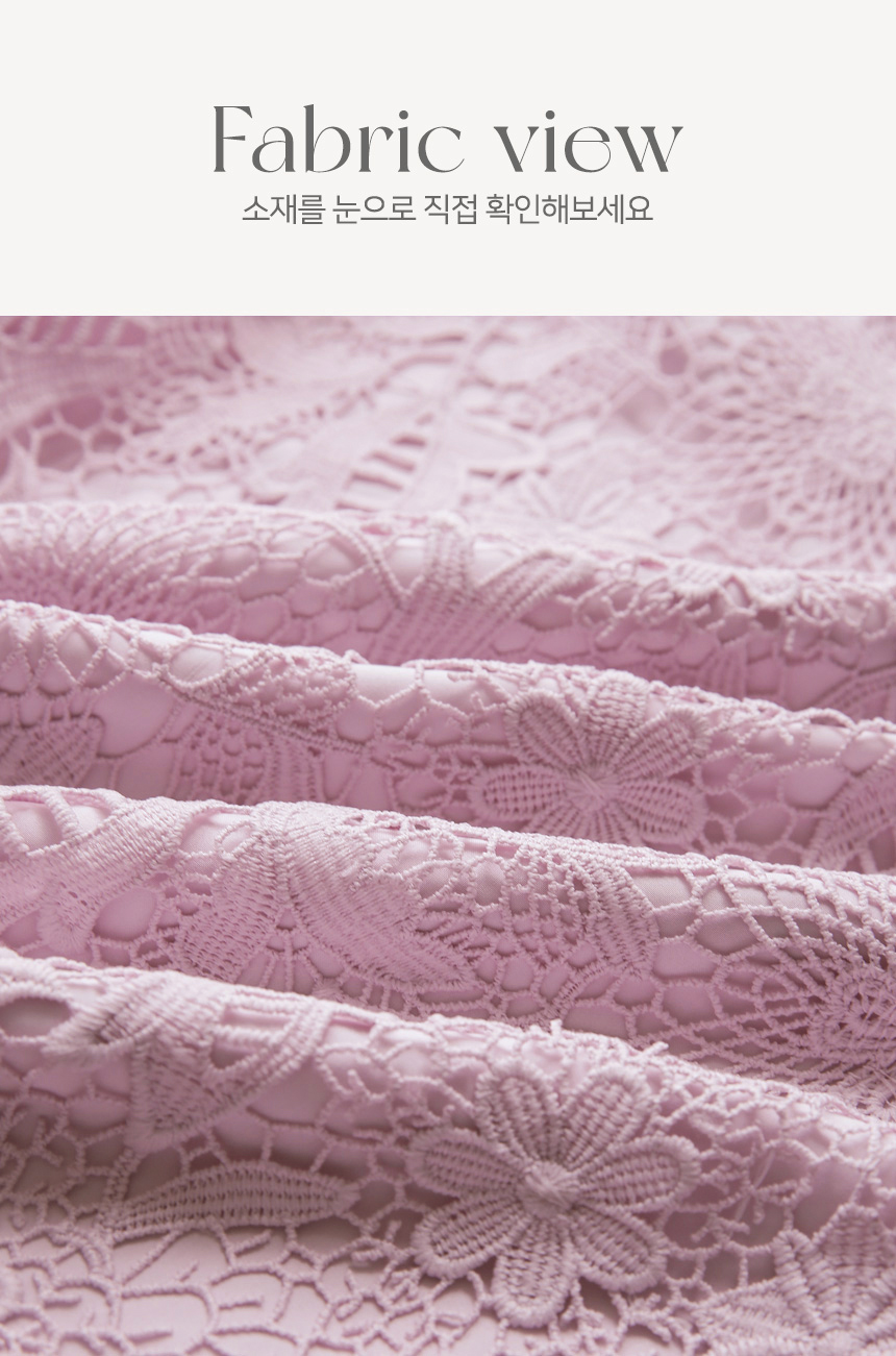 크기감 있는 모티브 플라워 레이스로 제작되어