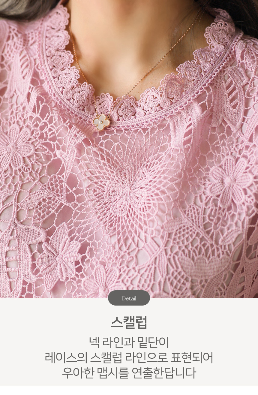 밑단은 레이스의 스캘럽 라인을 그대로 살려 디자인되어
