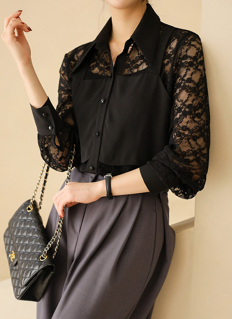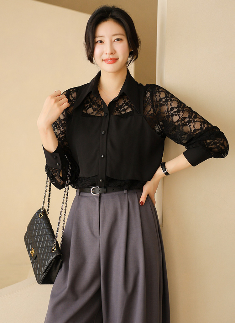소매와 어깨, 허리 윗부분까지 자연스럽게 이어지는 시스루 디테일이