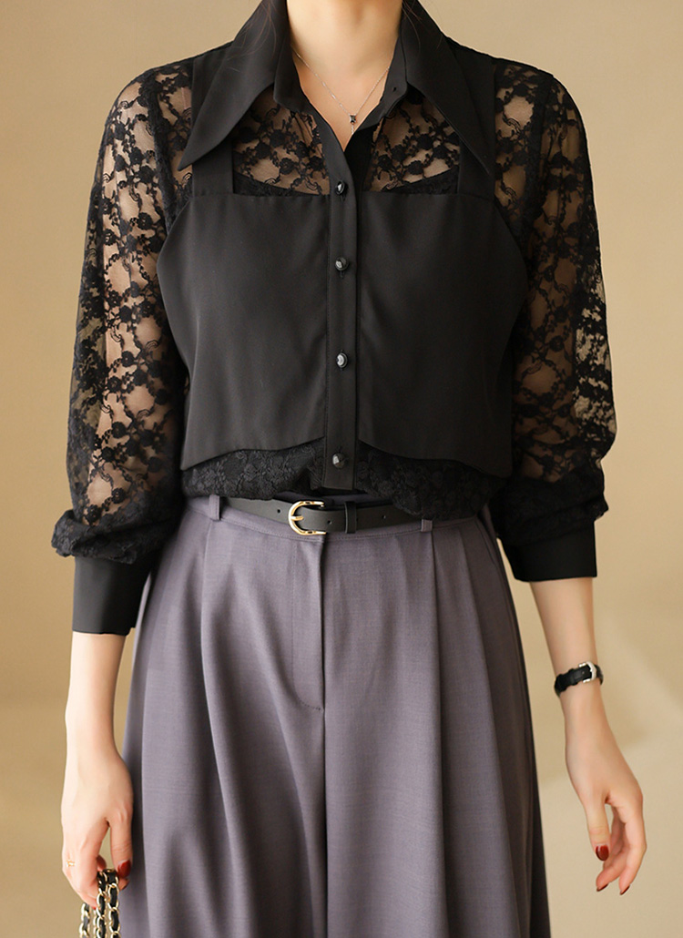 レイヤード風 レースドッキング ビスチェブラウス bl45185