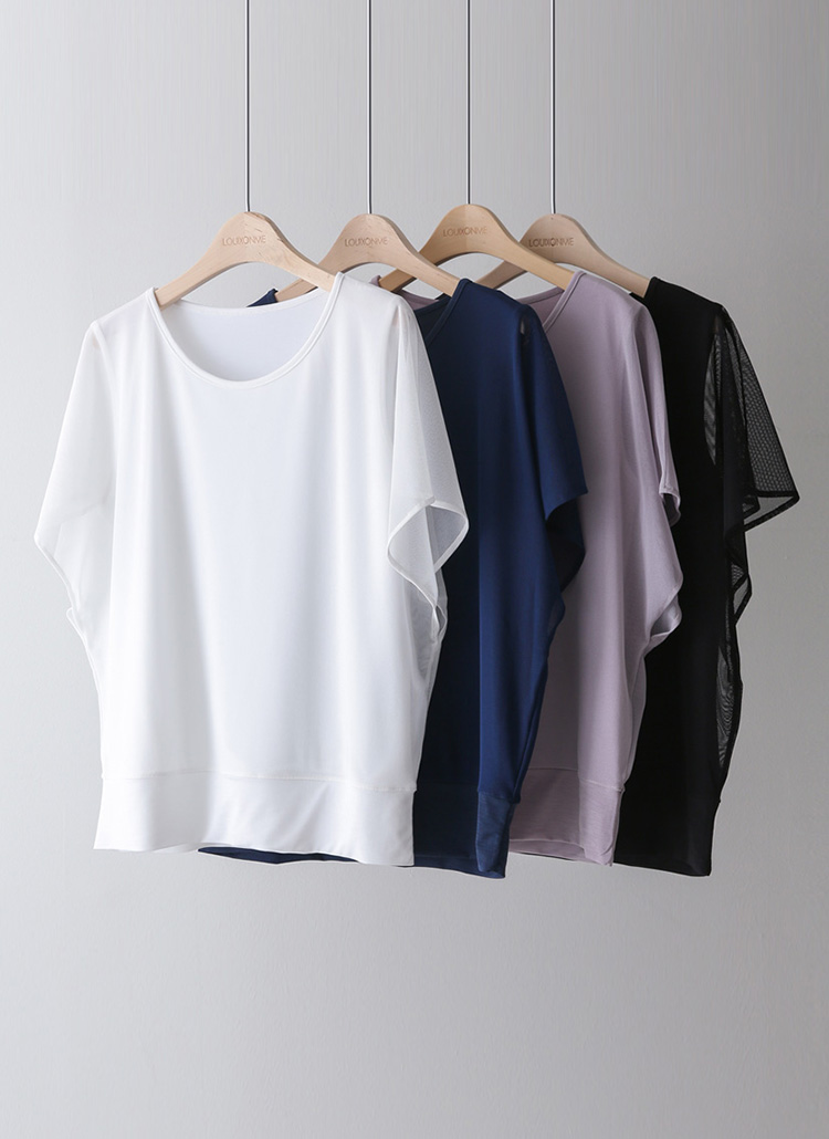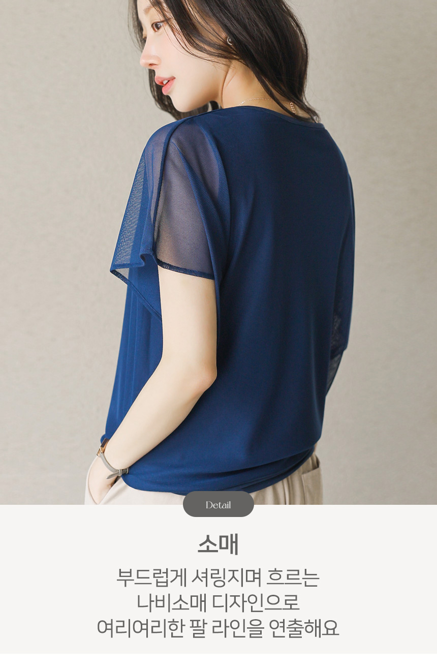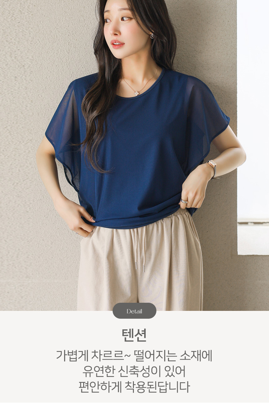 자연스럽게 흐르는 드레이프 실루엣이 돋보이는 티셔츠예요