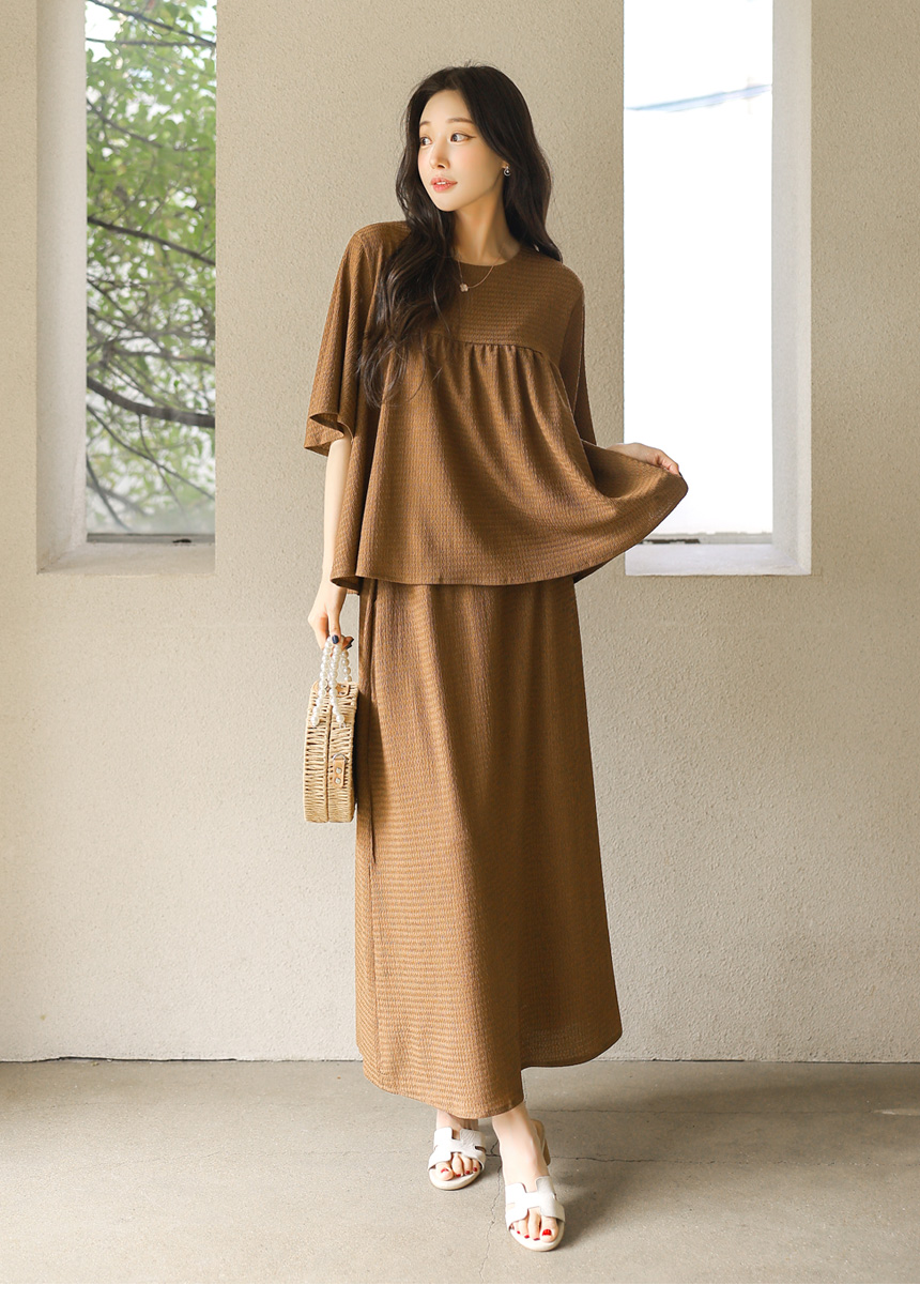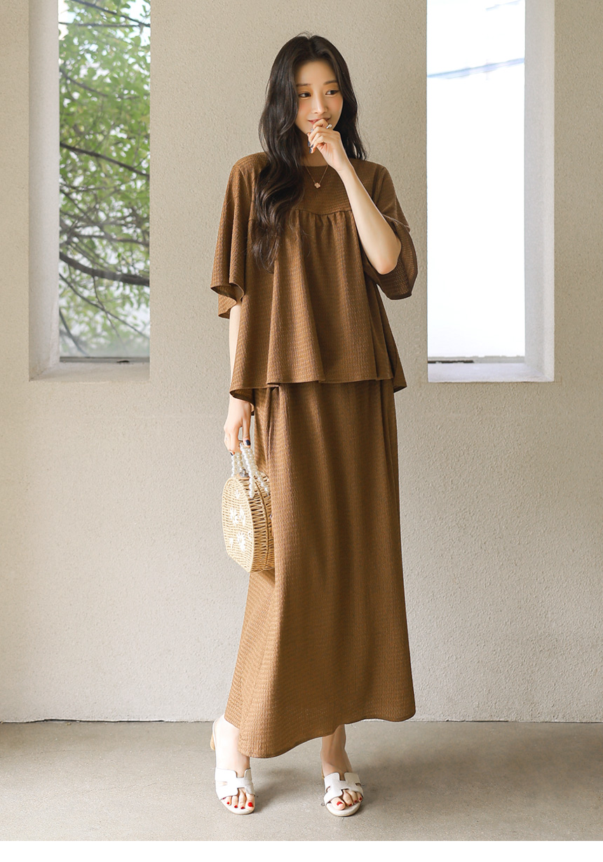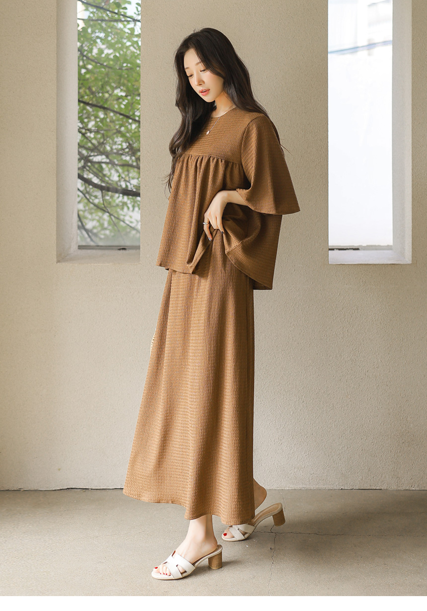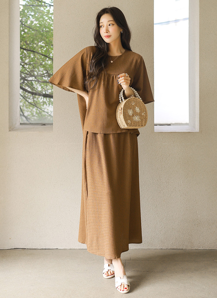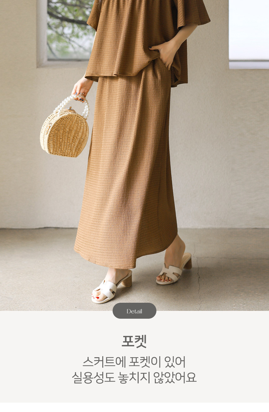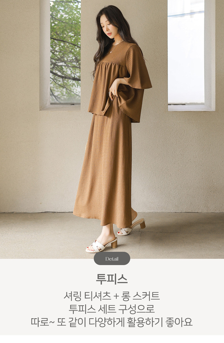 셔링 블라우스 + 롱 스커트 투피스 세트예요