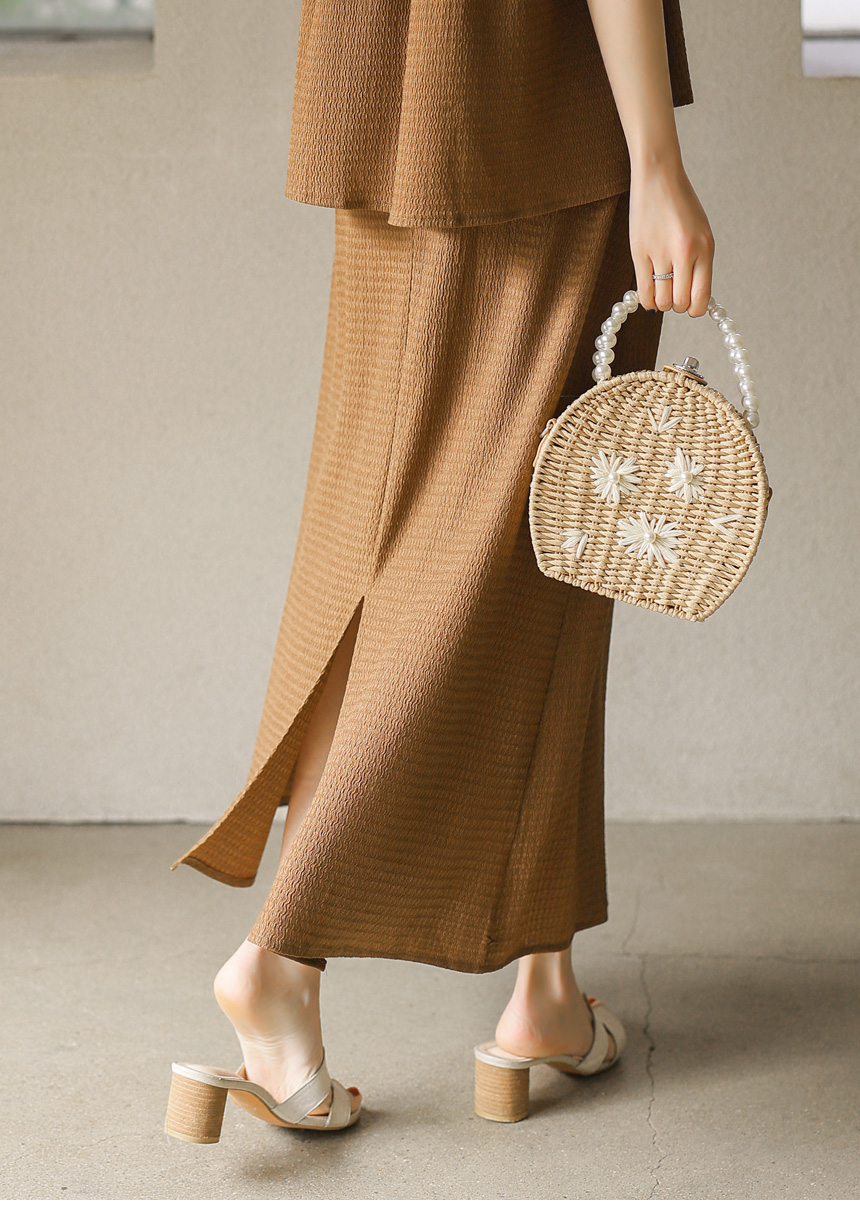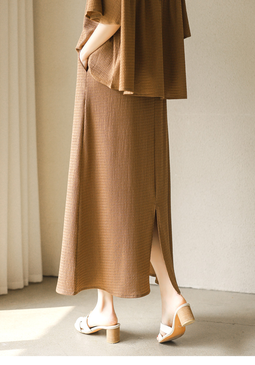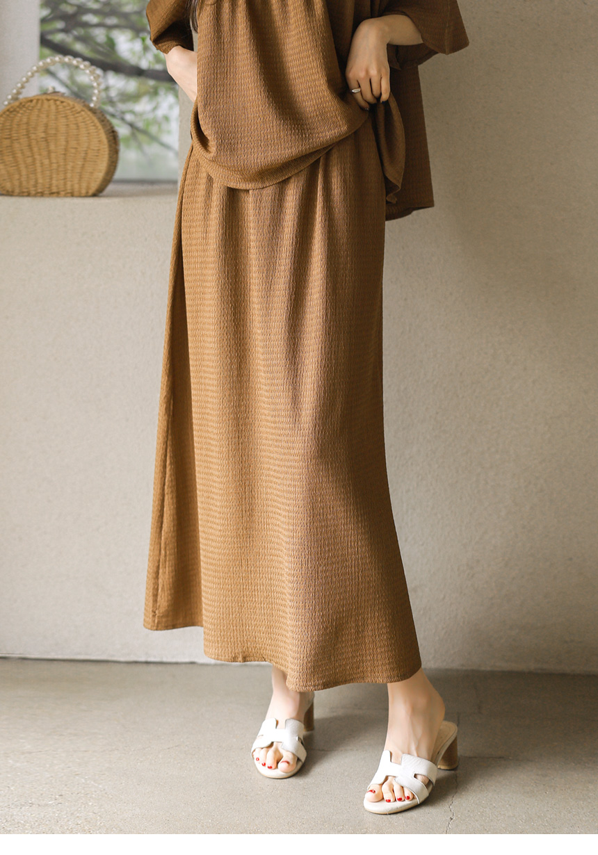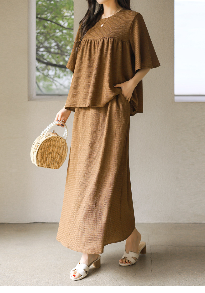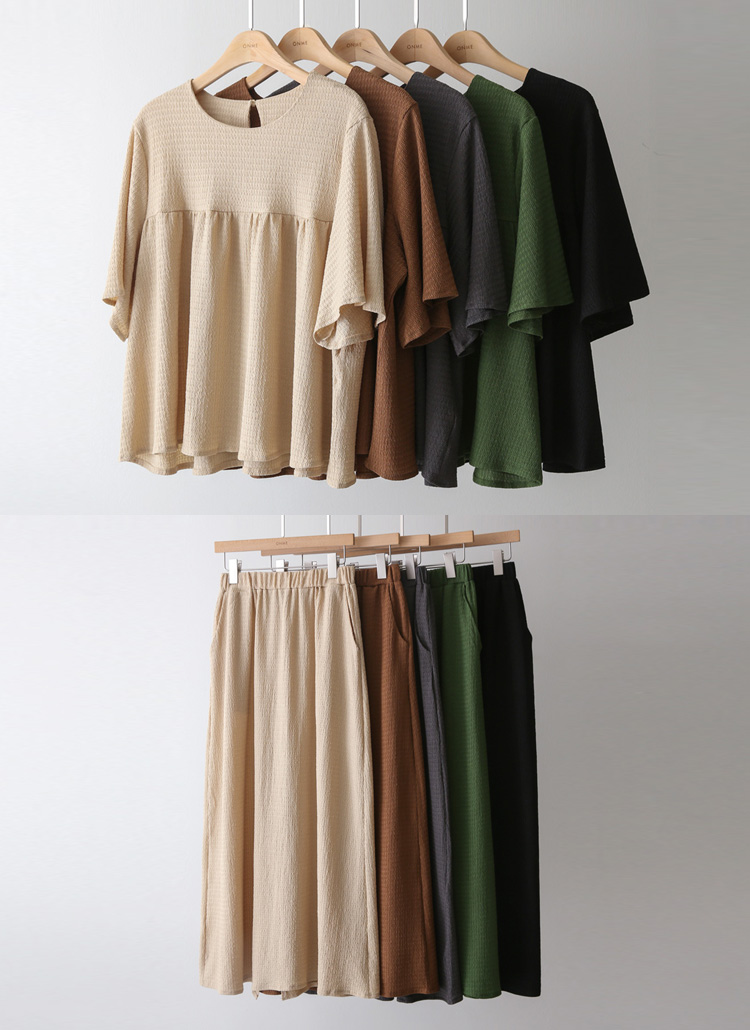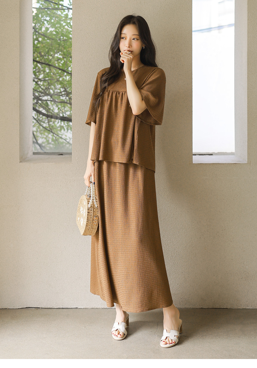 셔링 블라우스 + 롱 스커트 투피스 세트예요