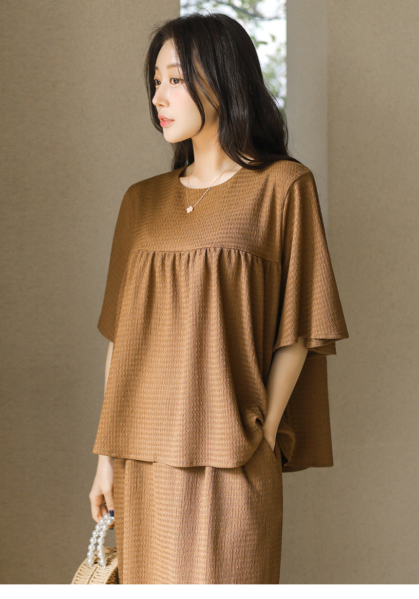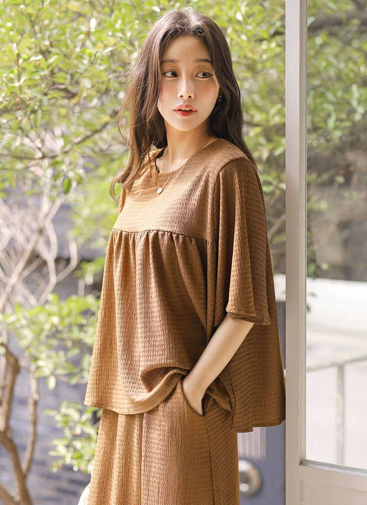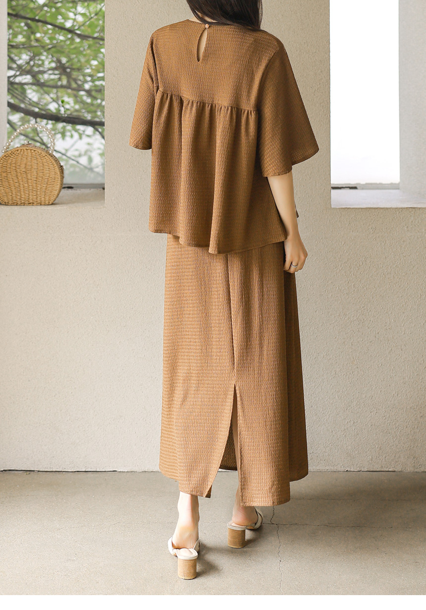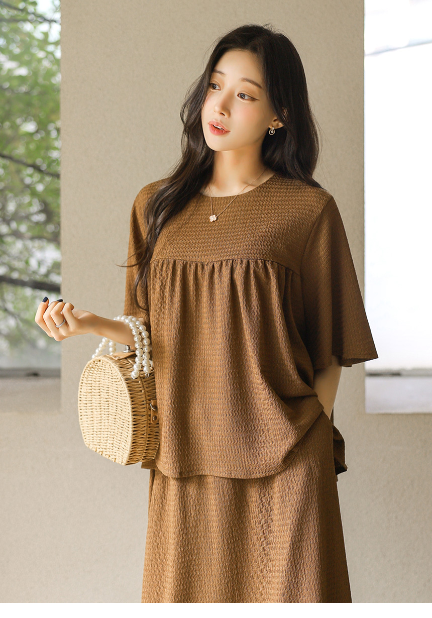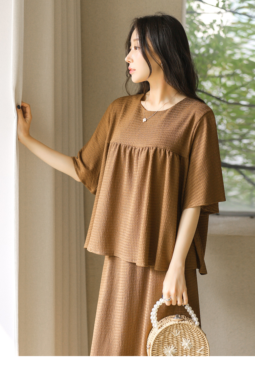 シアサッカーフレアスリーブシャーリングプルオーバー&ロングスカート SET45269