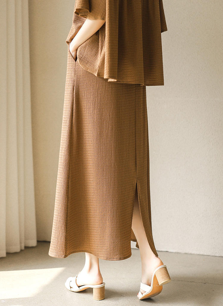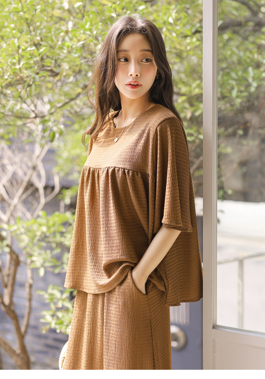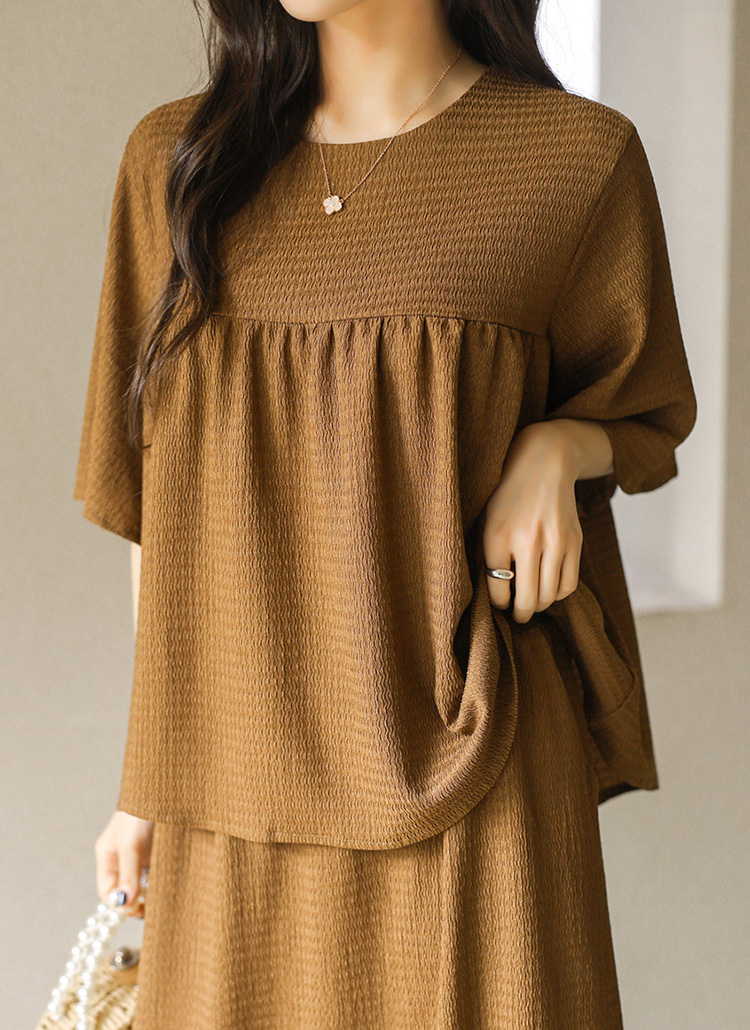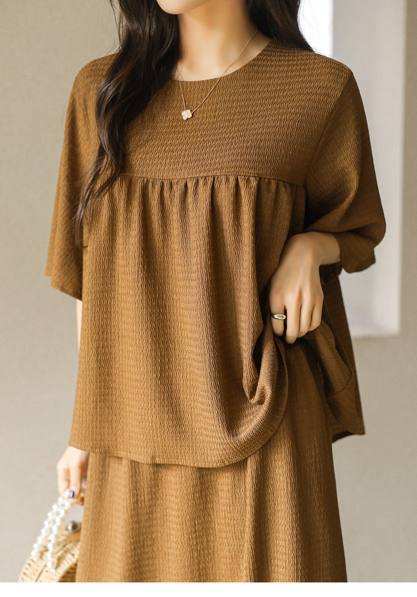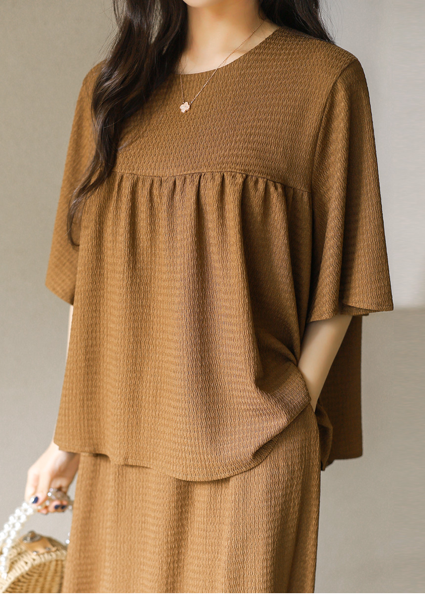 シアサッカーフレアスリーブシャーリングプルオーバー&ロングスカート SET45269