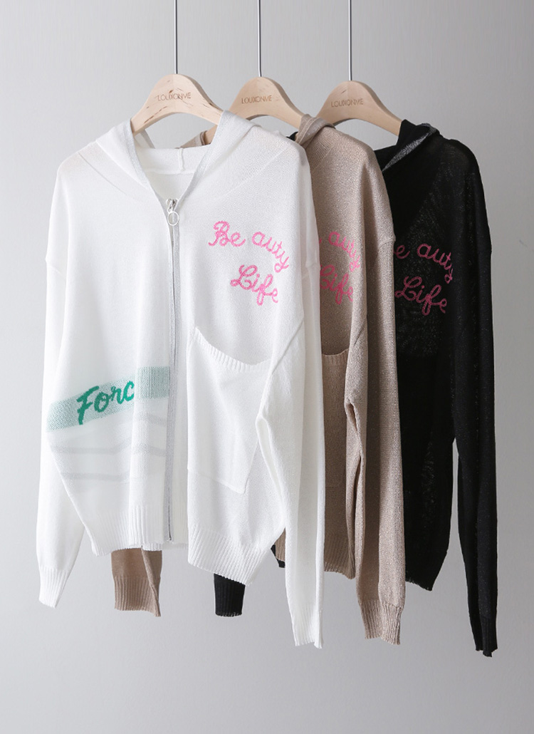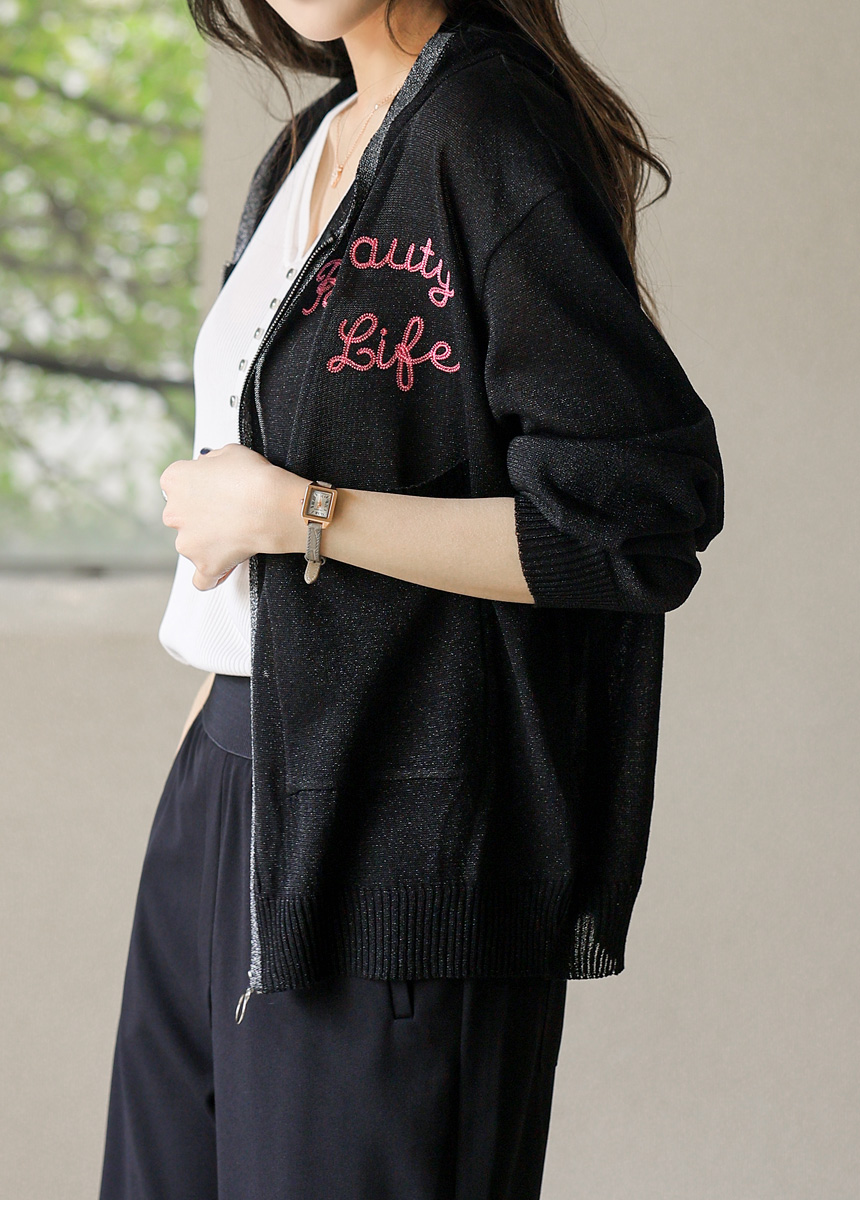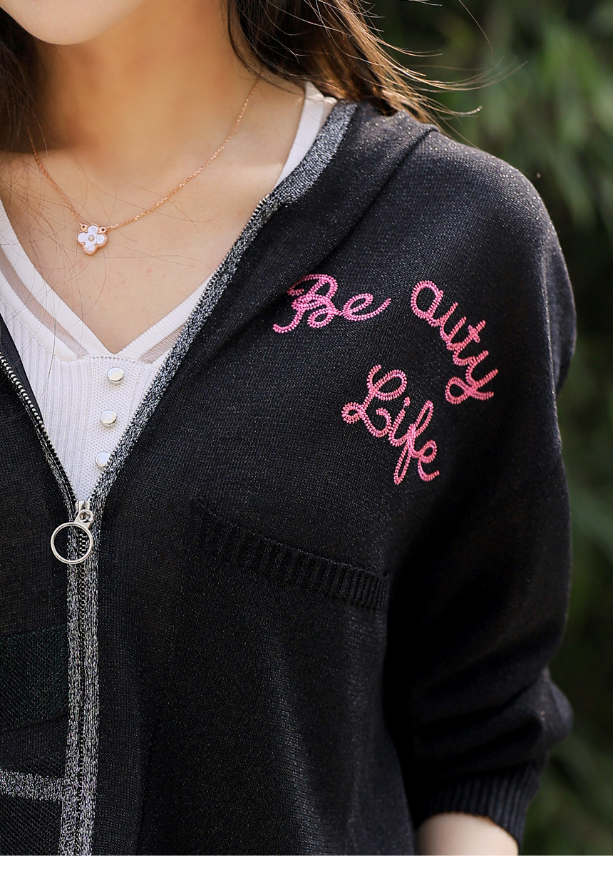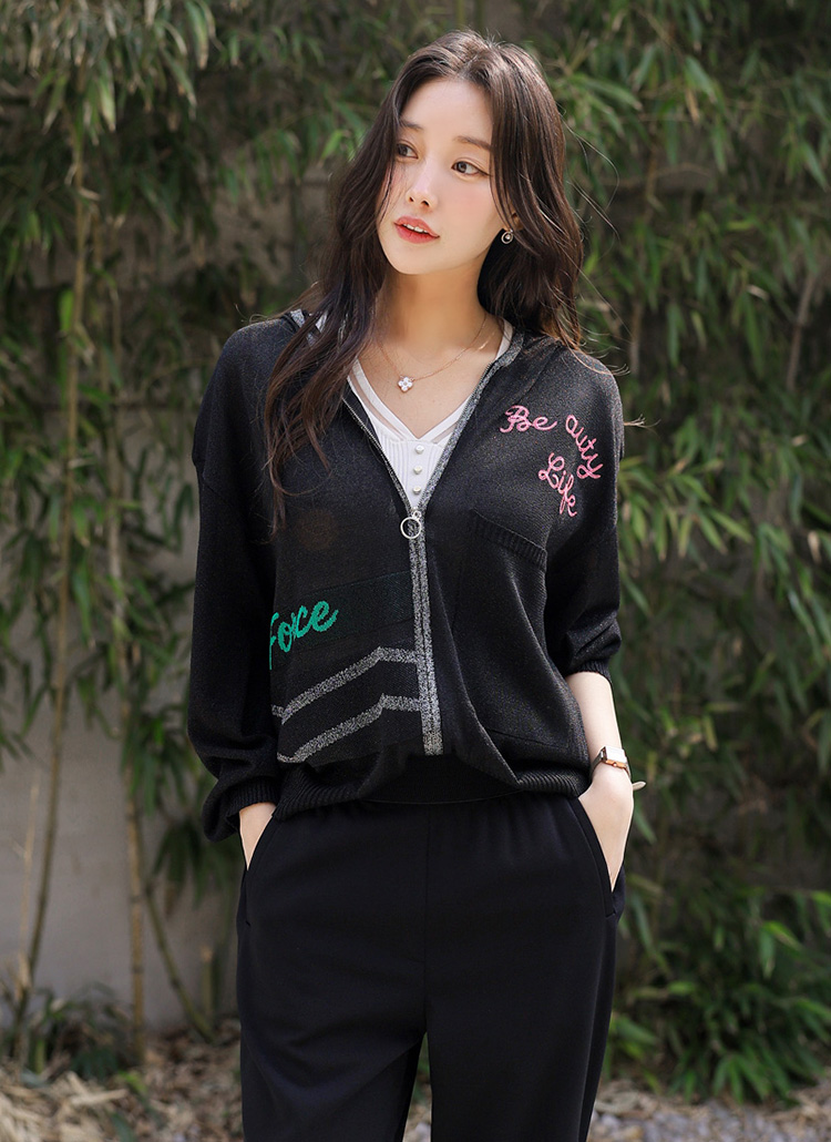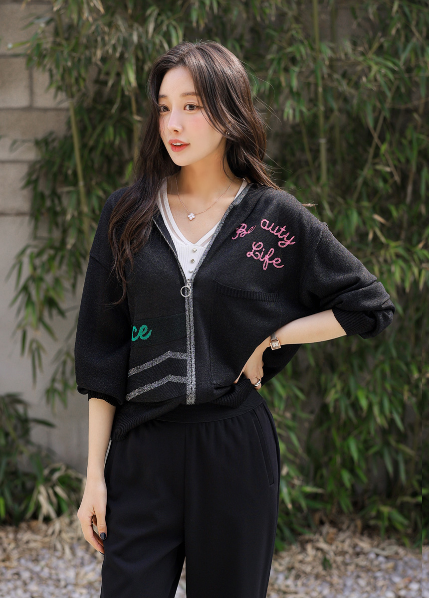 レタリング刺繡 ラメニット ジップアップパーカー cd45275