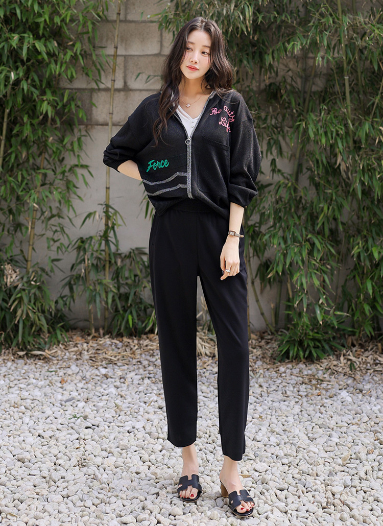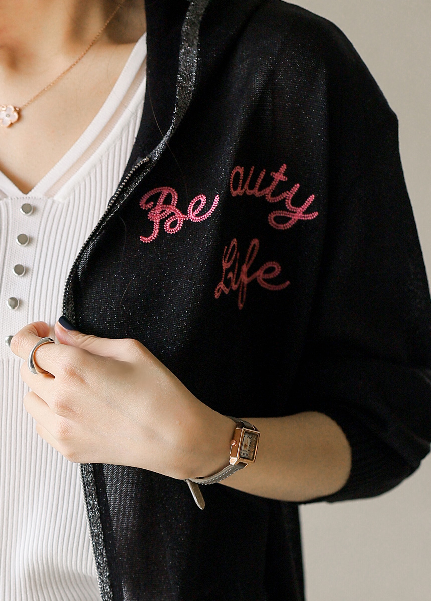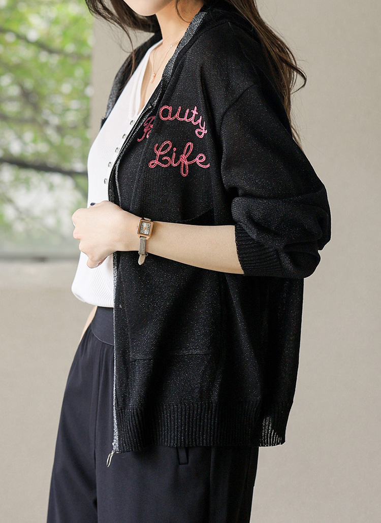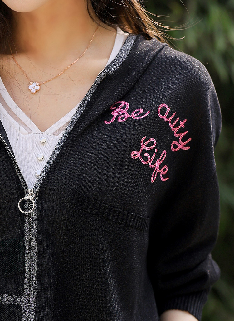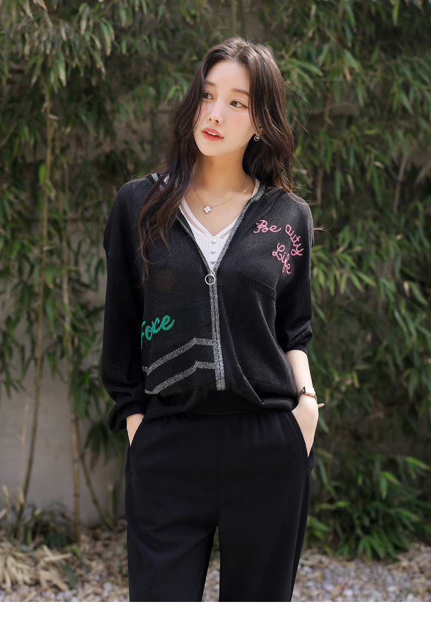 レタリング刺繡 ラメニット ジップアップパーカー cd45275