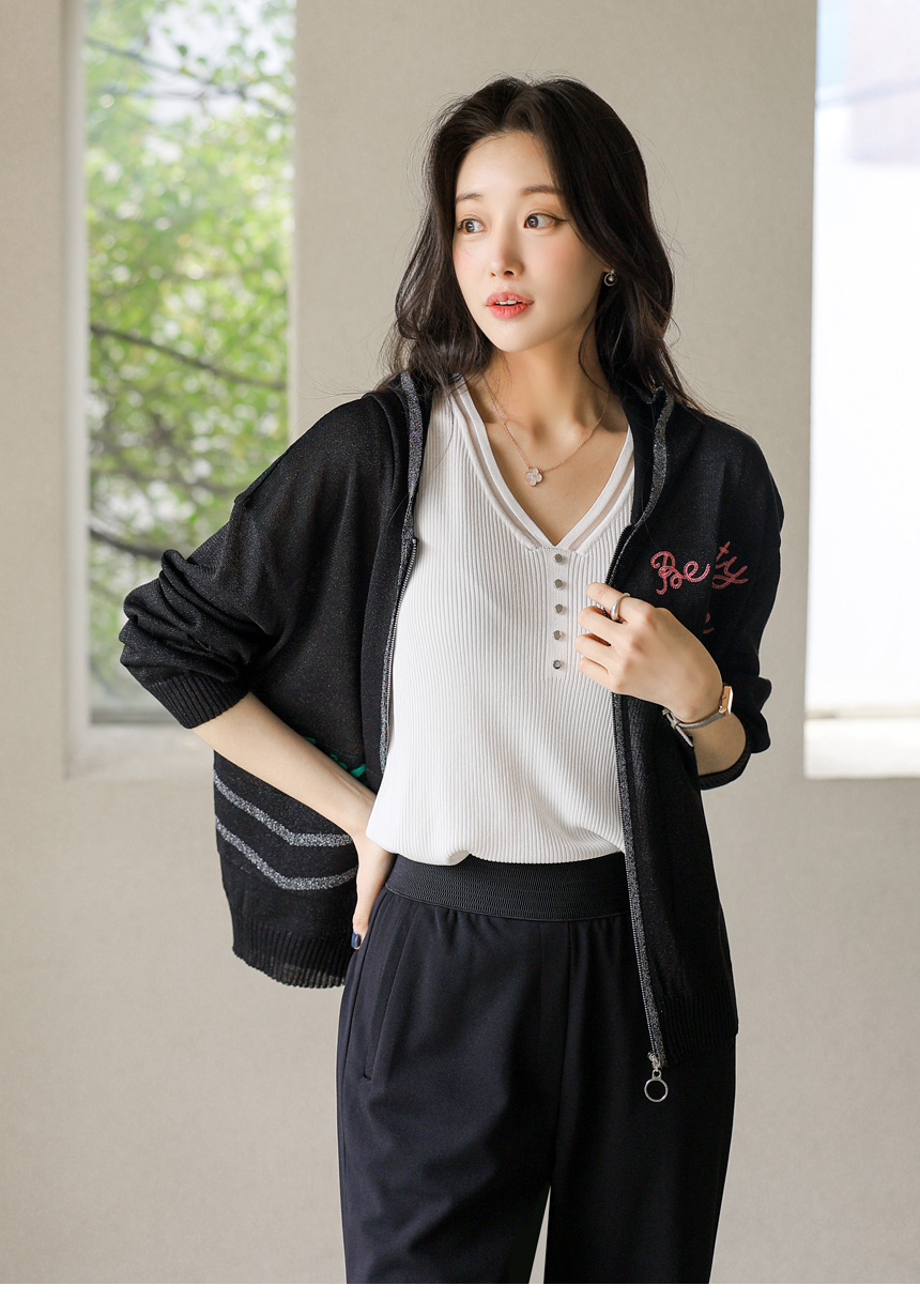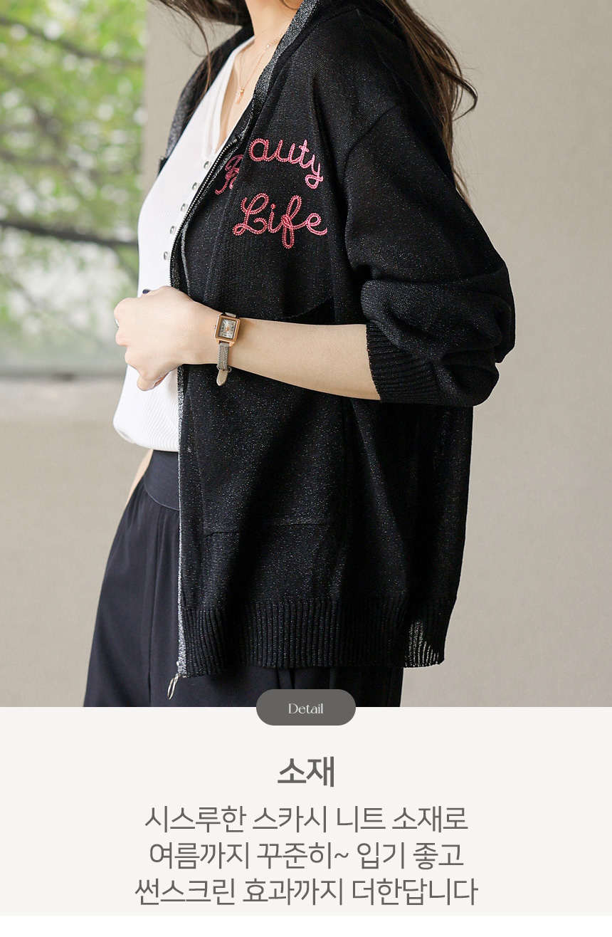 시원하면서도 감각적인 캐주얼 무드를 완성해주는 니트 후드 집업이에요