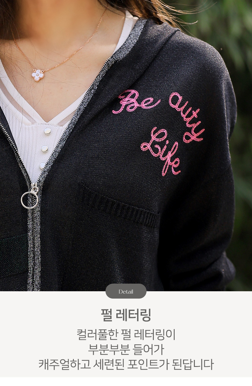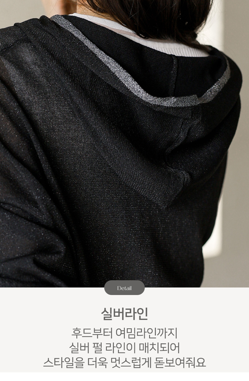 후드부터 여밈 라인까지 이어지는 실버 펄 배색은