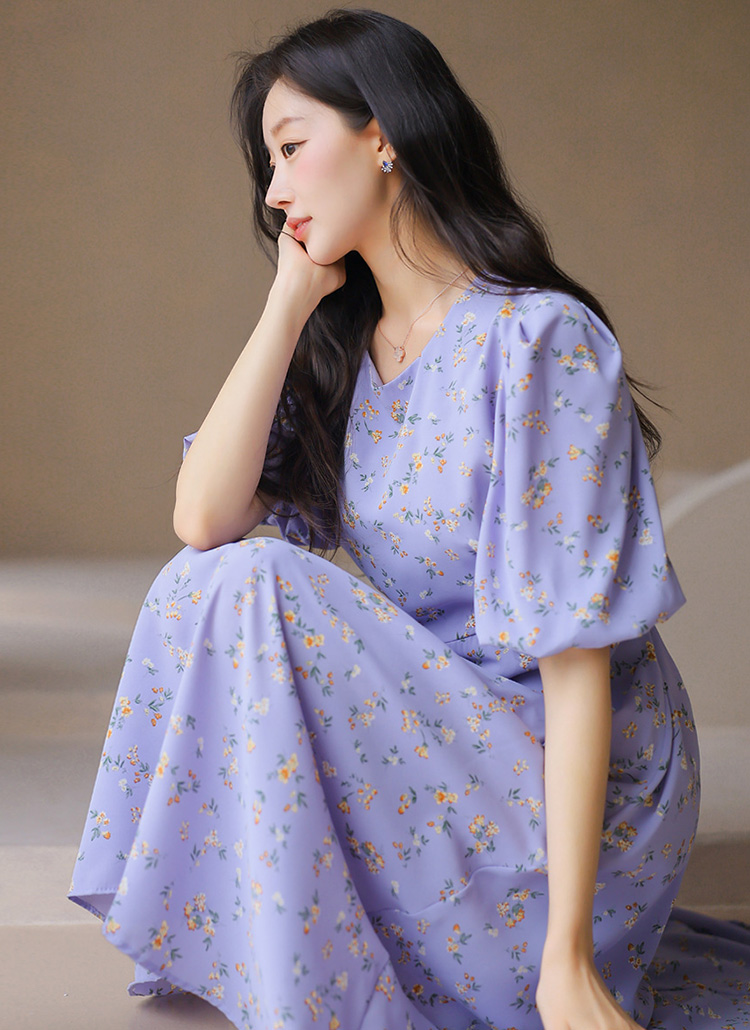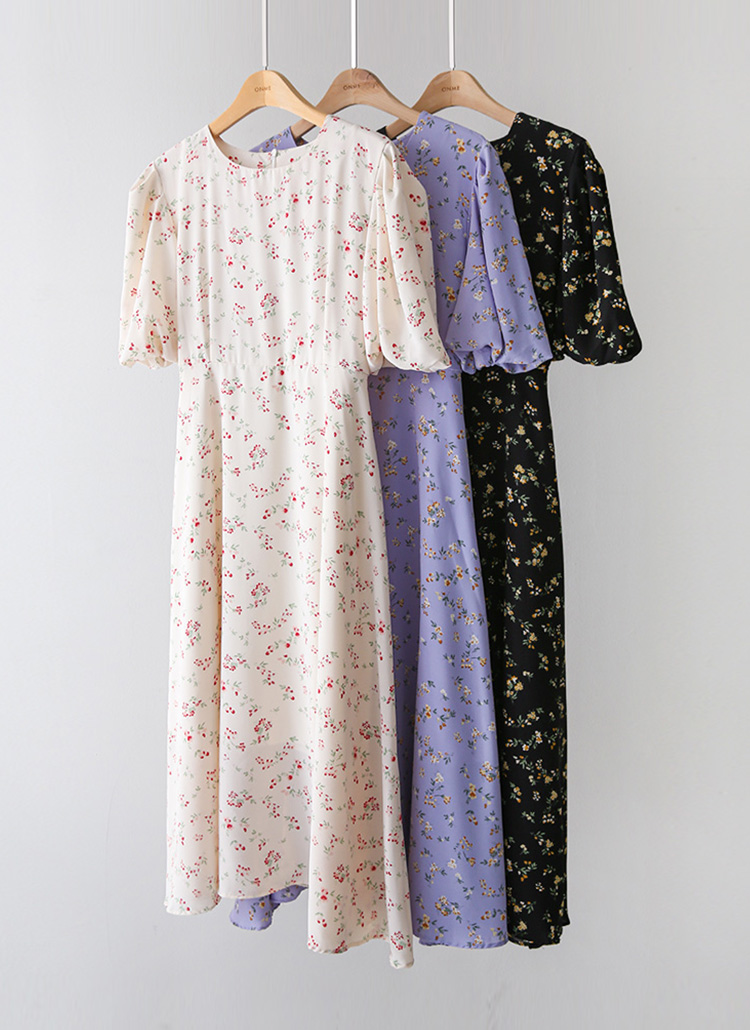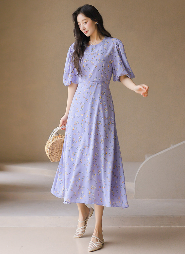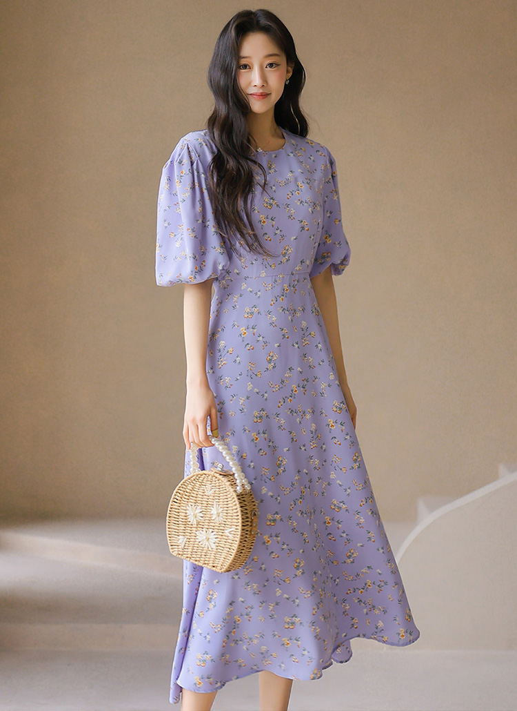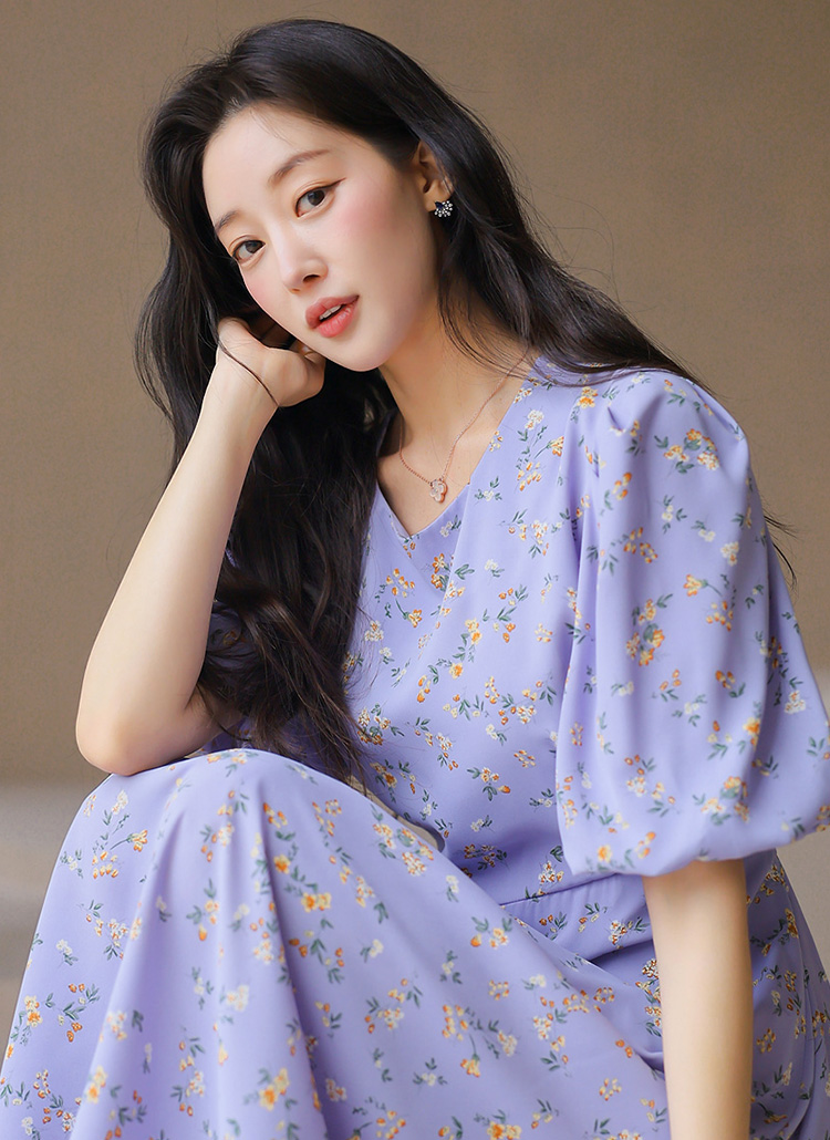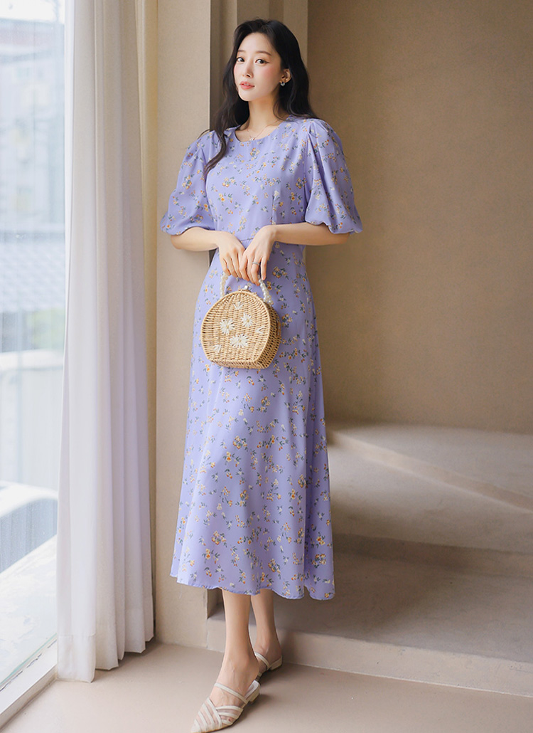 【企画特価】バルーンスリーブフラワーロングフレアワンピース op45302