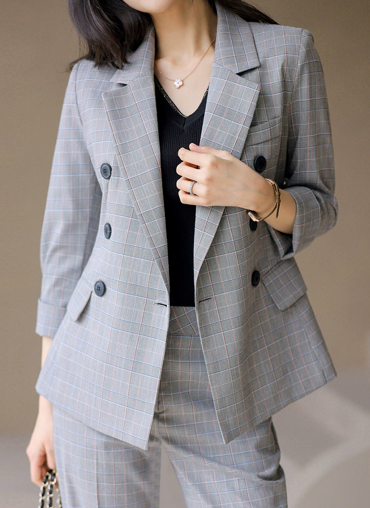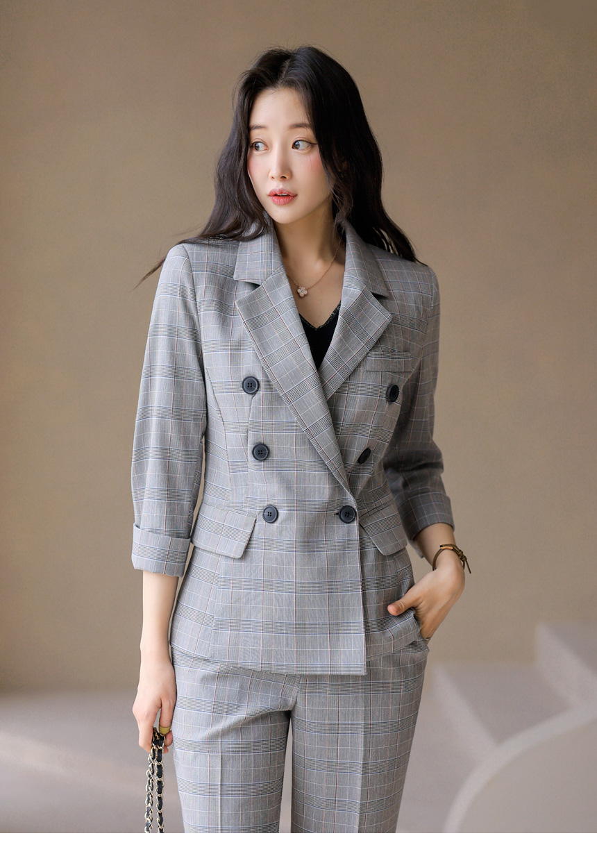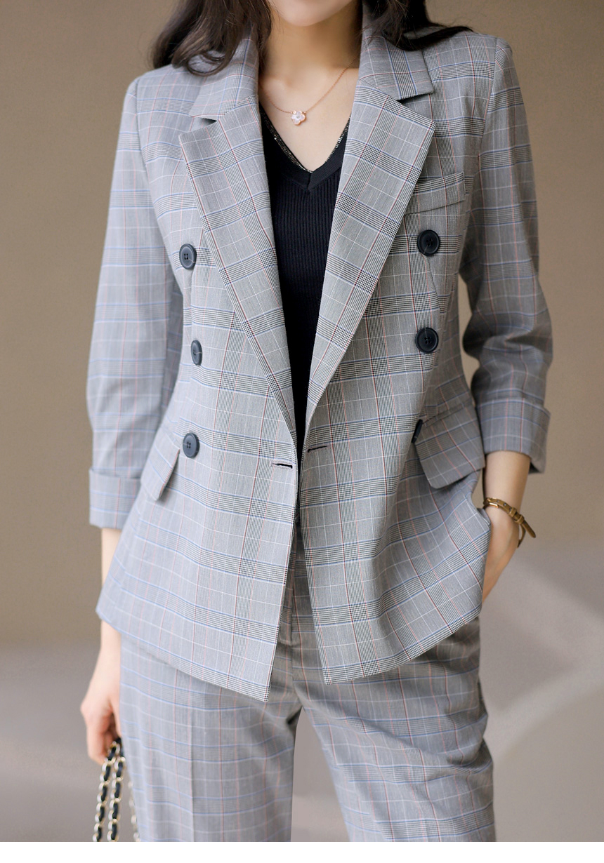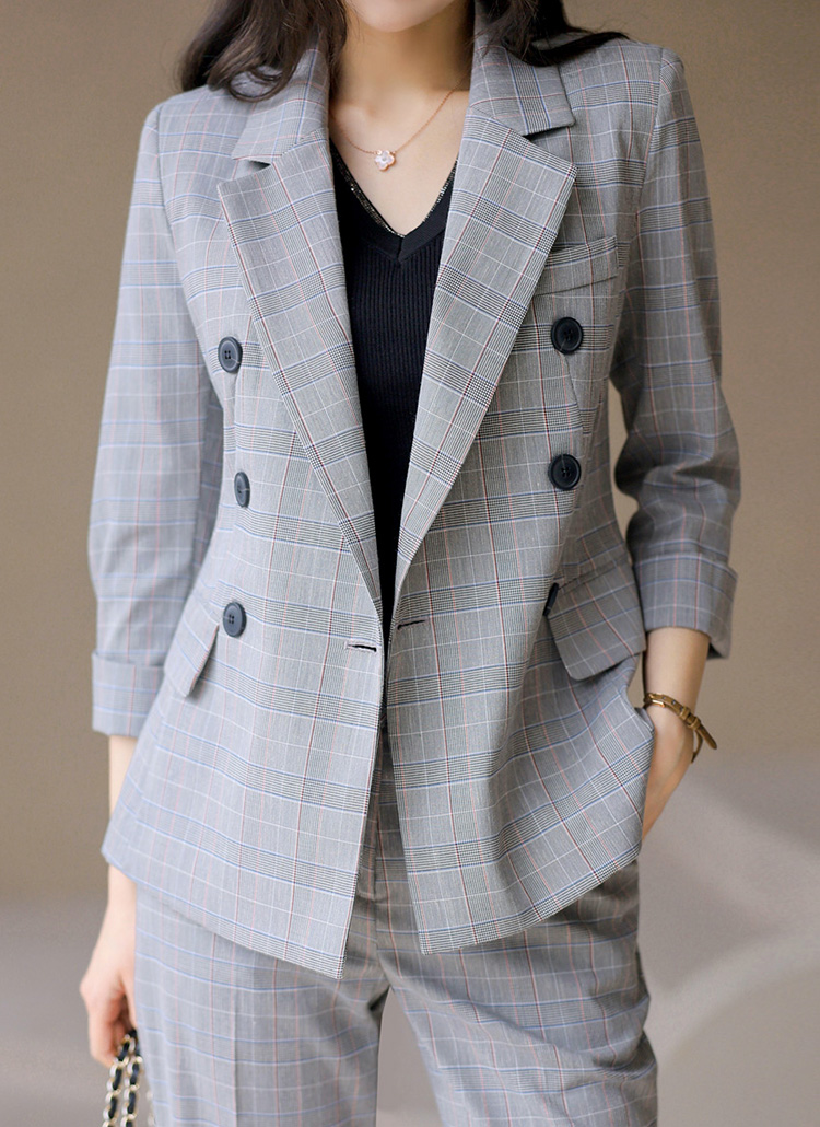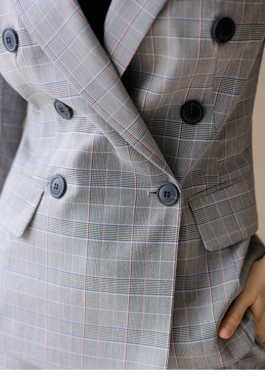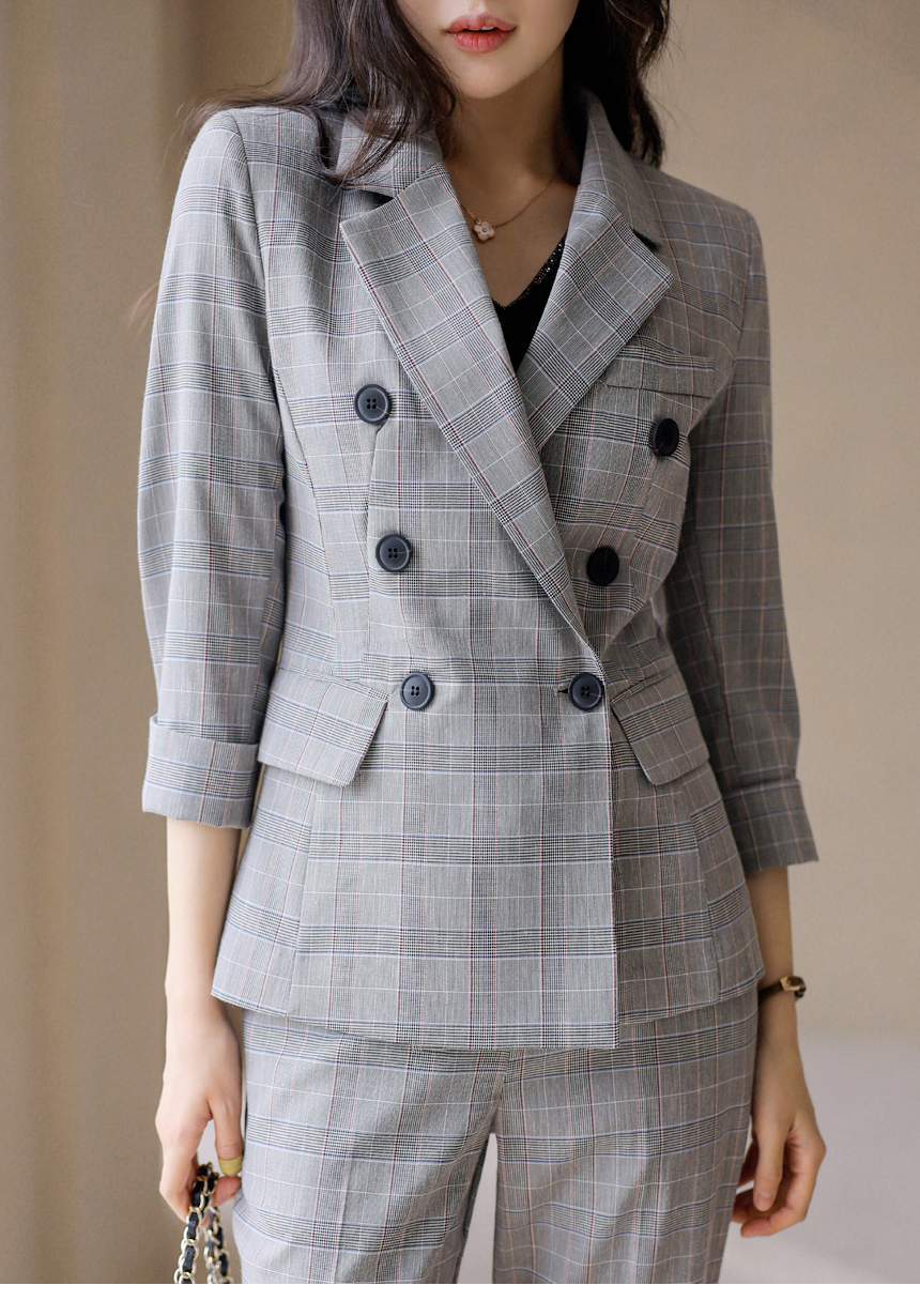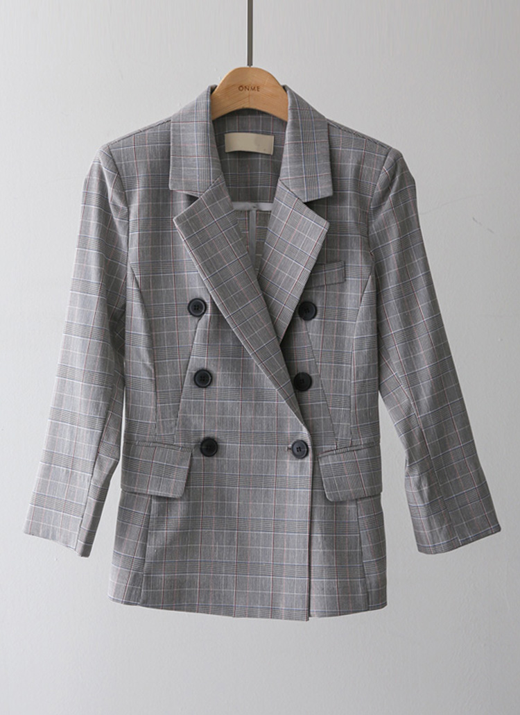 7分袖 ダブルボタン グレンチェックテーラードジャケット jk45326