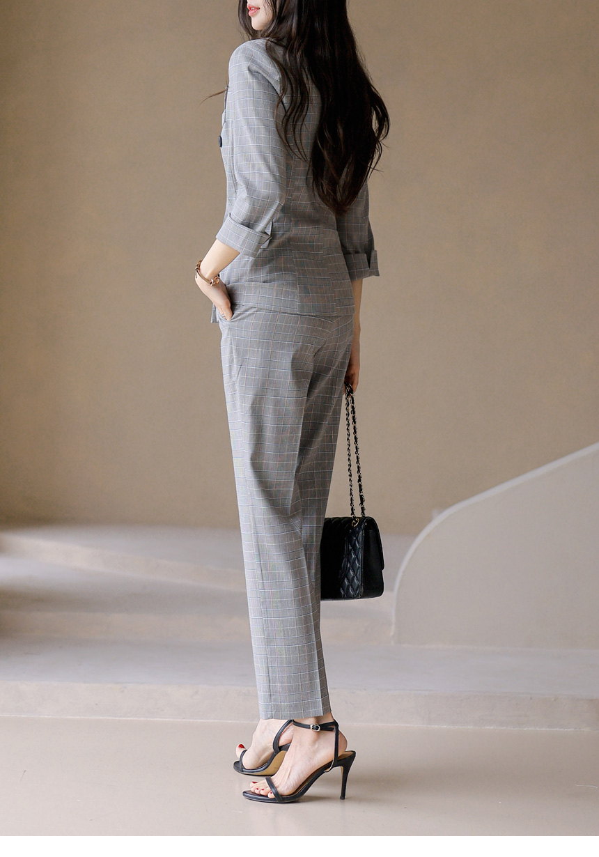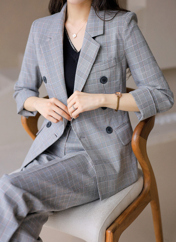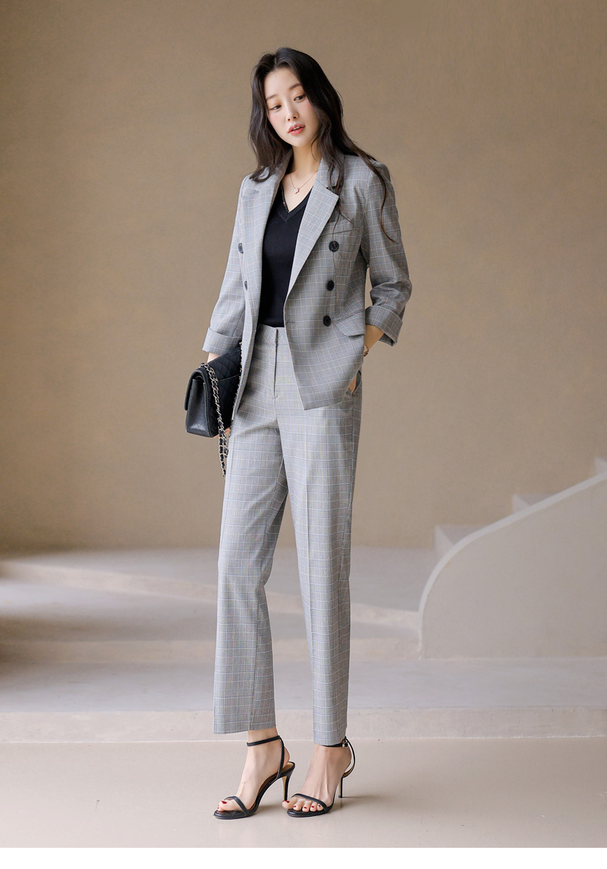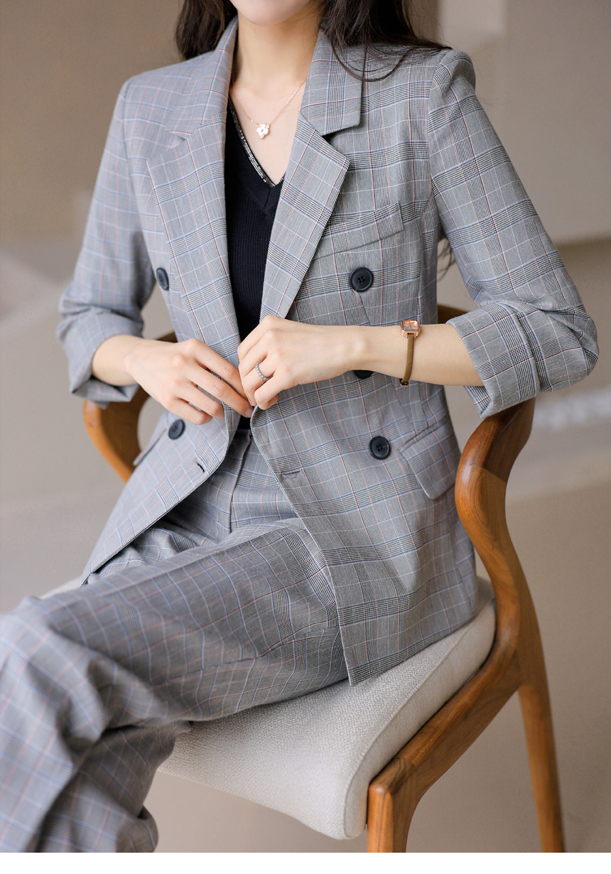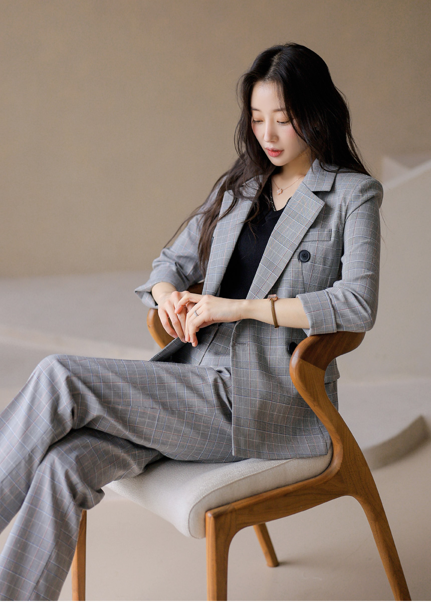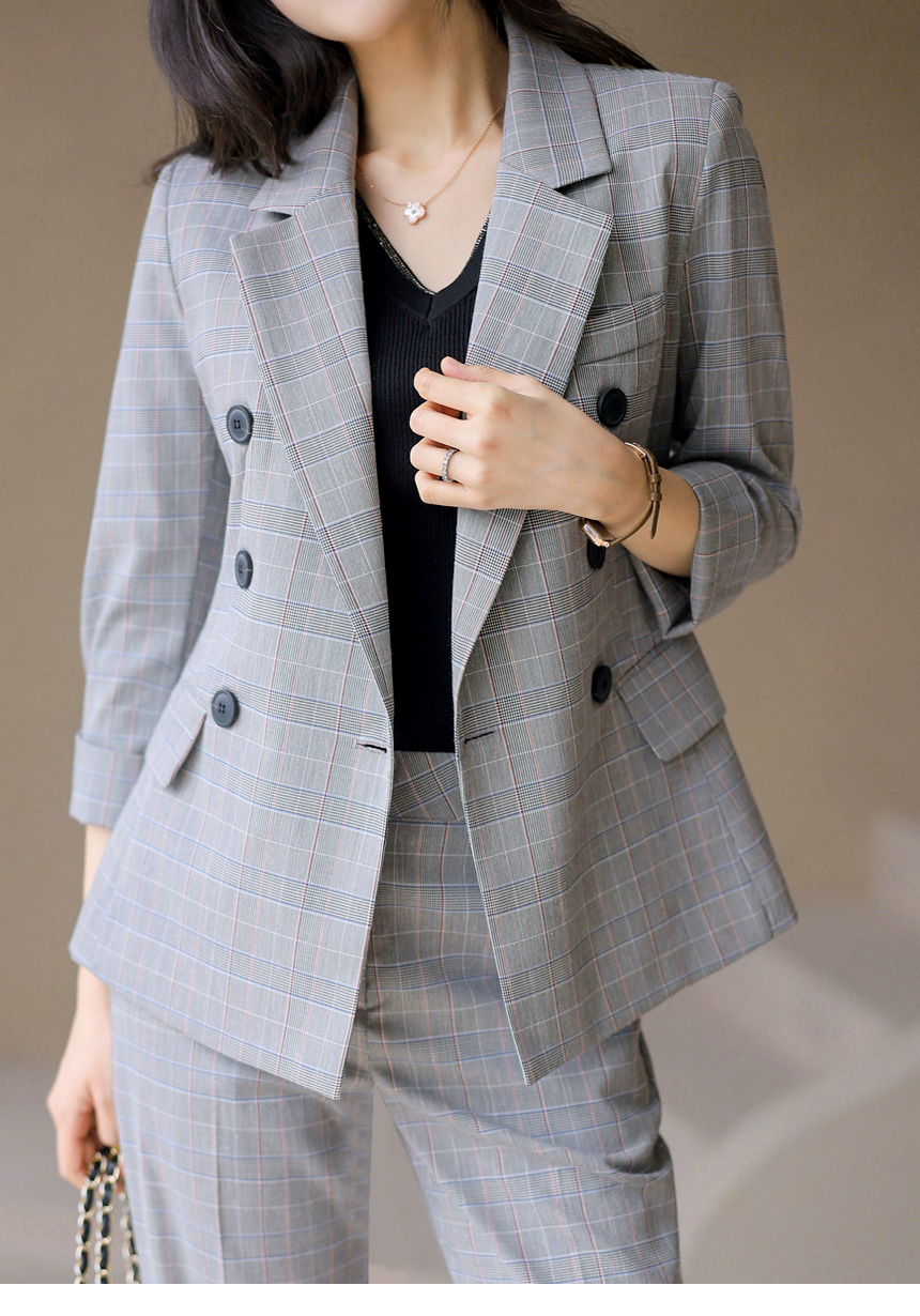 7分袖 ダブルボタン グレンチェックテーラードジャケット jk45326