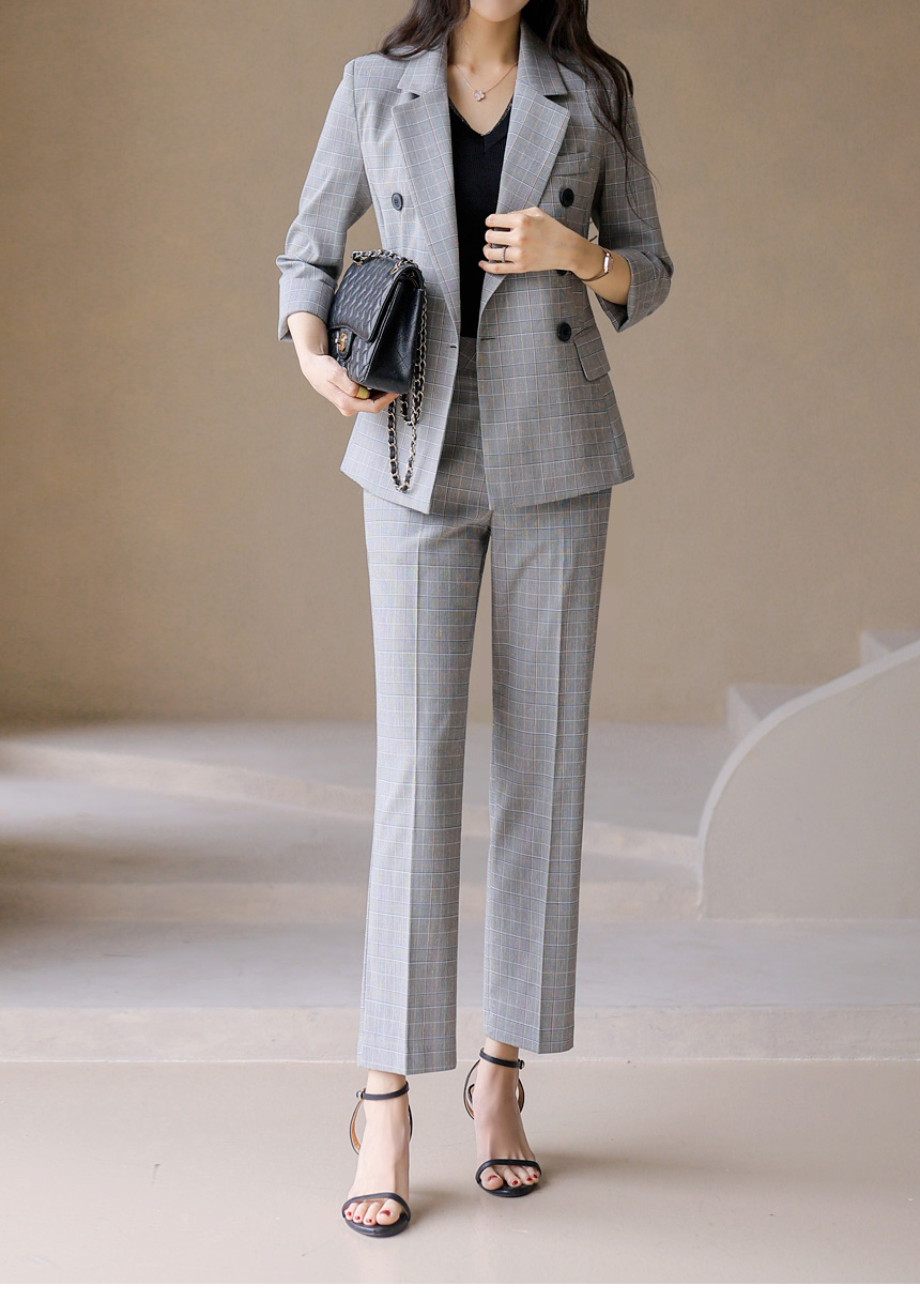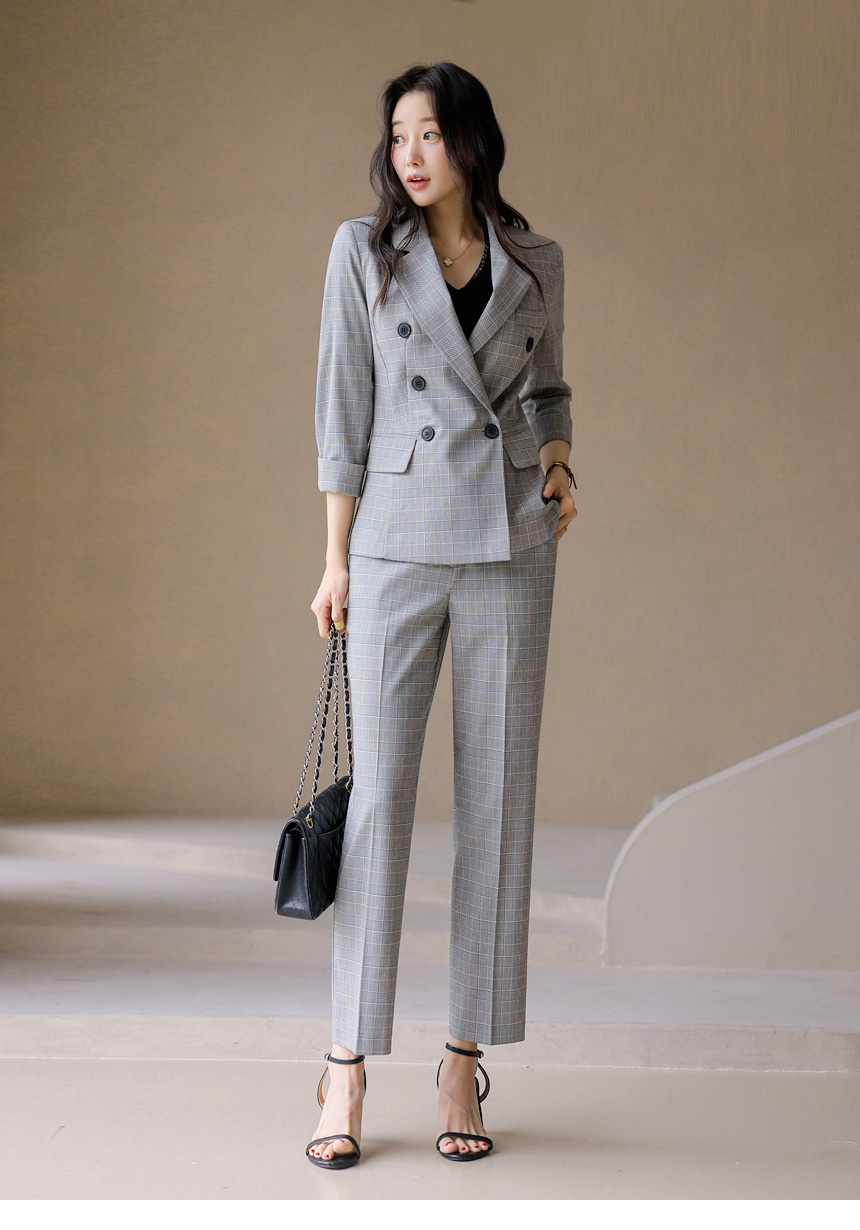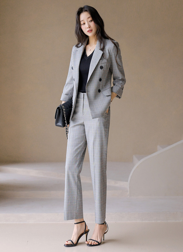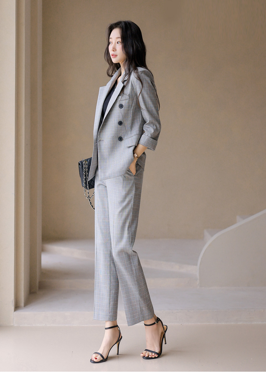• 7分袖 ダブルボタン グレンチェックテーラードジャケット jk45326