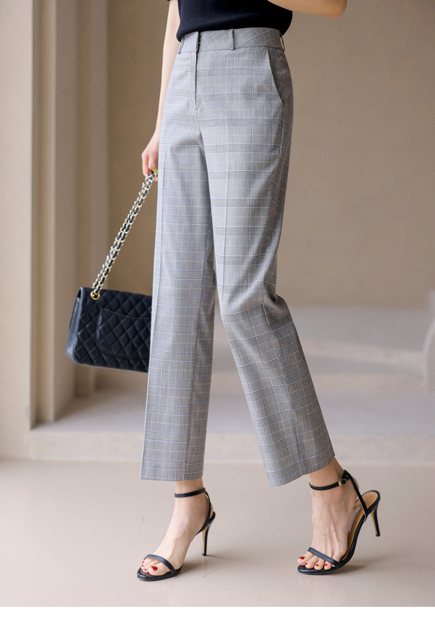 9分丈 グレンチェック スラックスパンツ pt45329