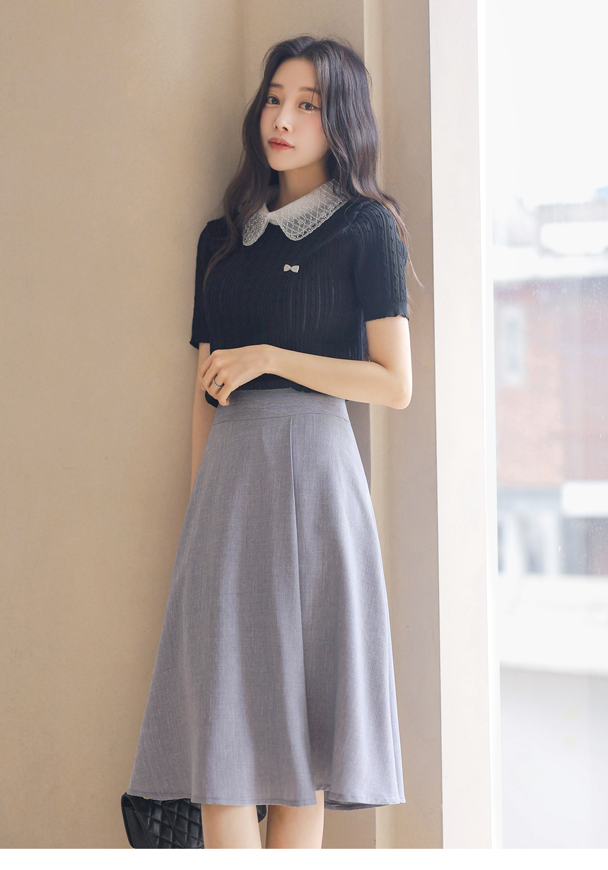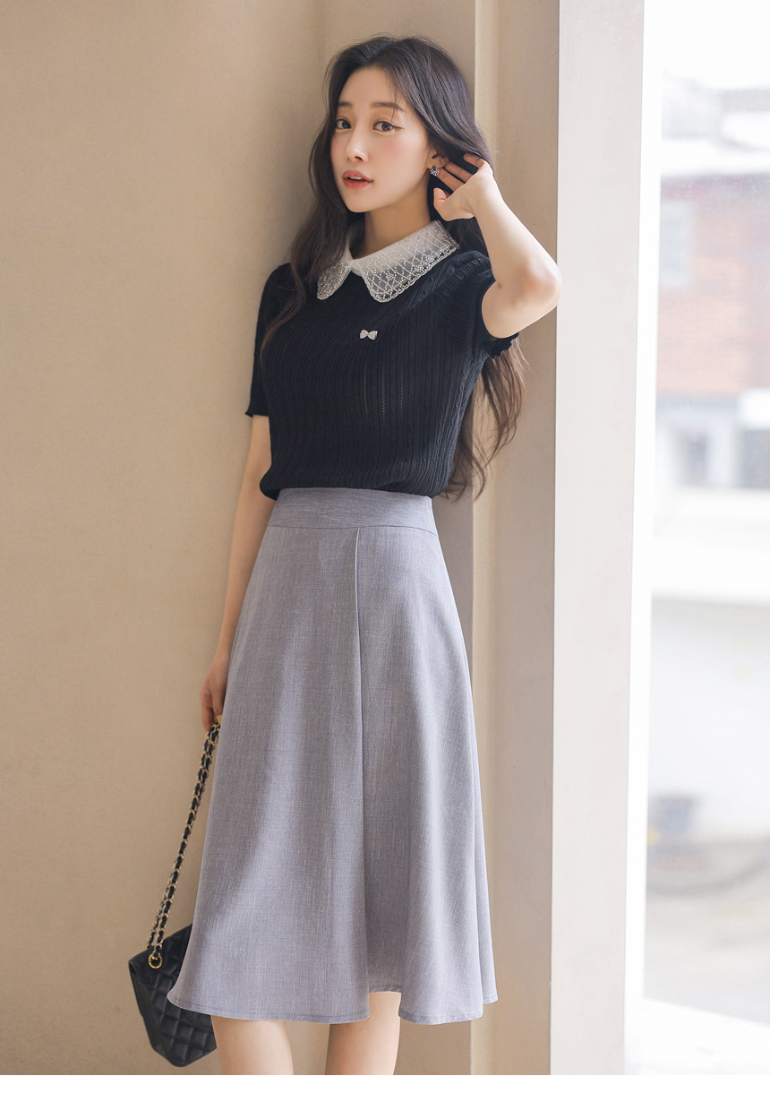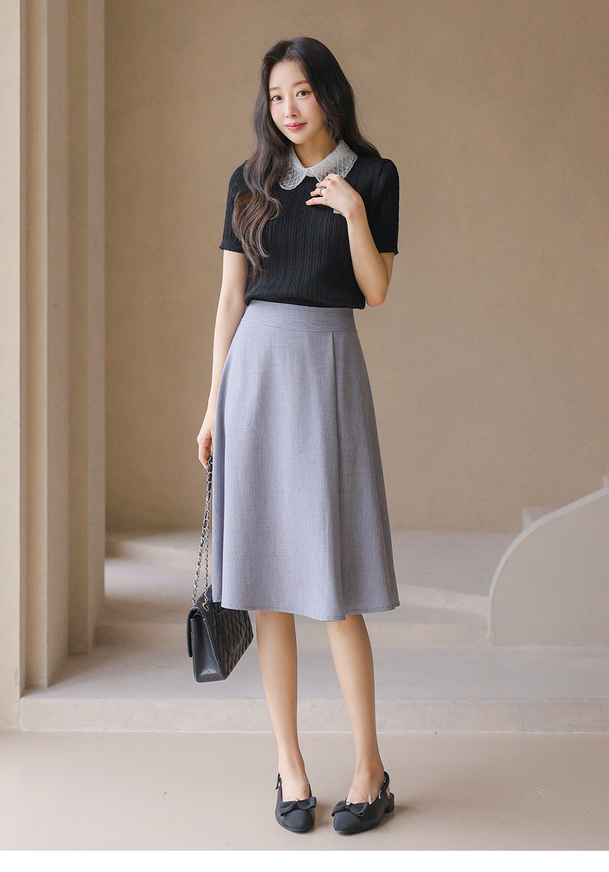 심플하면서도 우아한 분위기를 완성해주는 A라인 플레어 미디 스커트예요