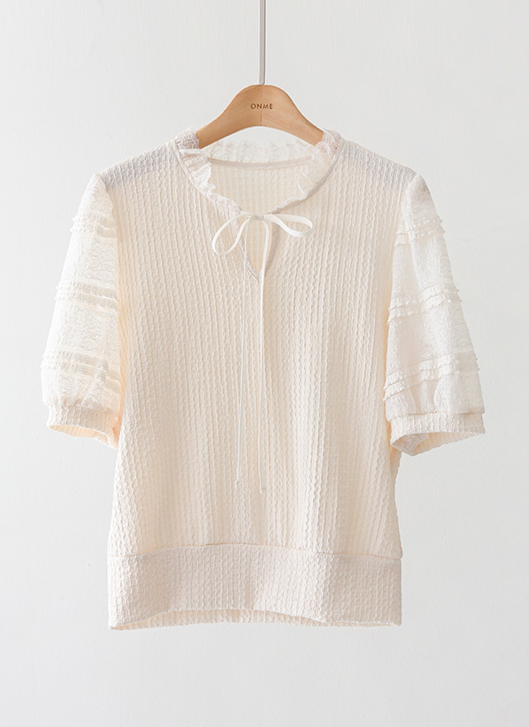 [LouisAngel] フリルリボンネック ジャガードプルオーバー bl45350