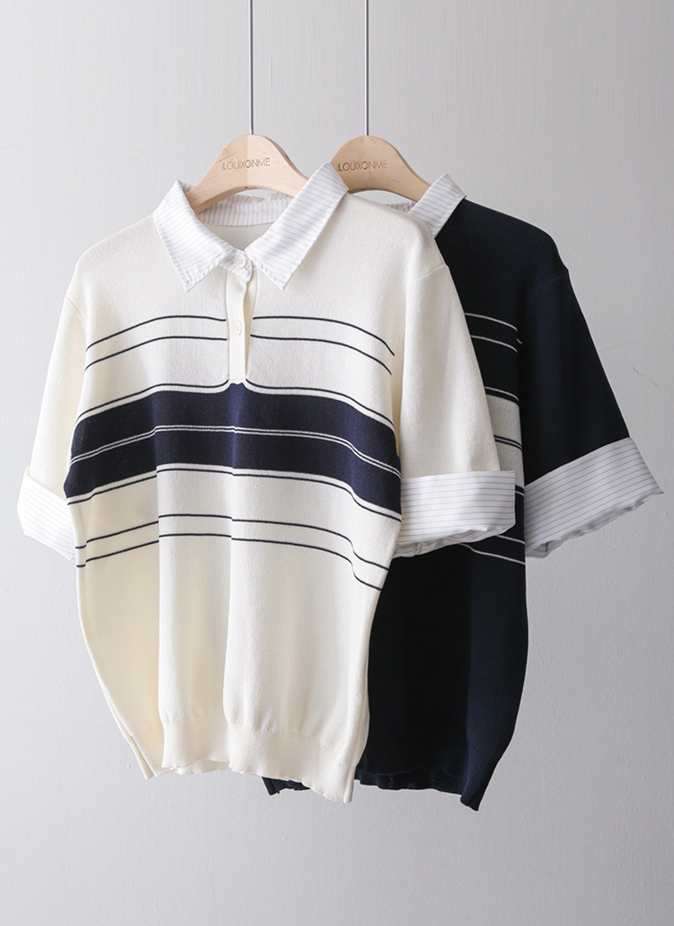 마치 셔츠와 니트를 감각적으로 레이어드한 듯