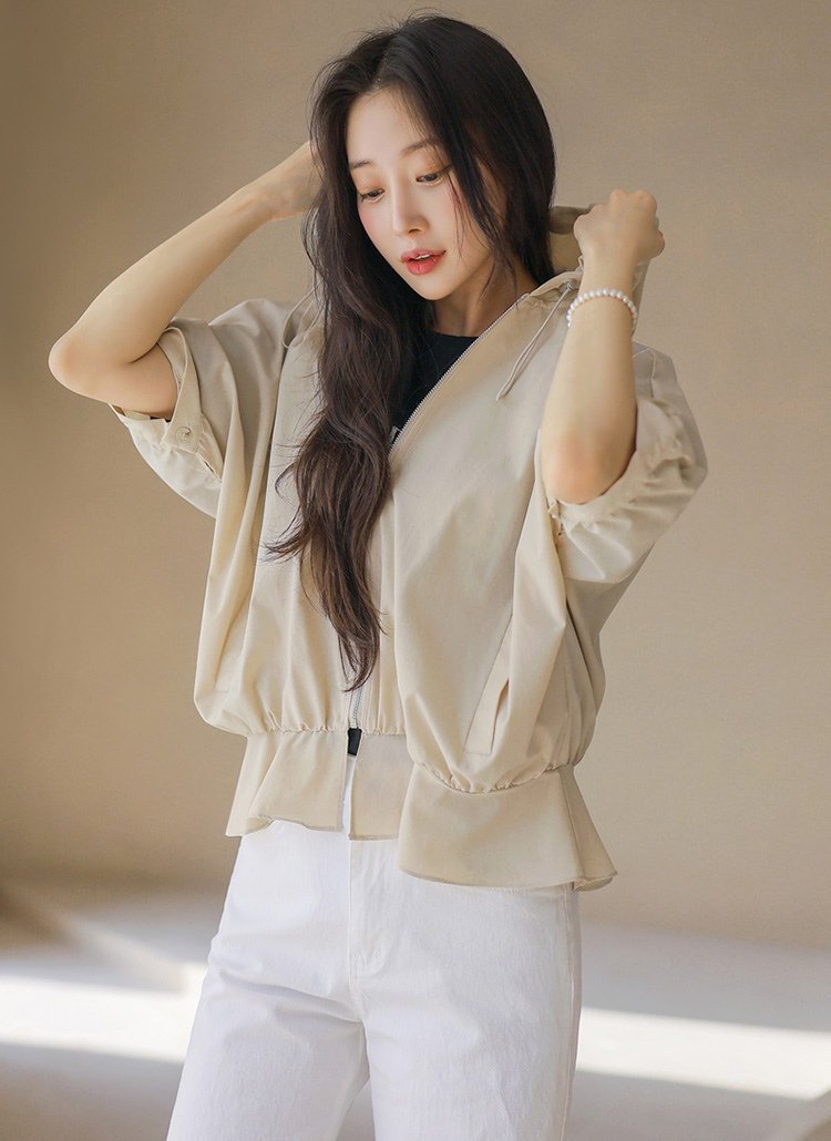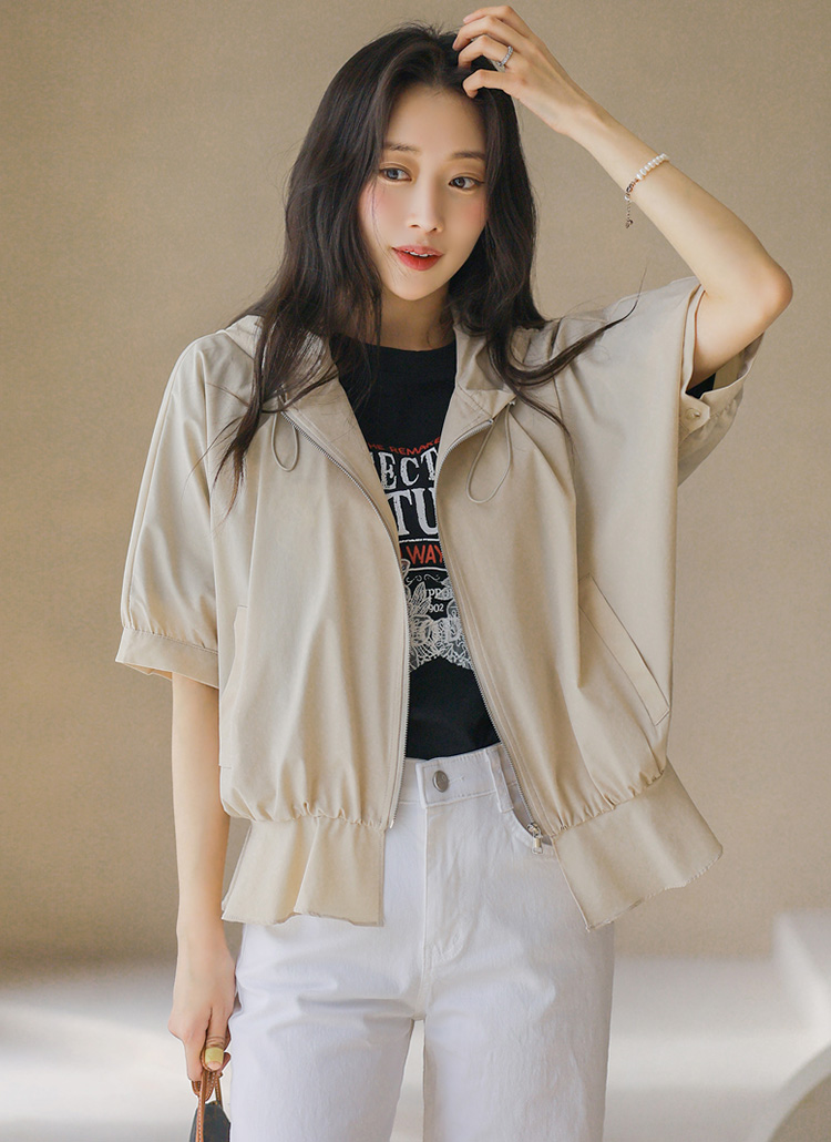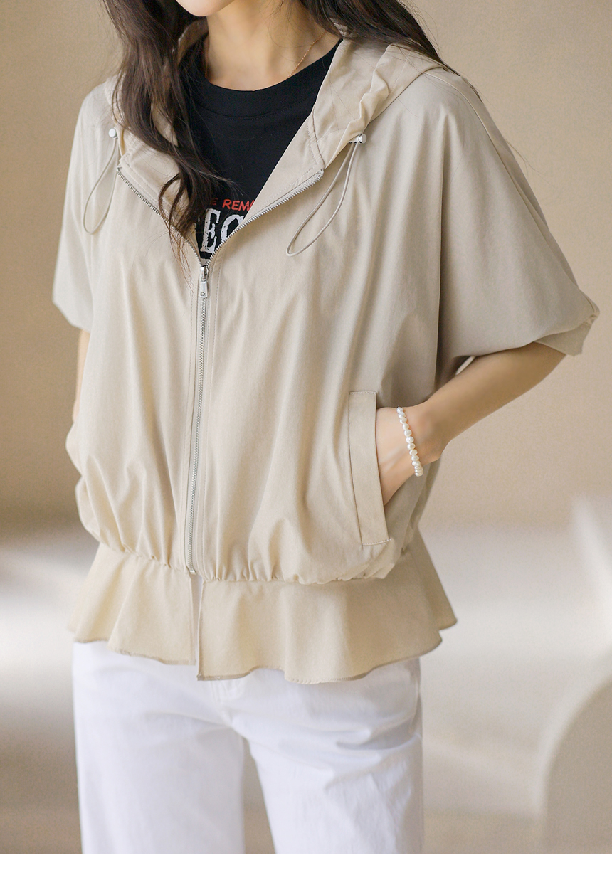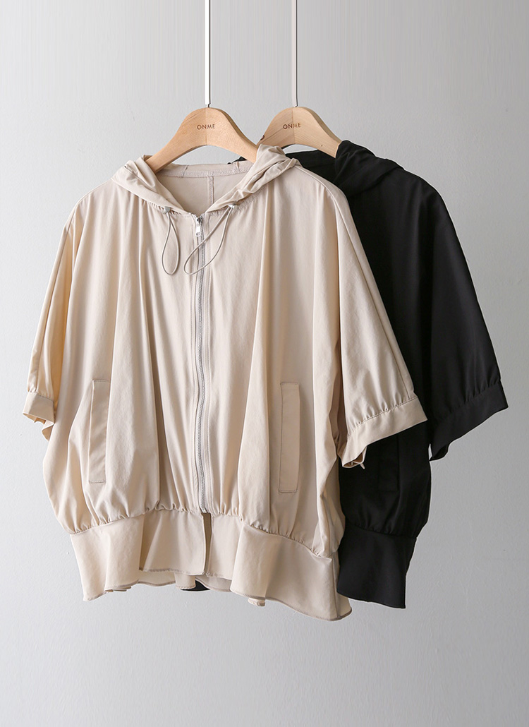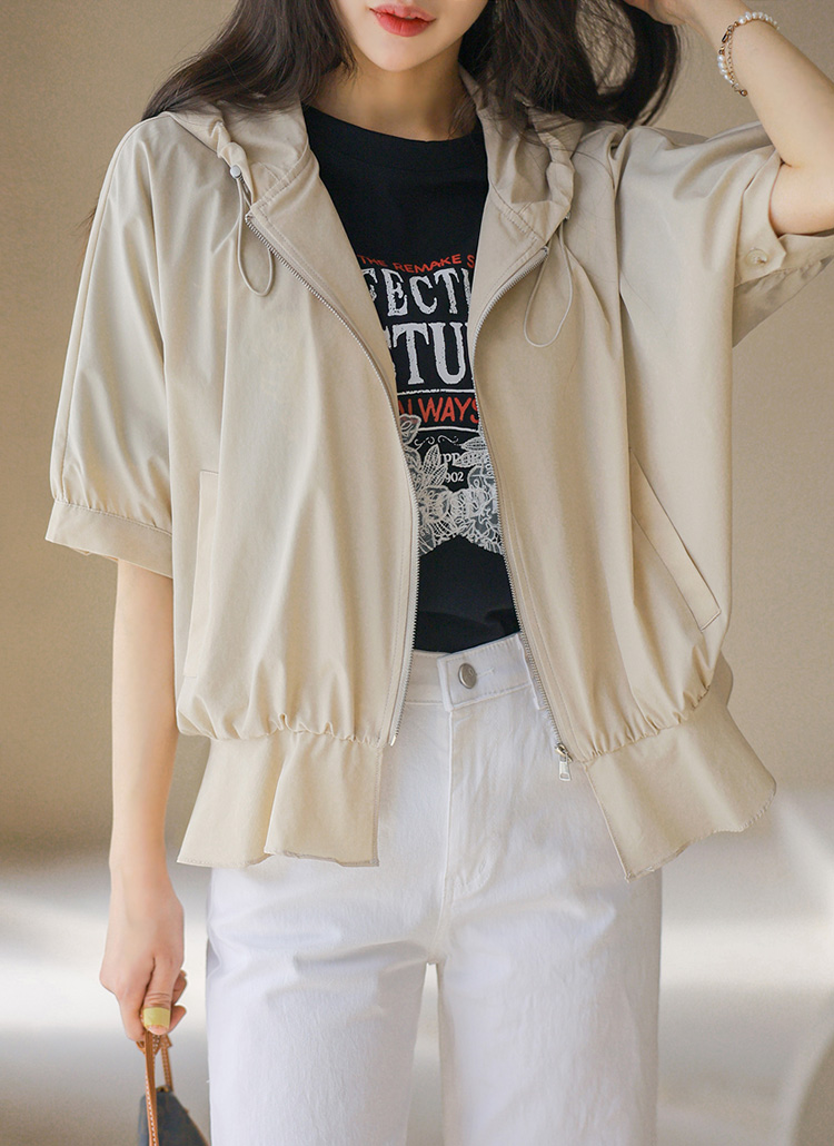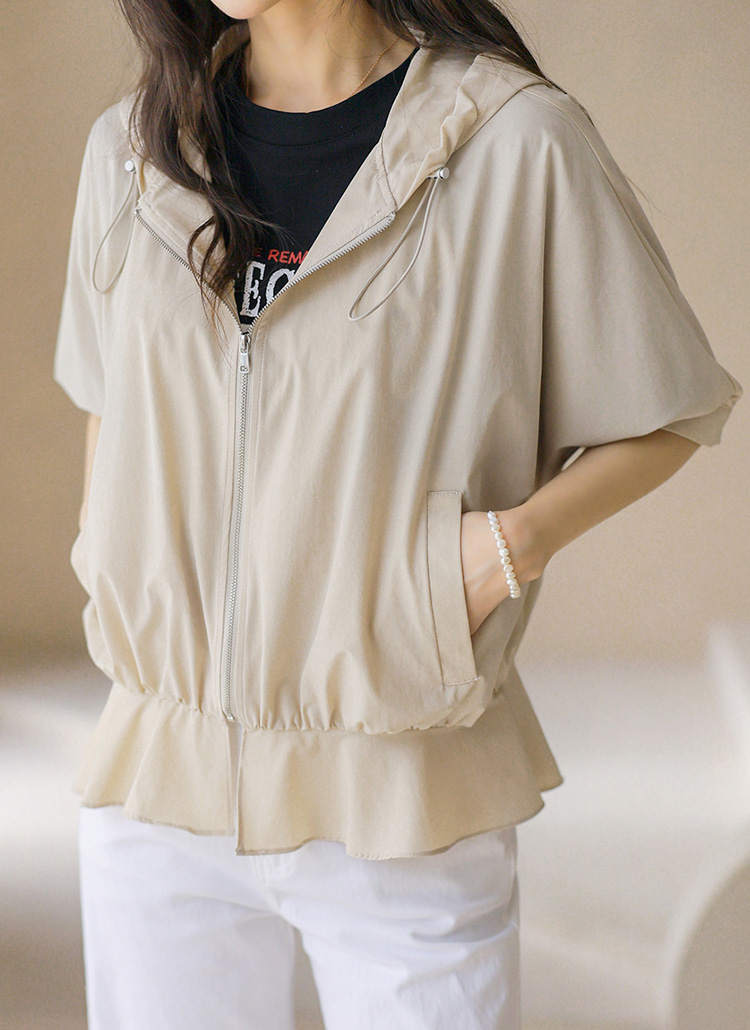 フード付き 半袖ギャザーブルゾン jp45371