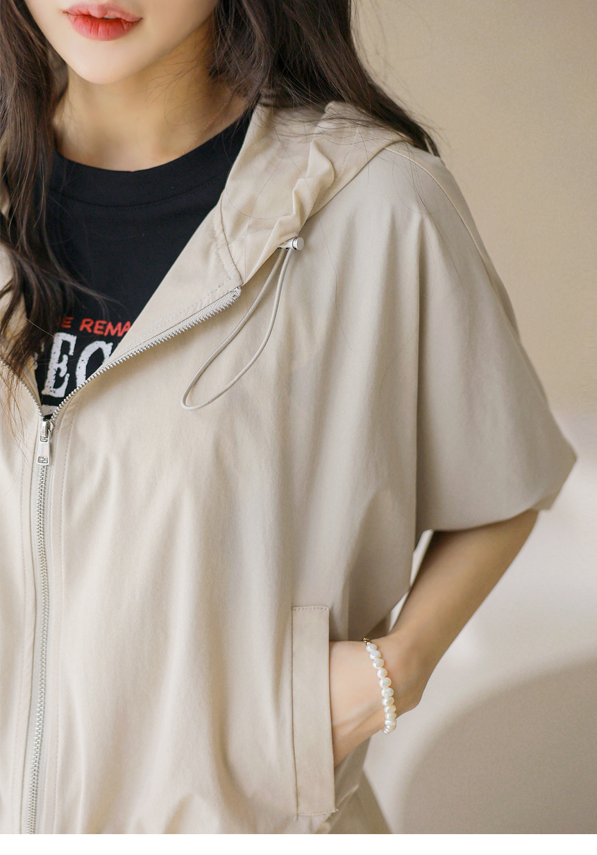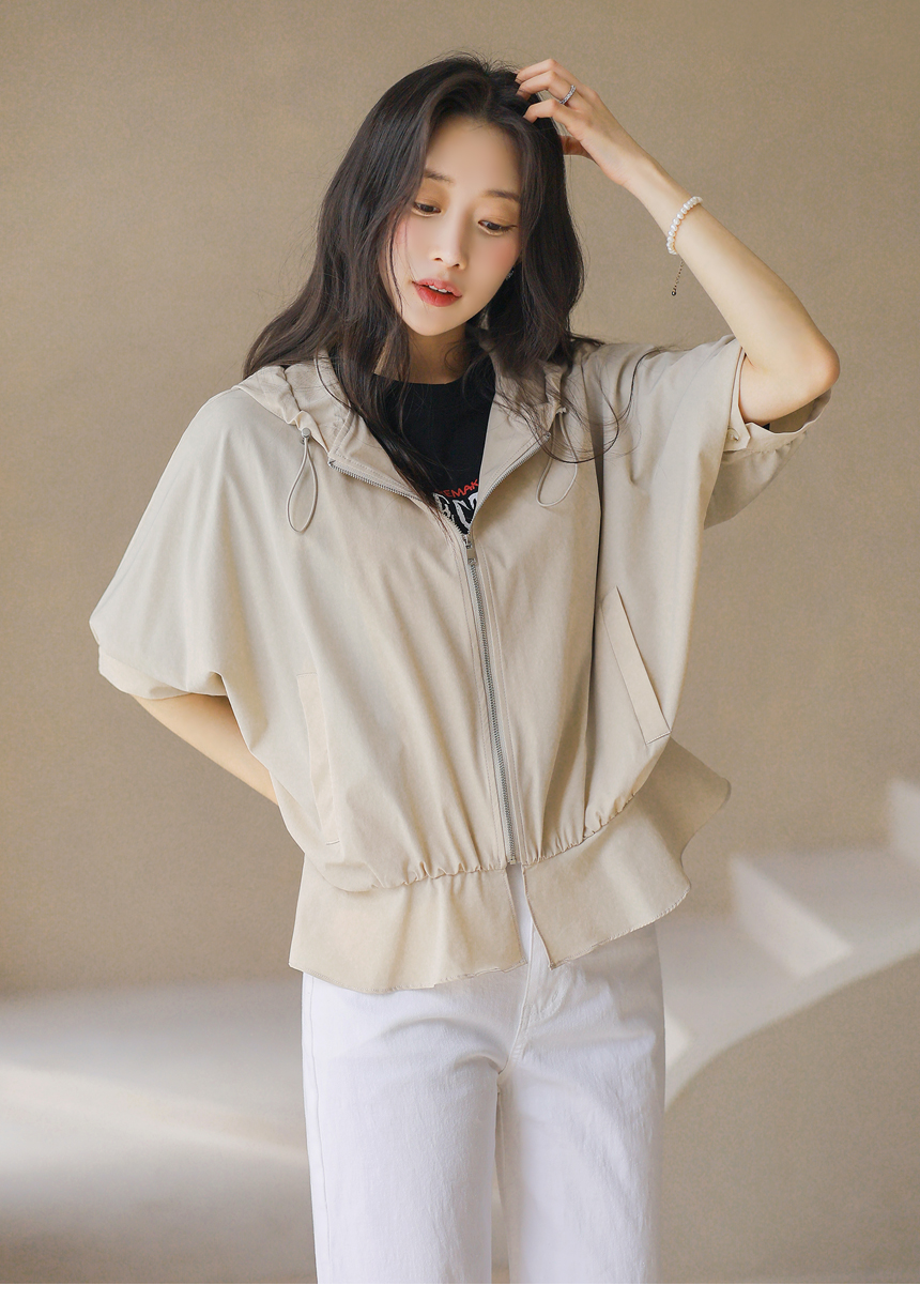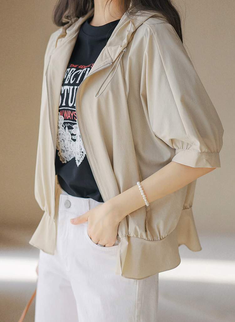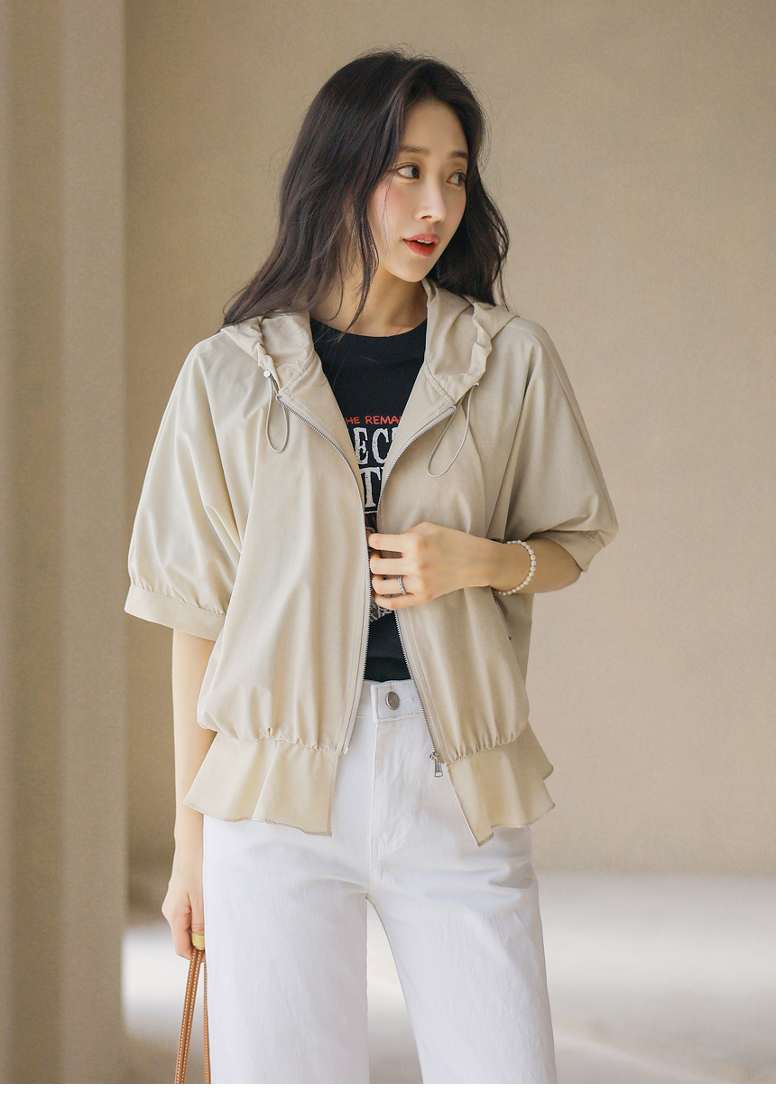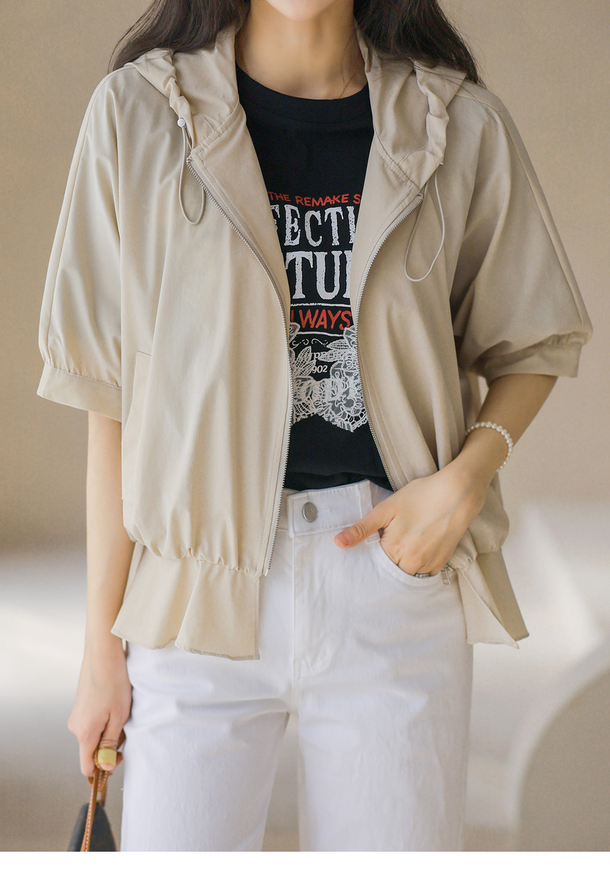 フード付き 半袖ギャザーブルゾン jp45371