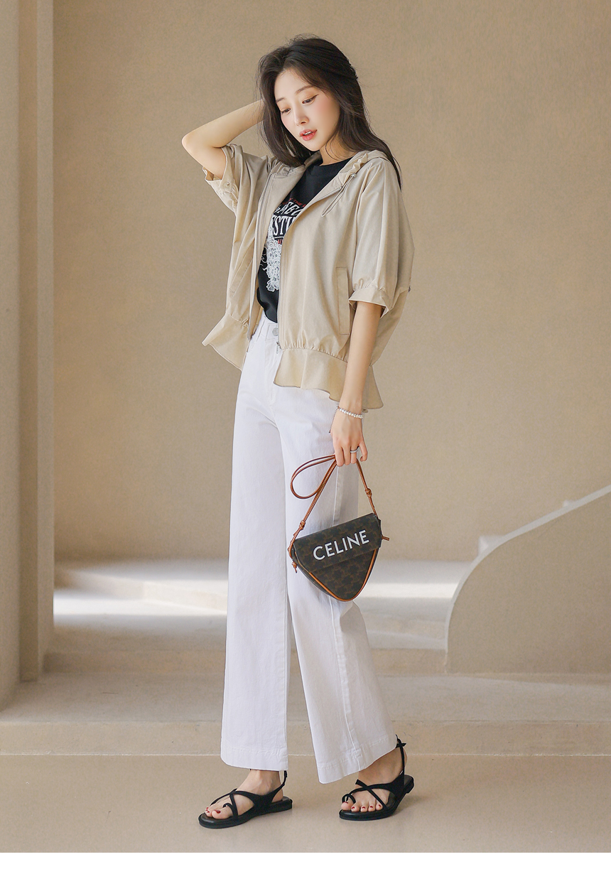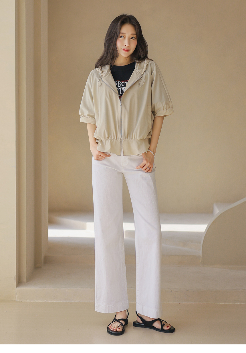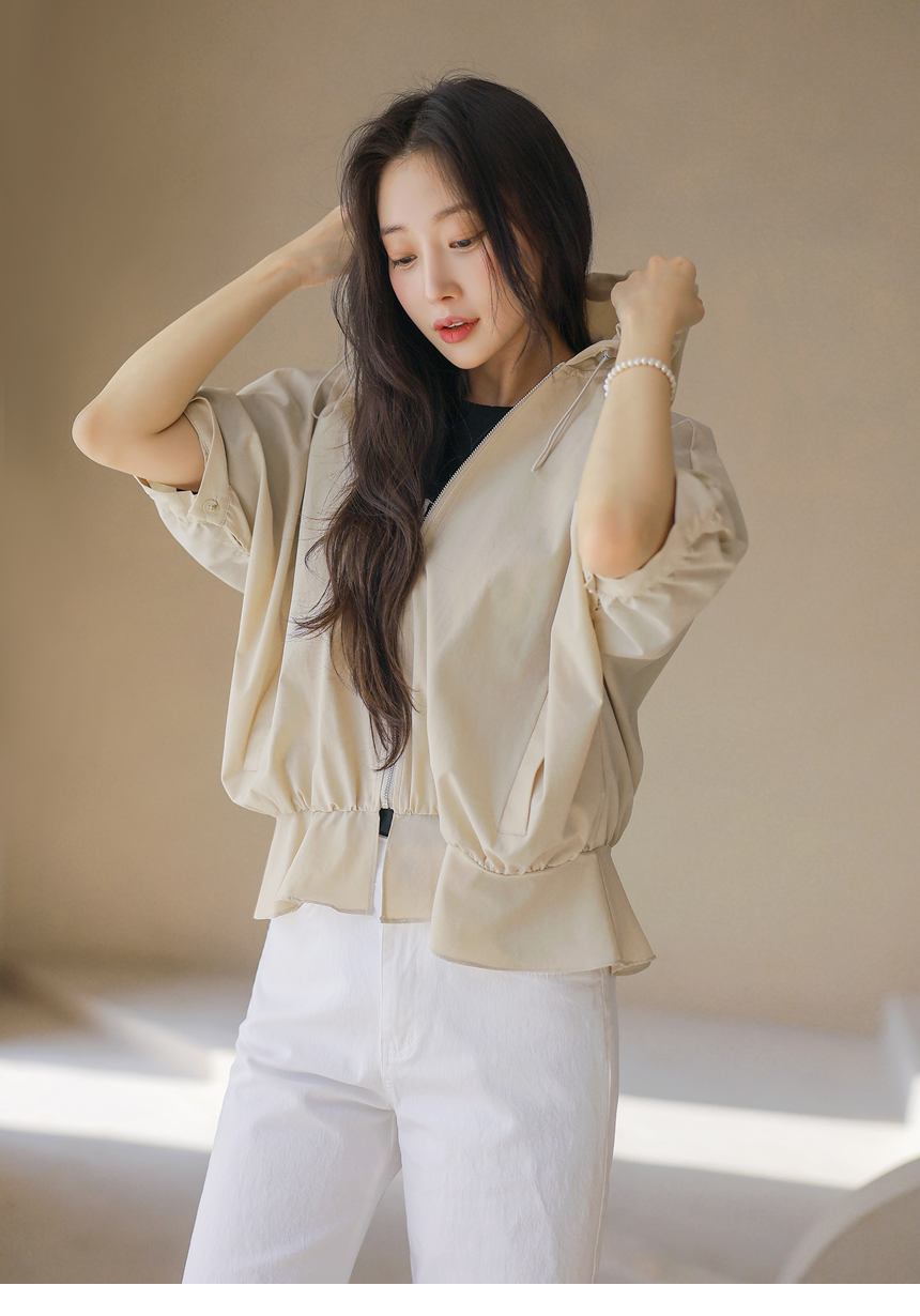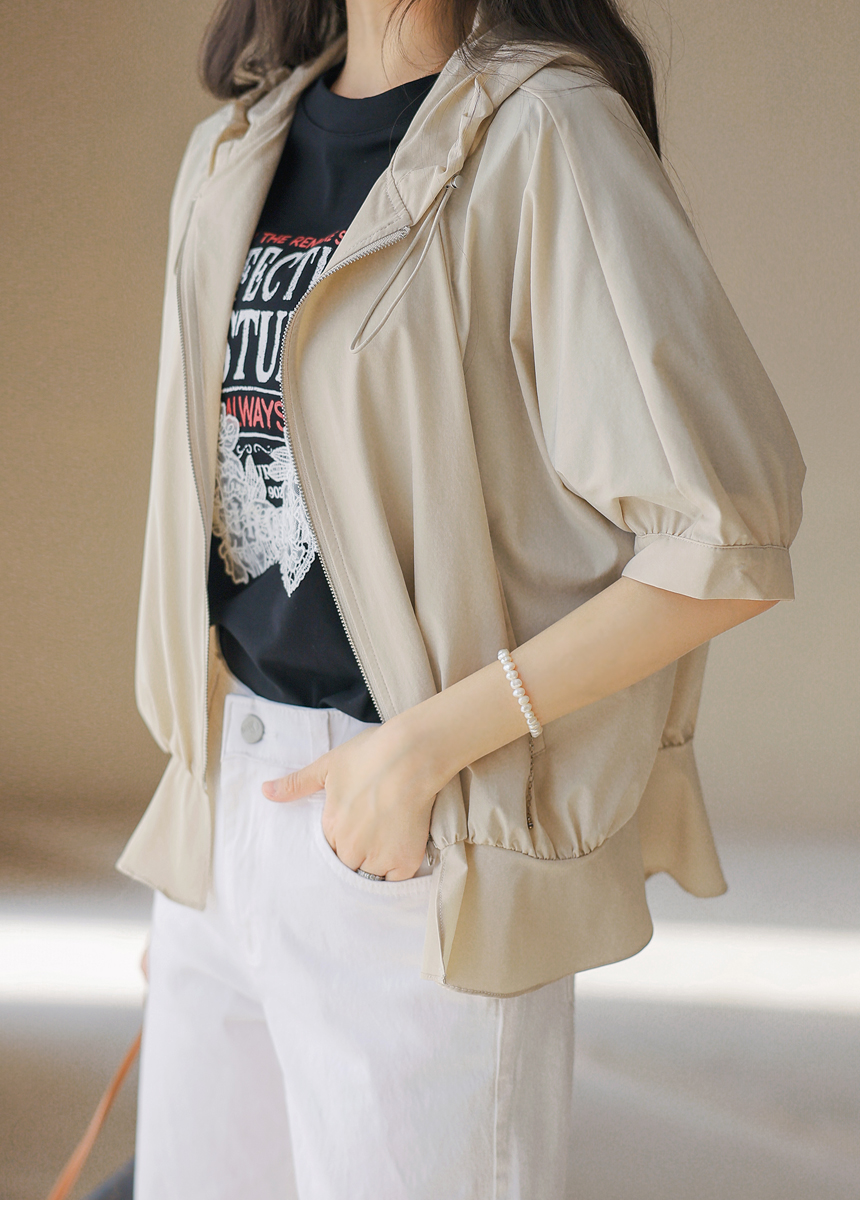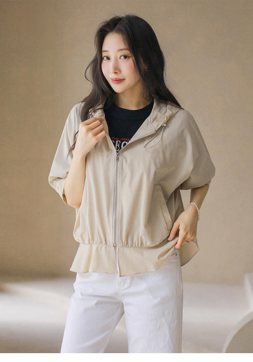 フード付き 半袖ギャザーブルゾン jp45371