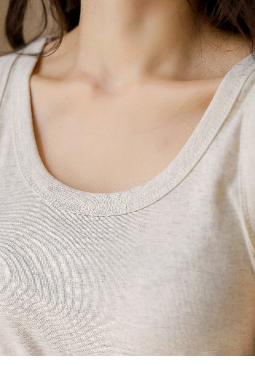 부드러운 면 100% 소재로 피부에 자극 없이 편안하게 착용되는 나시 티예요