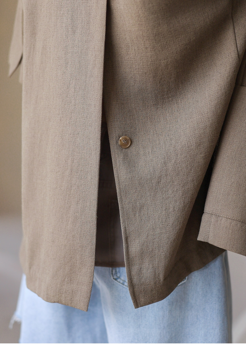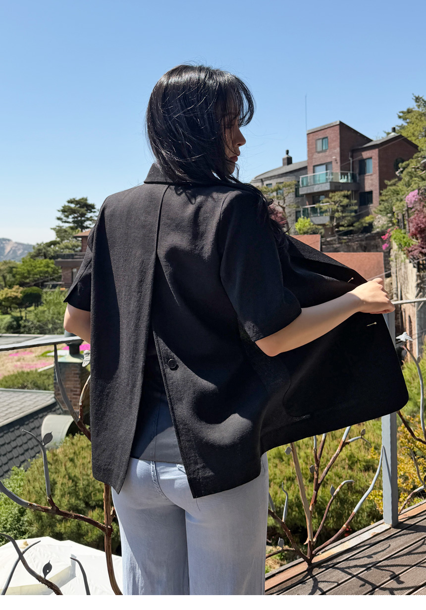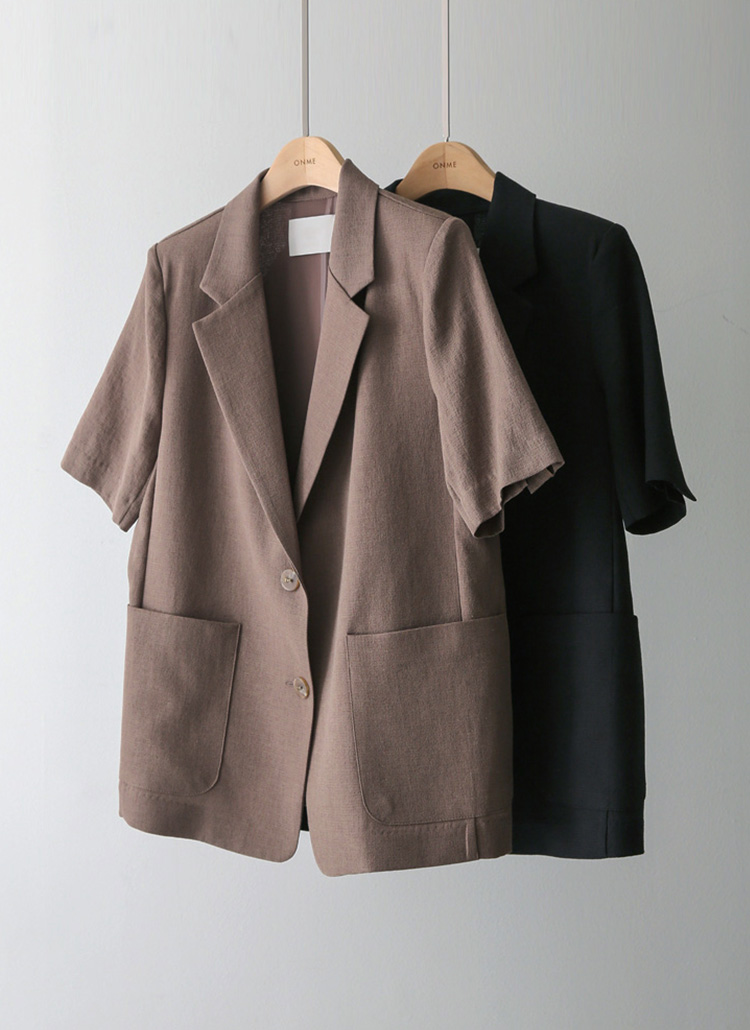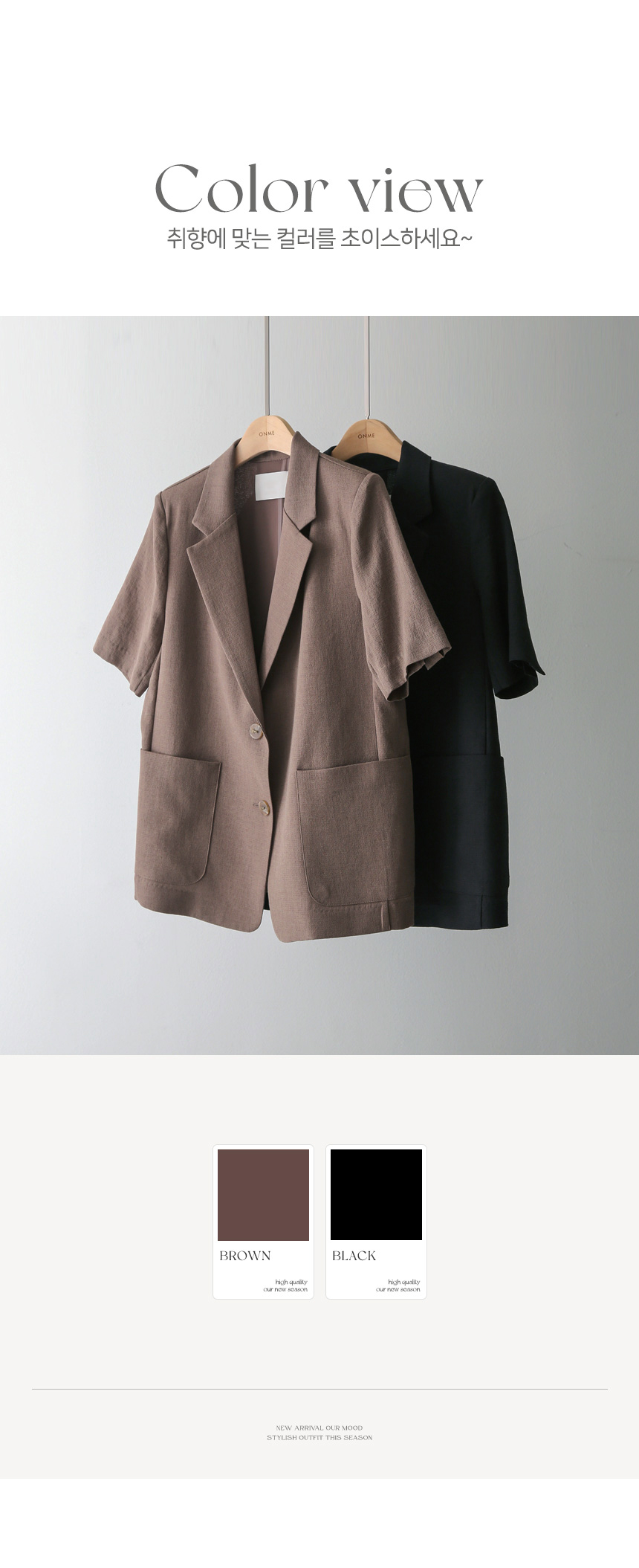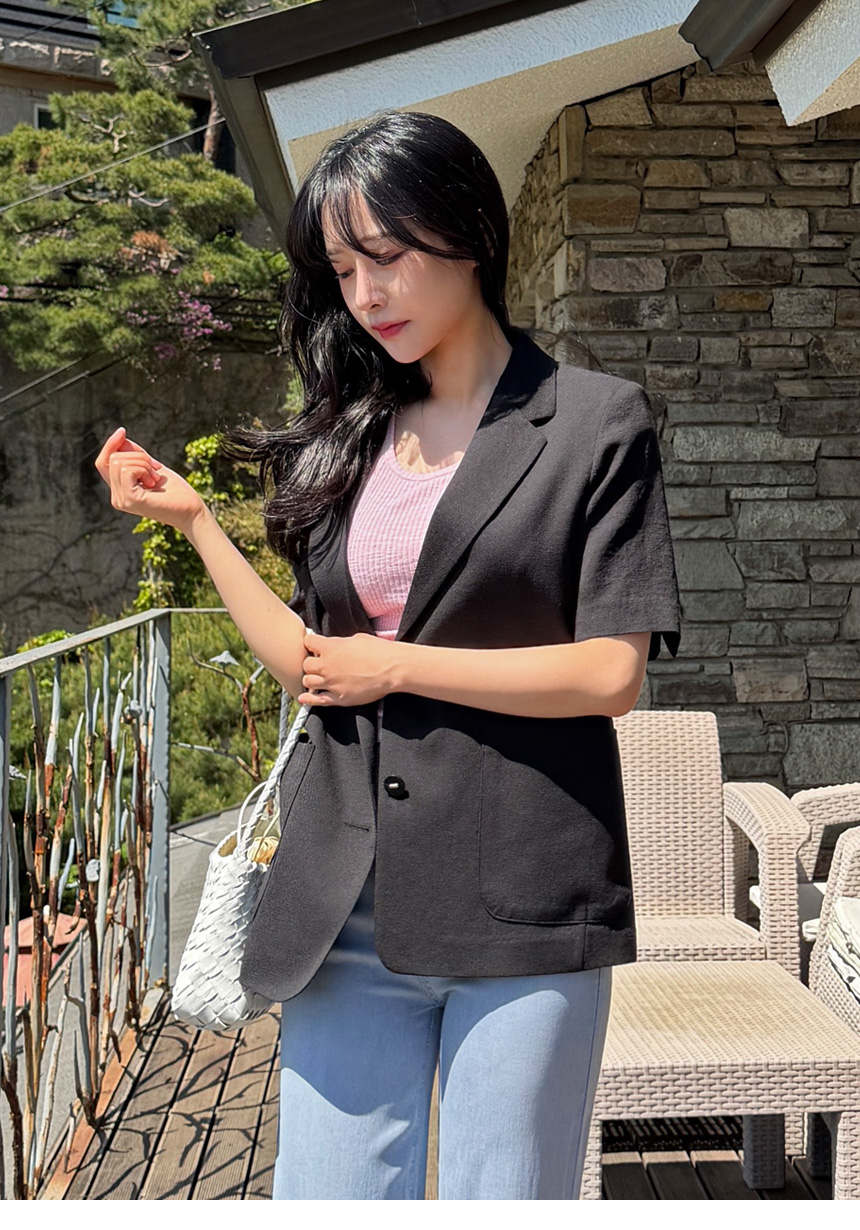 린넨 소재 특유의 내추럴한 결감으로 시원하고 쾌적하게 착용되는 반팔 자켓이에요