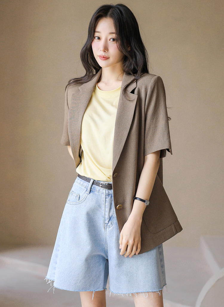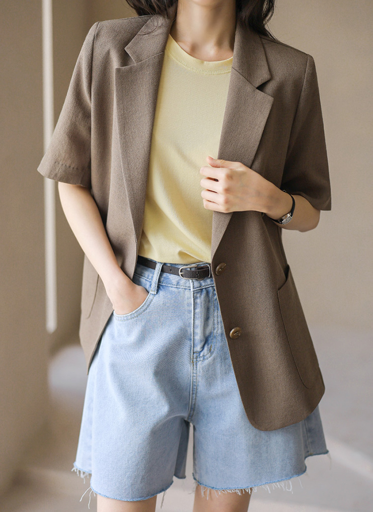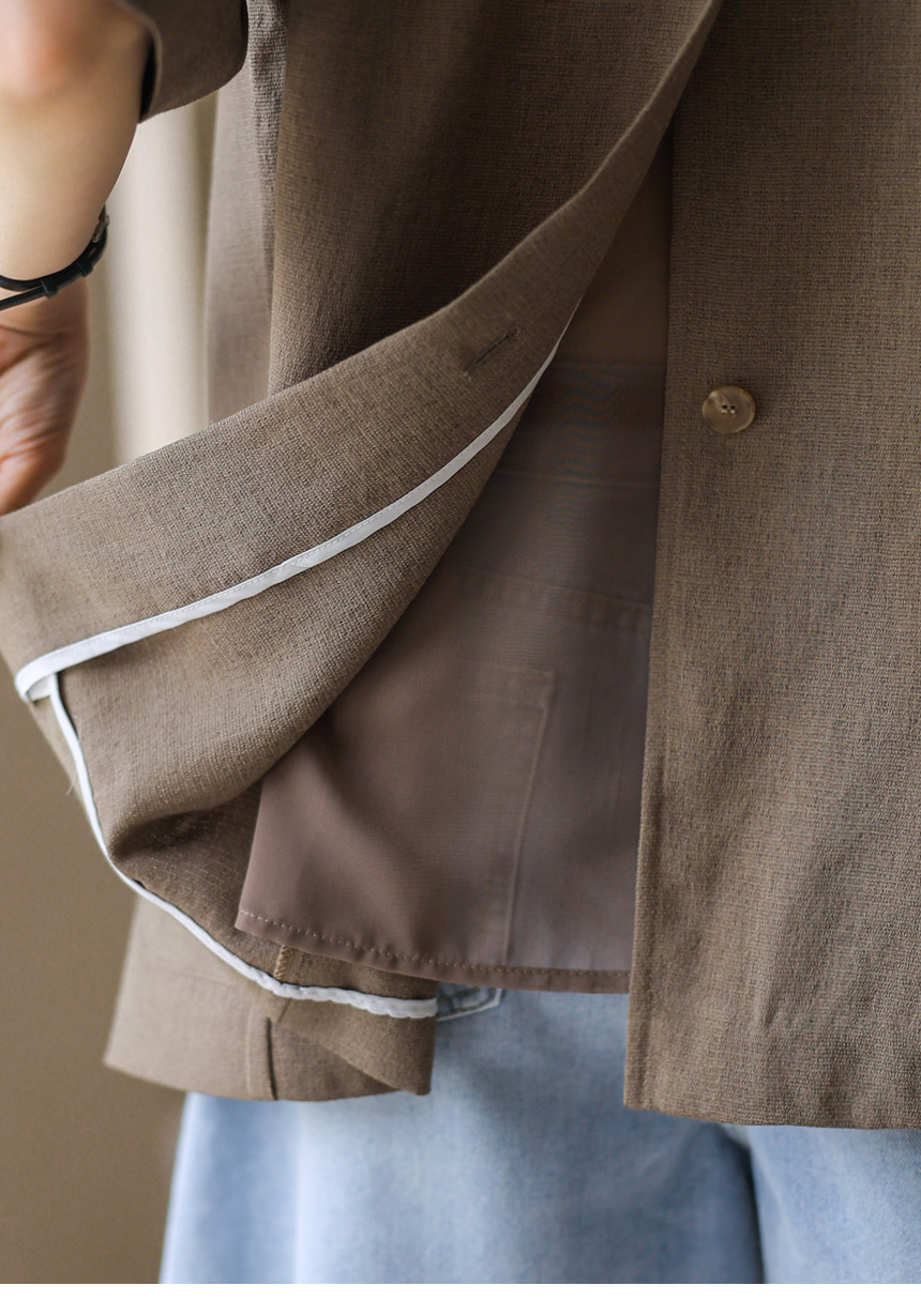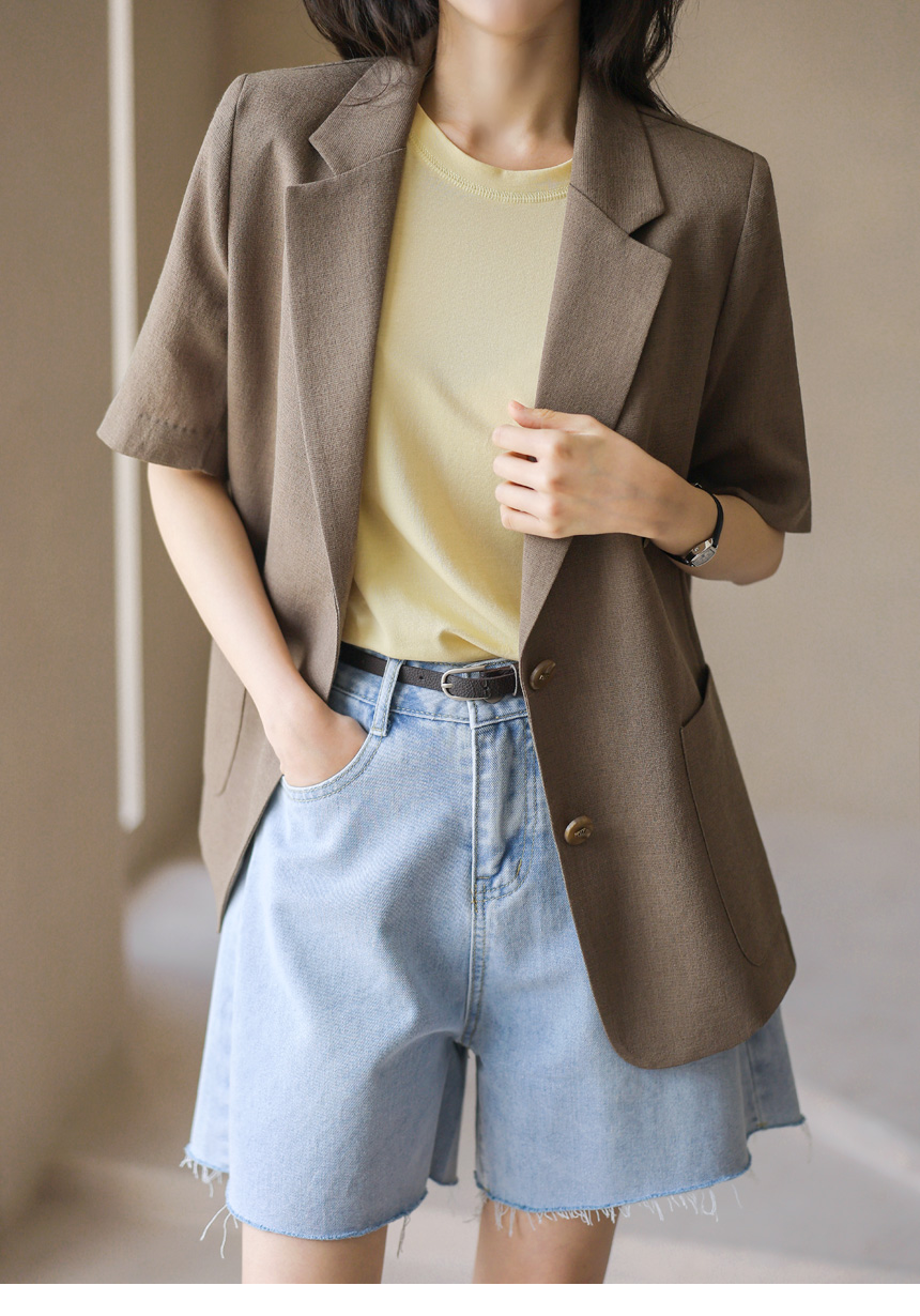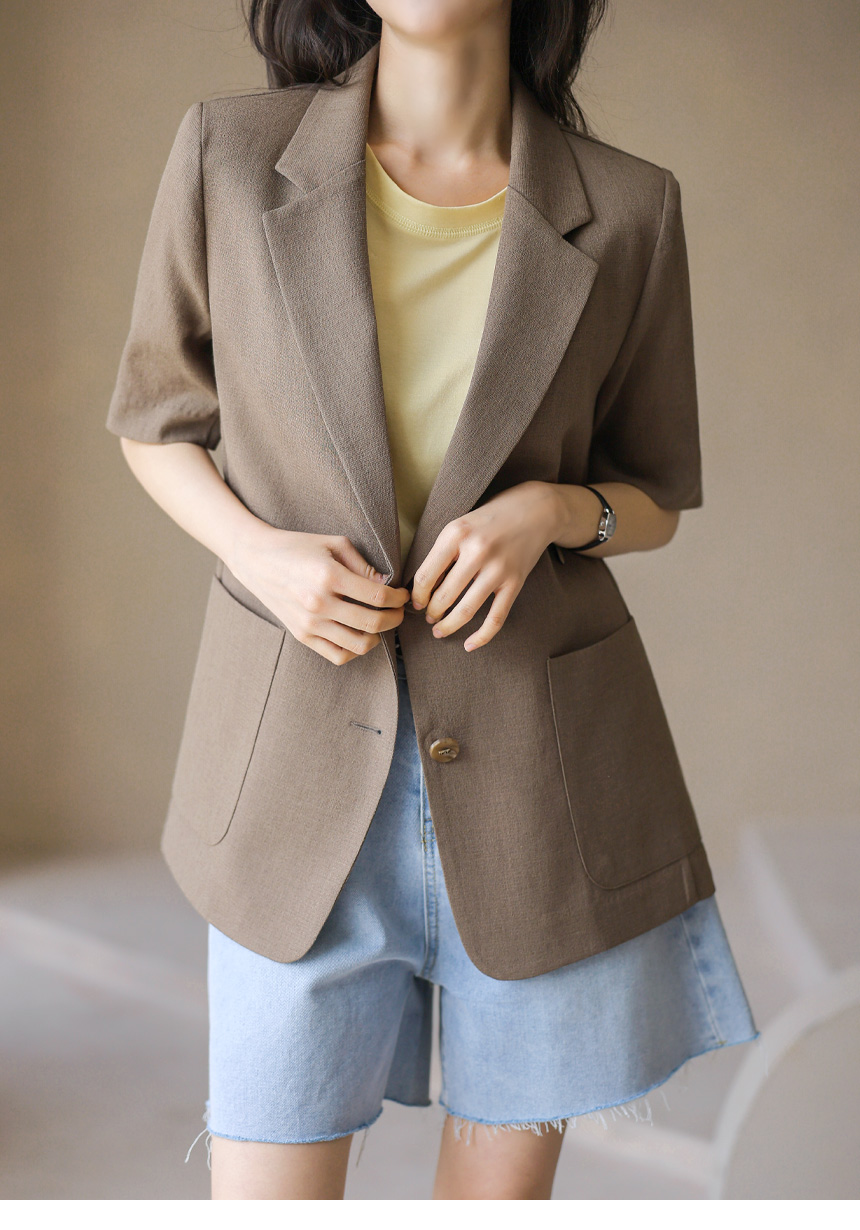 린넨 소재 특유의 내추럴한 결감으로 시원하고 쾌적하게 착용되는 반팔 자켓이에요