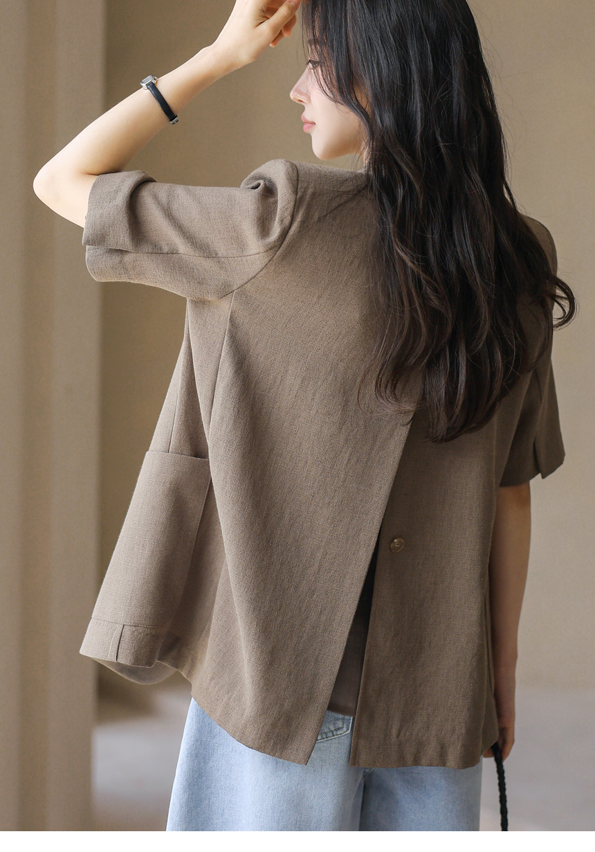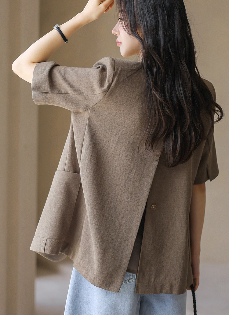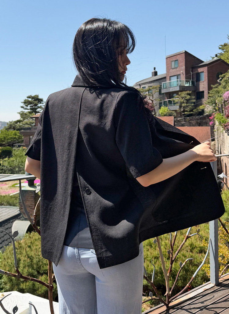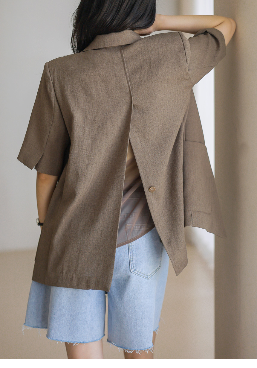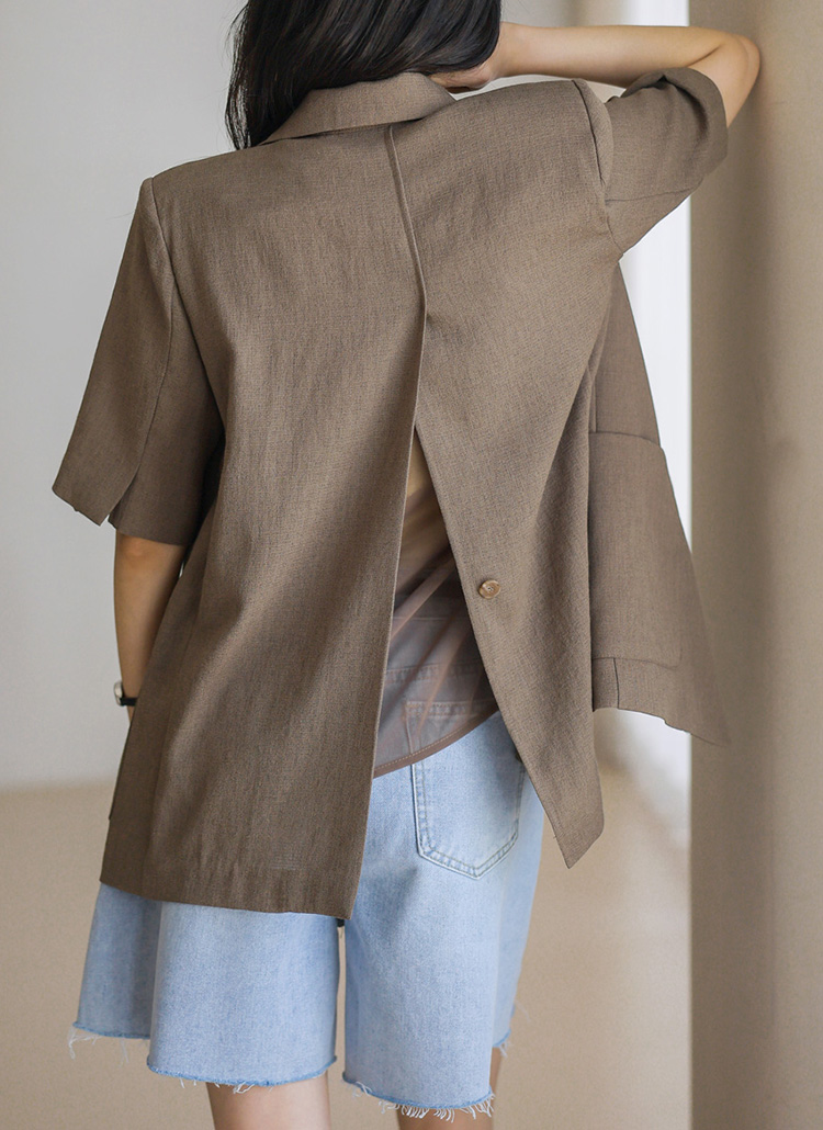 [THEONME] バックスリット 半袖 リネンブレンド ジャケット jk45383