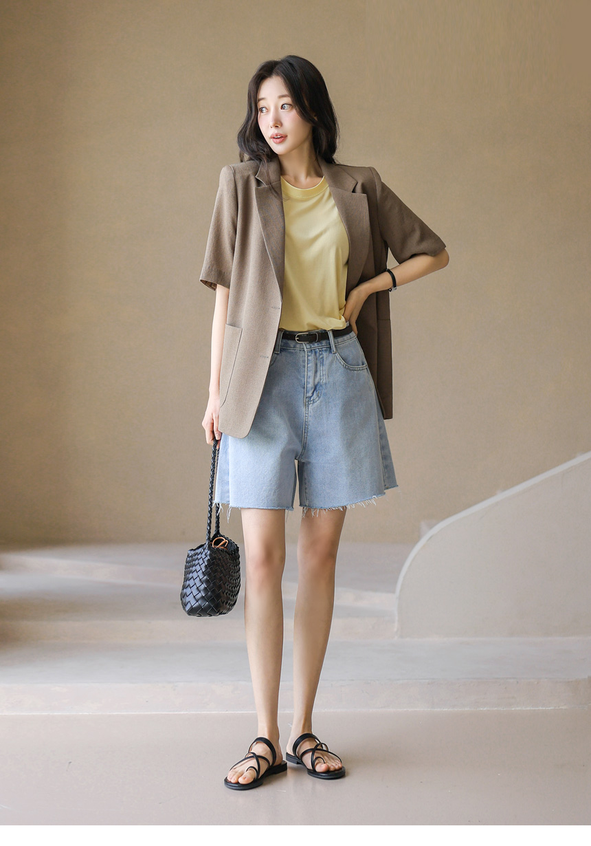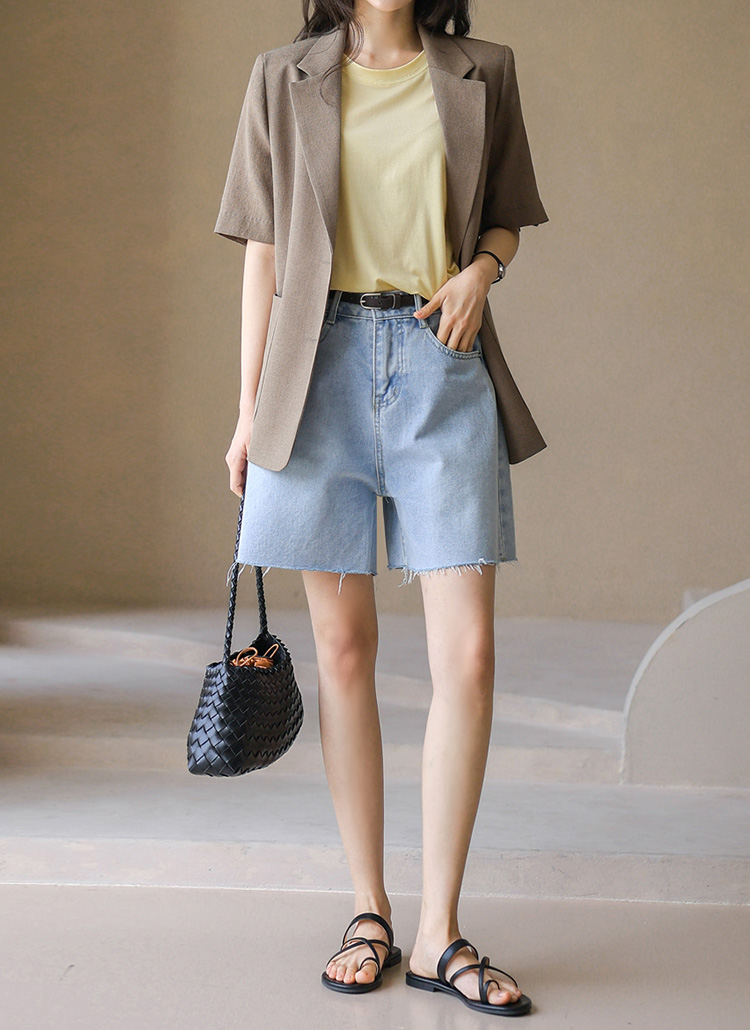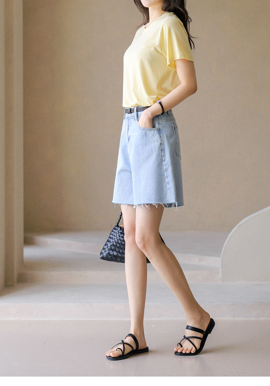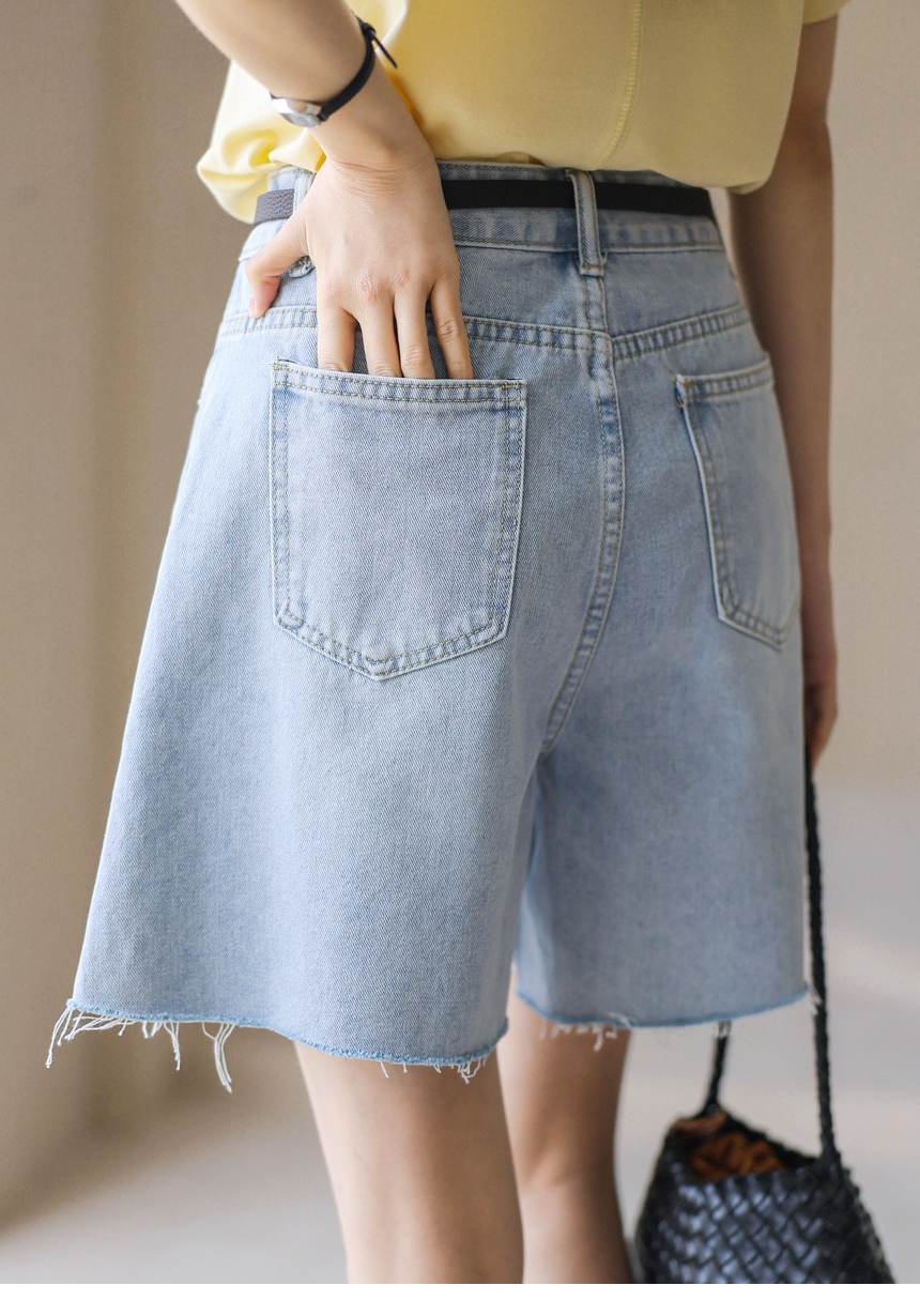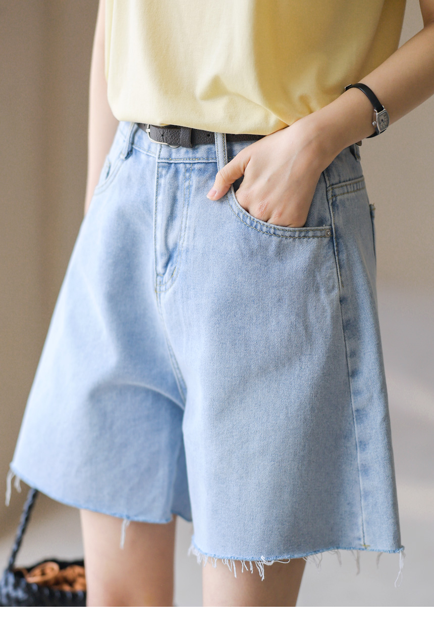 가벼운 데님 소재로 여름에도 부담 없이 착용되는 5부 반바지 팬츠예요