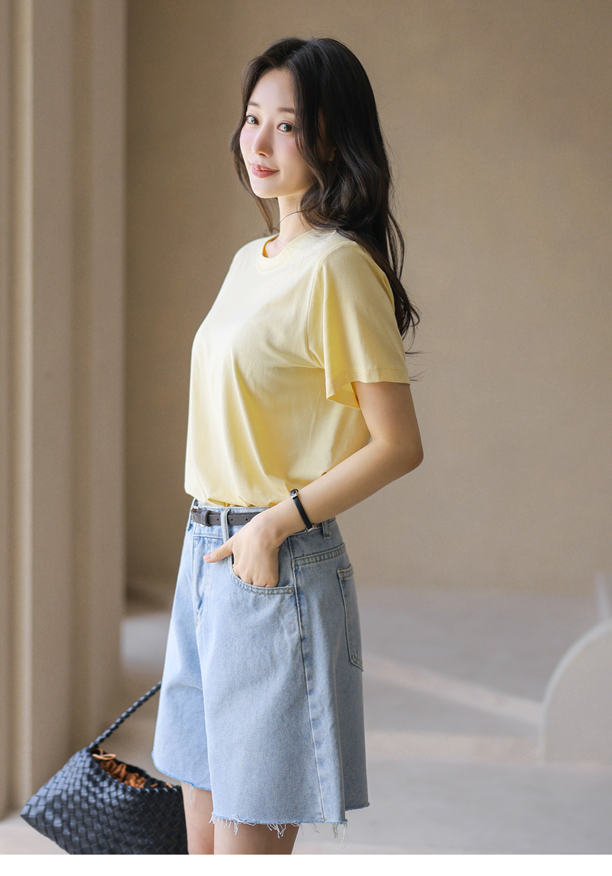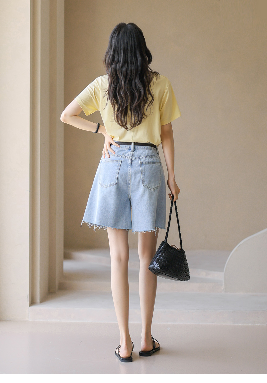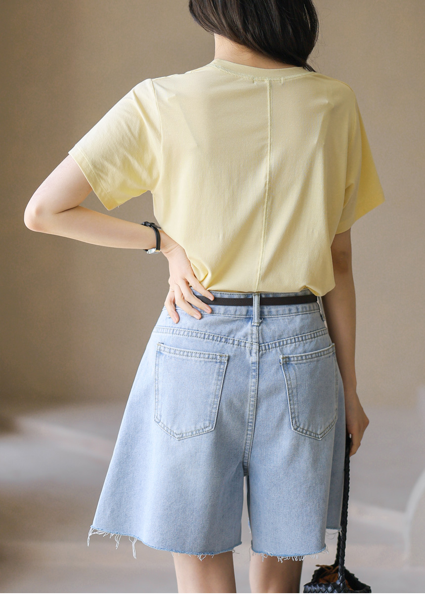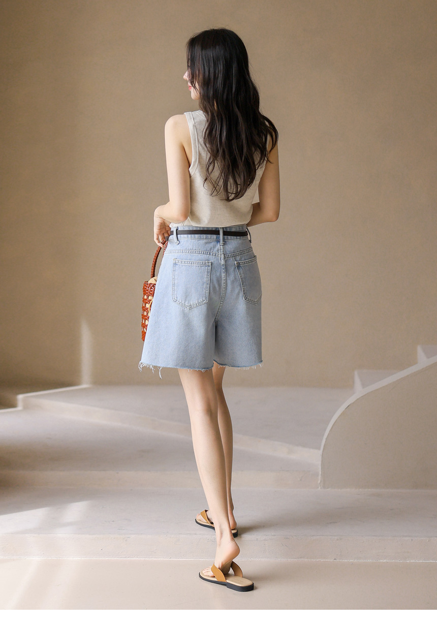 가벼운 데님 소재로 여름에도 부담 없이 착용되는 5부 반바지 팬츠예요