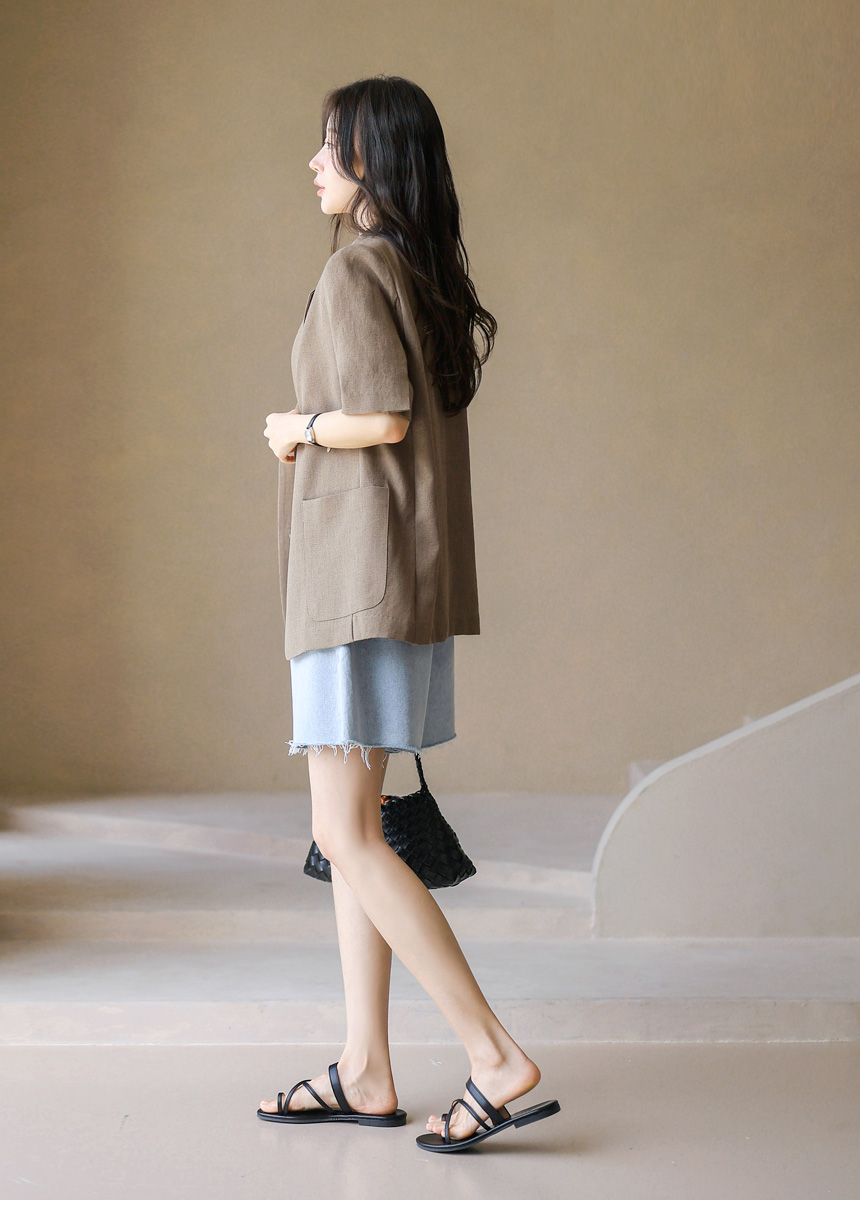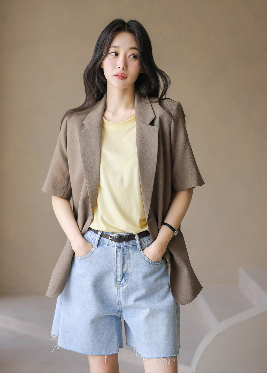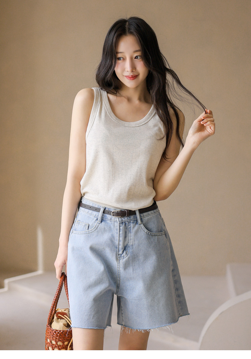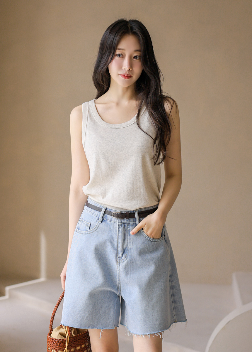 가벼운 데님 소재로 여름에도 부담 없이 착용되는 5부 반바지 팬츠예요