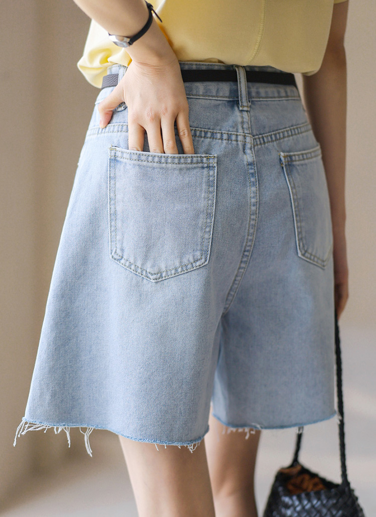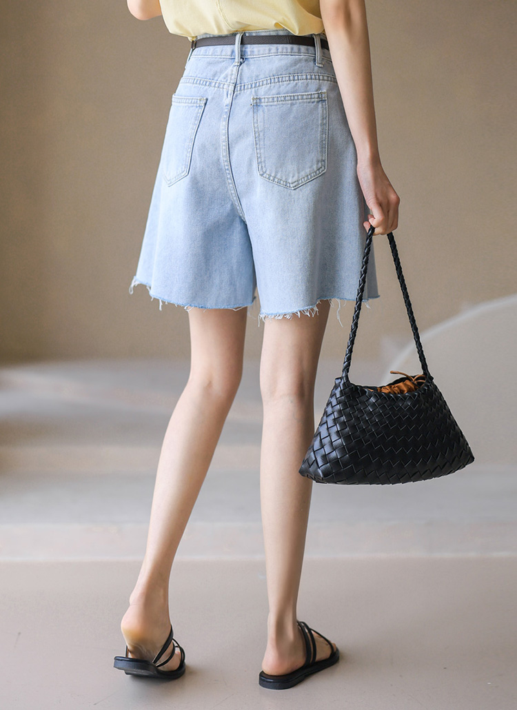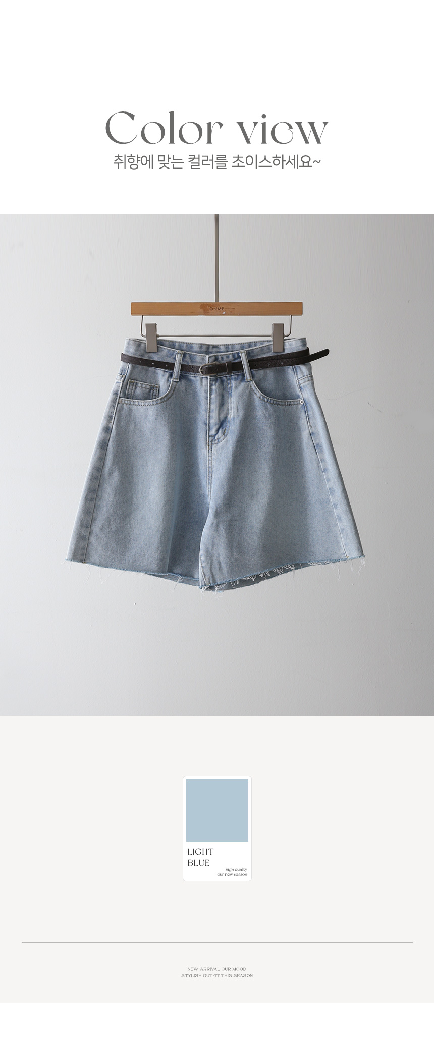 [THEONME] ベルト付き カットオフ ショート デニムパンツ pt45389