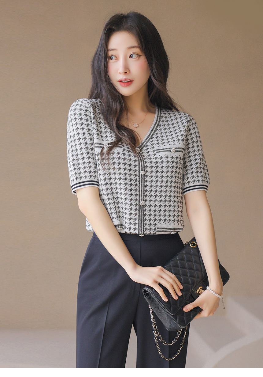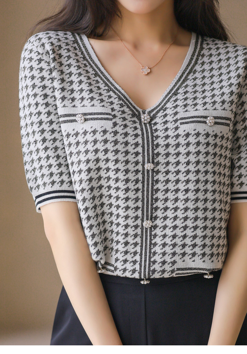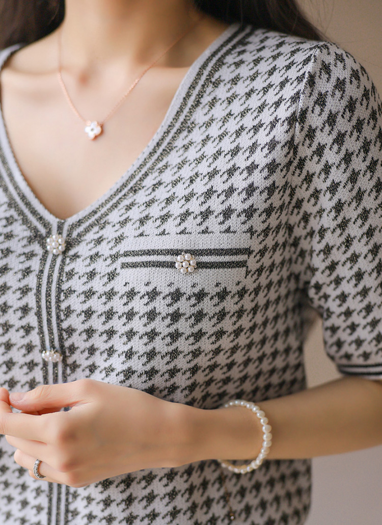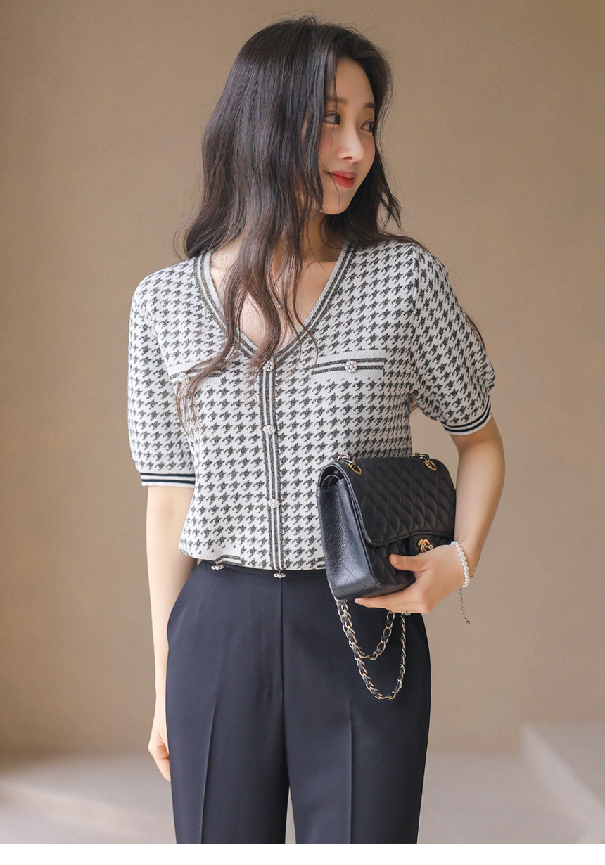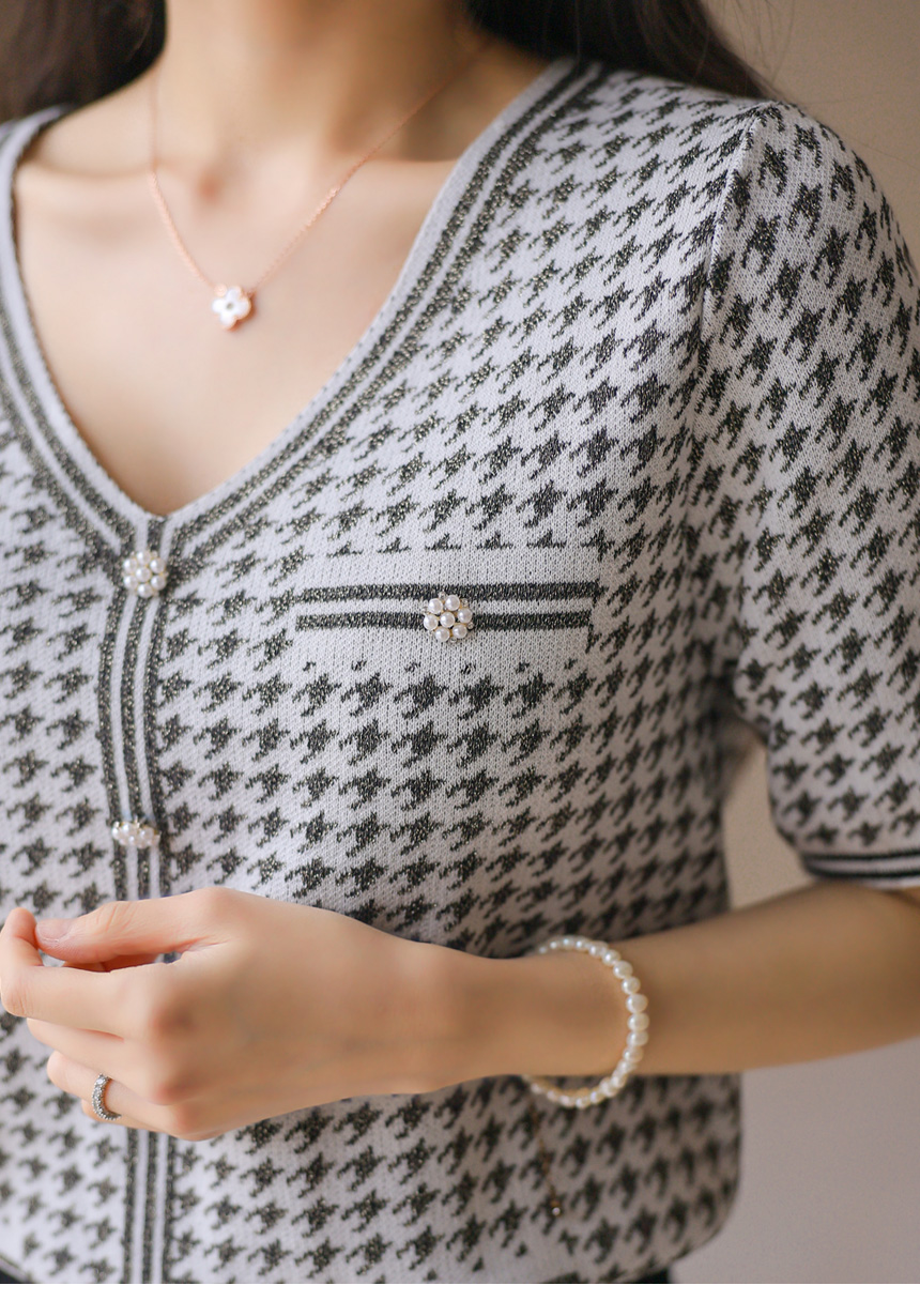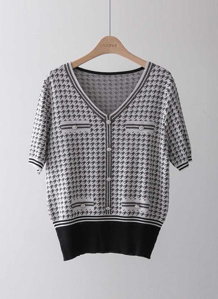 パールボタン 千鳥格子 Vネックニットプルオーバー nt45395