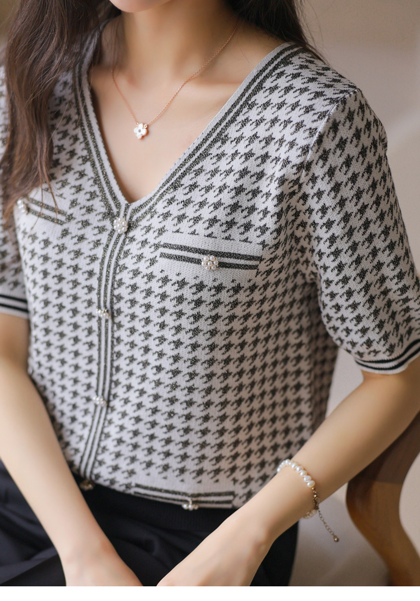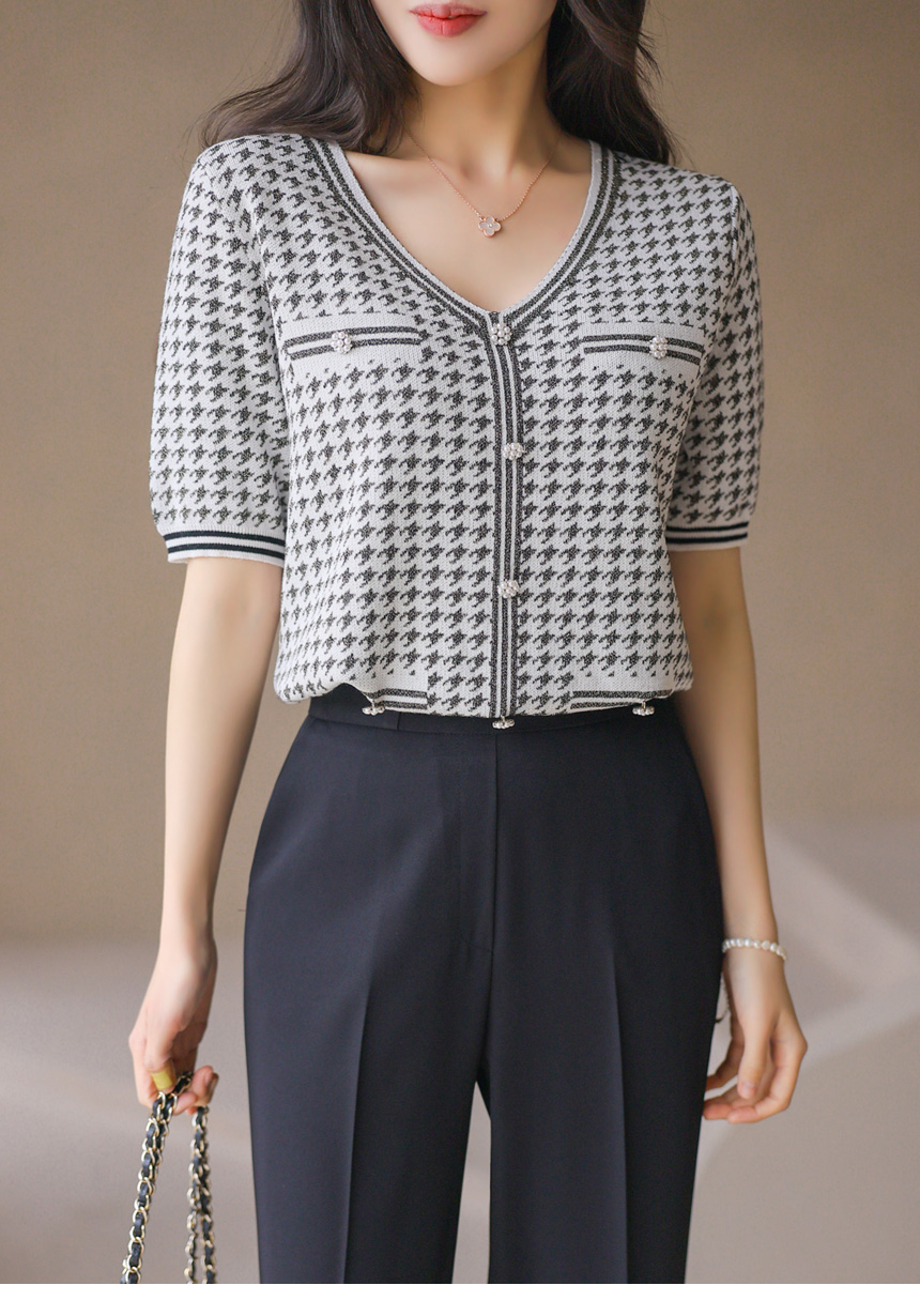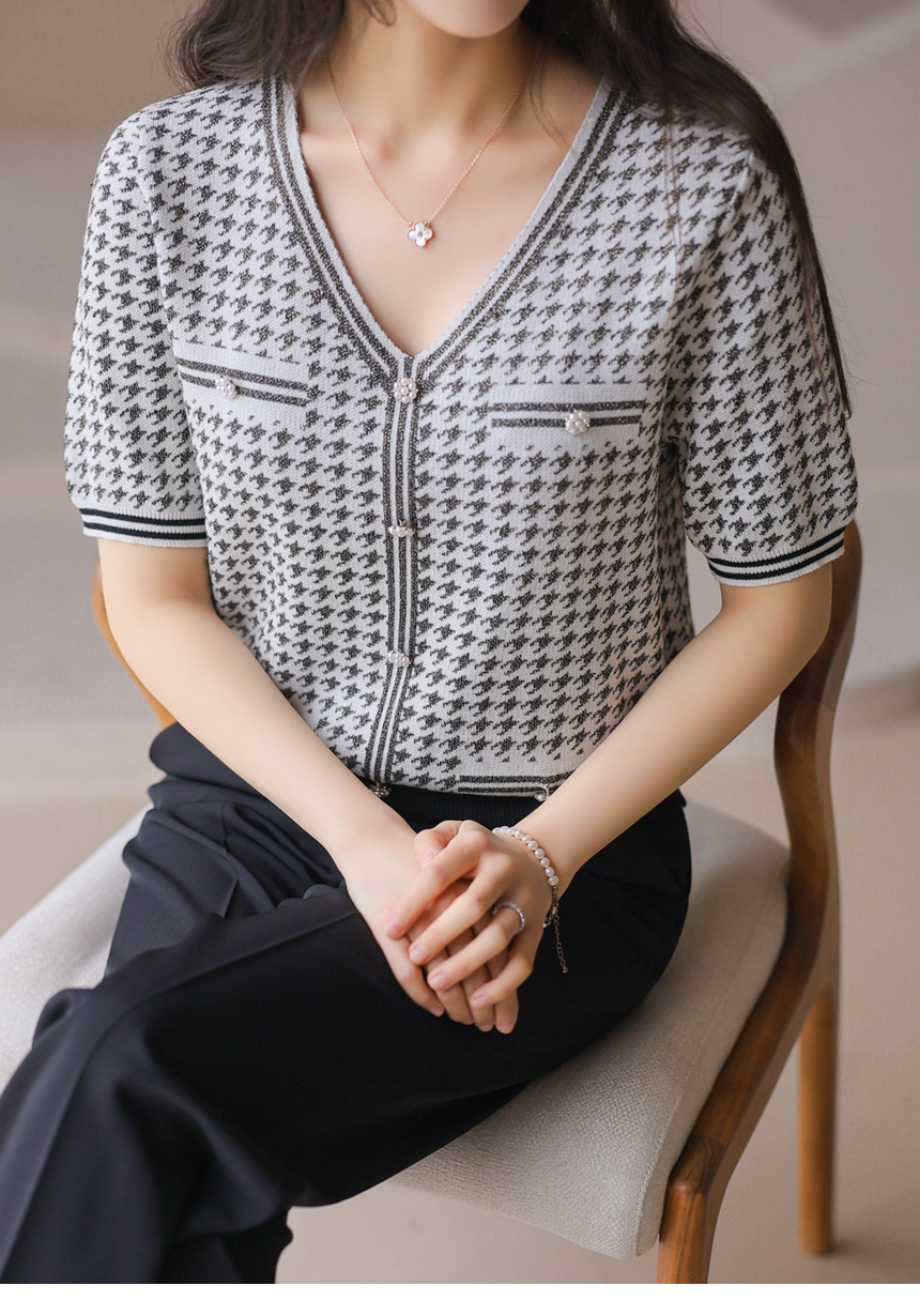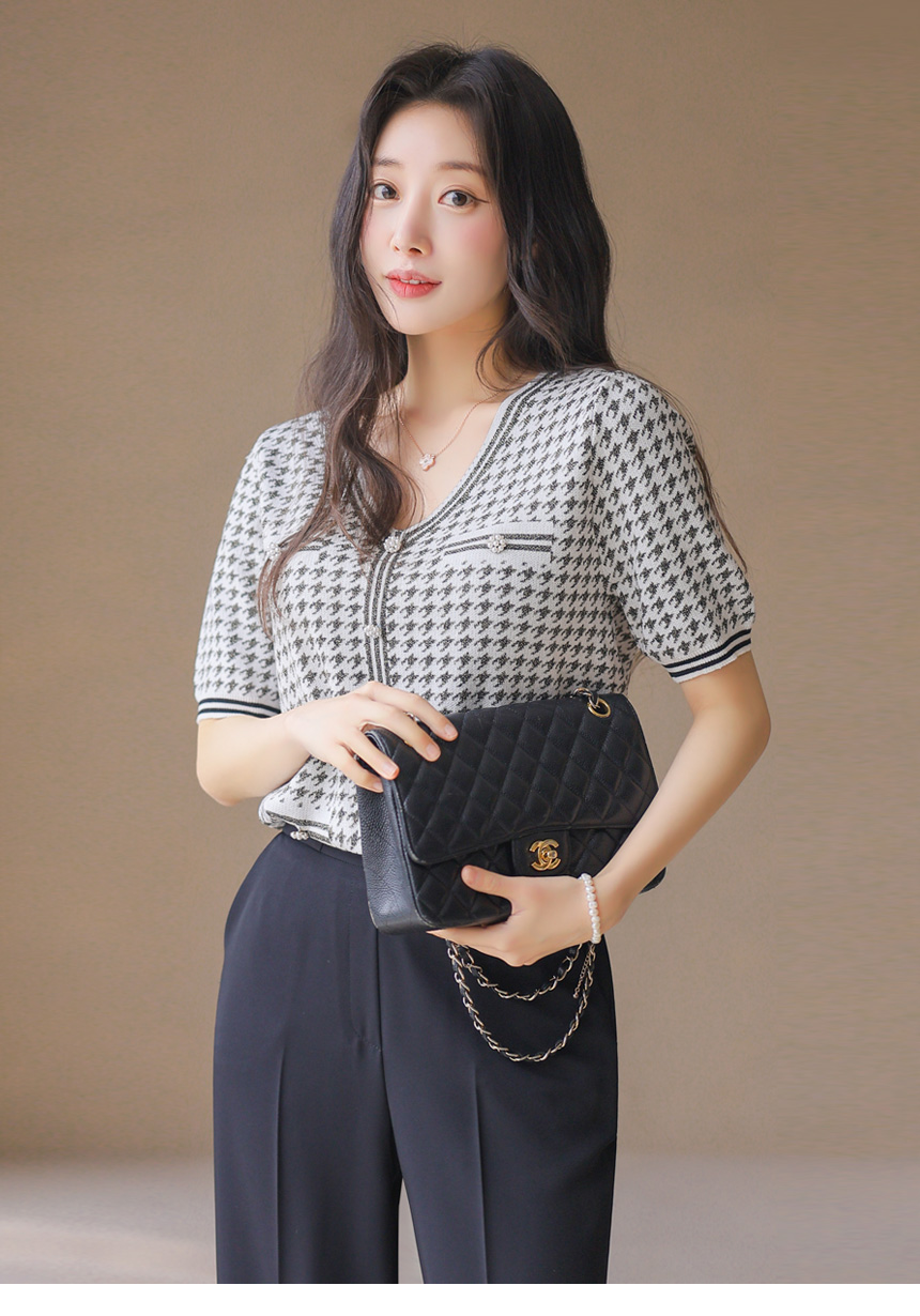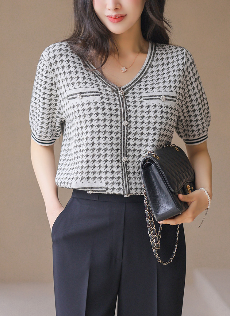 パールボタン 千鳥格子 Vネックニットプルオーバー nt45395