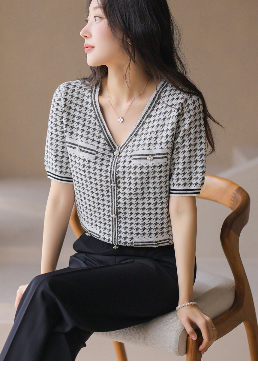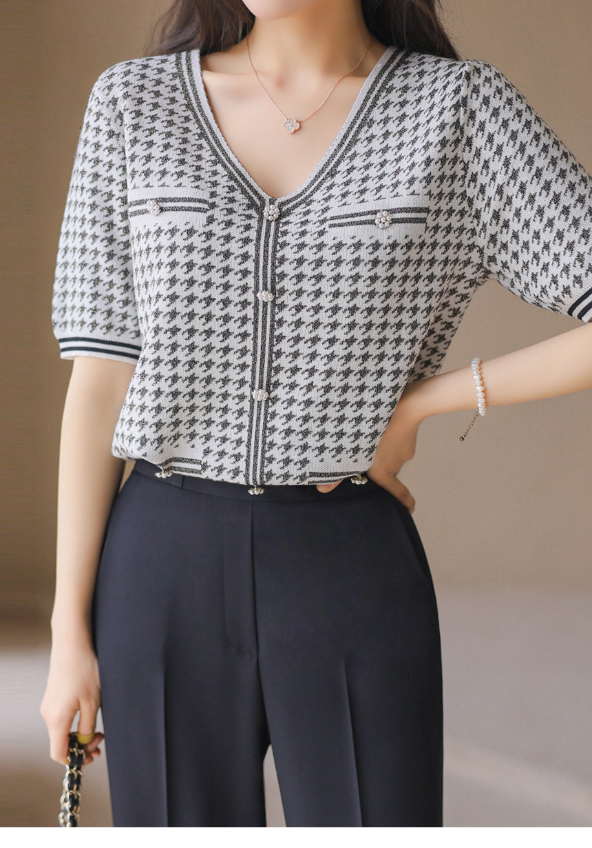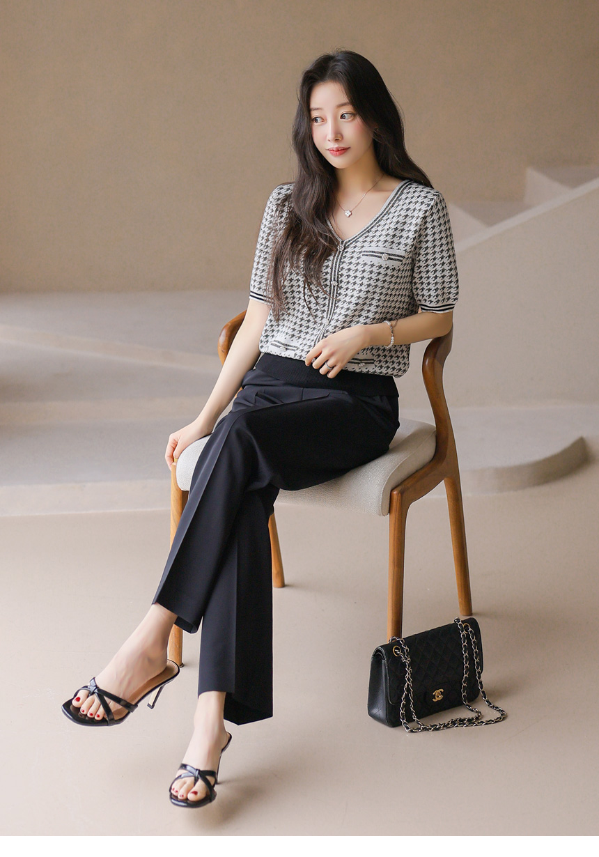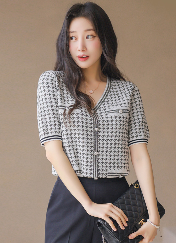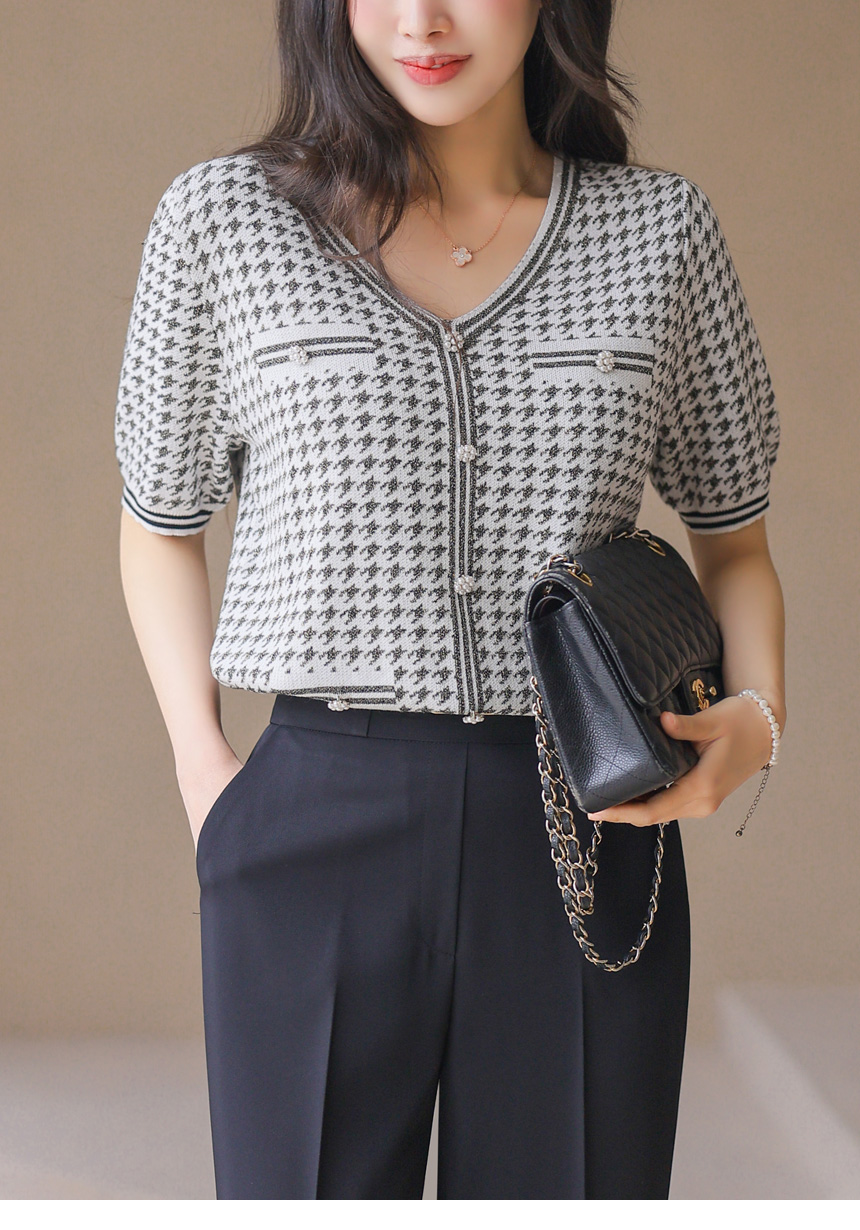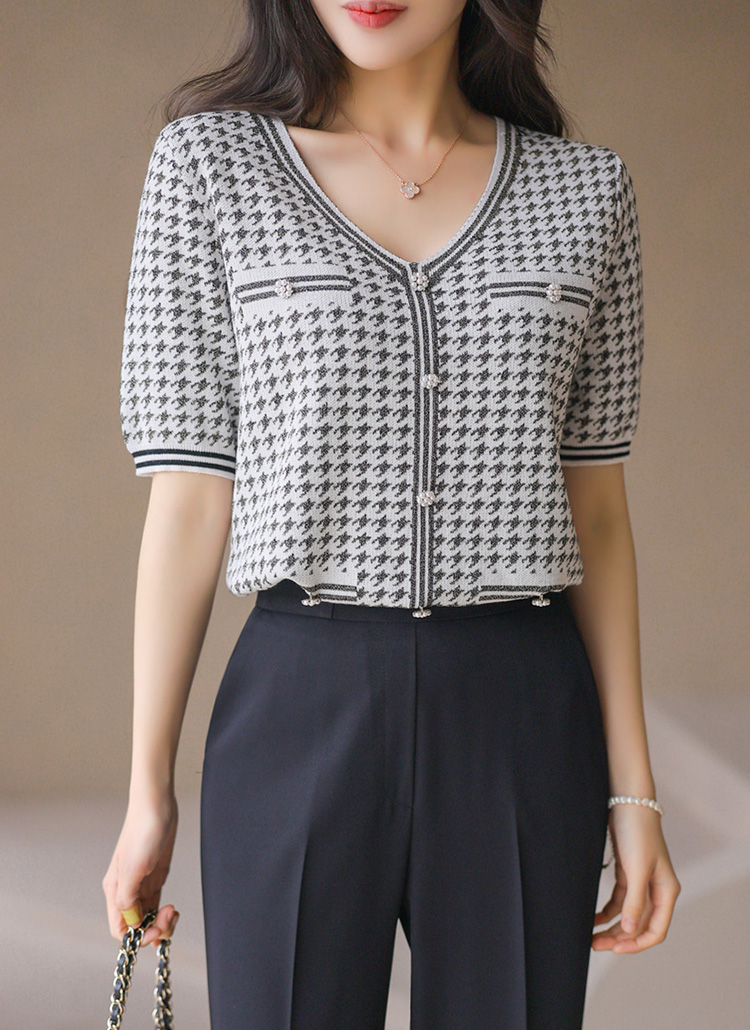 パールボタン 千鳥格子 Vネックニットプルオーバー nt45395