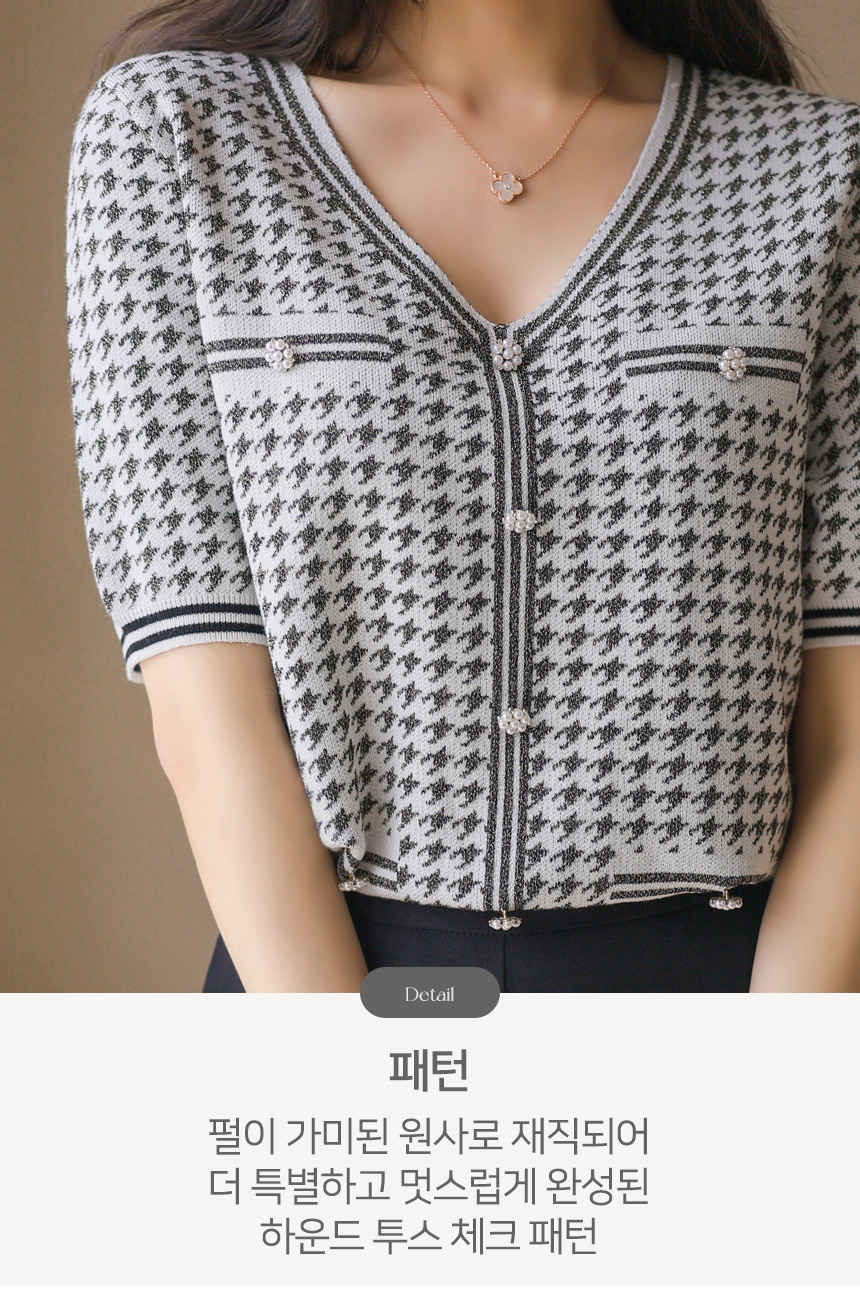 한층 더 품격 있게 완성된 하운드 체크 니트예요