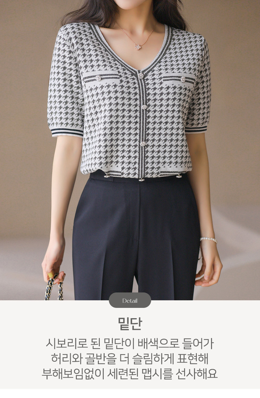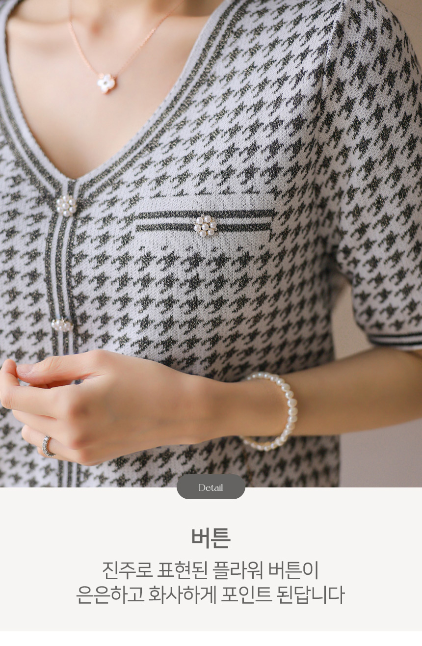 정갈하게 더해진 진주 버튼 디테일이 우아한 포인트가 되어